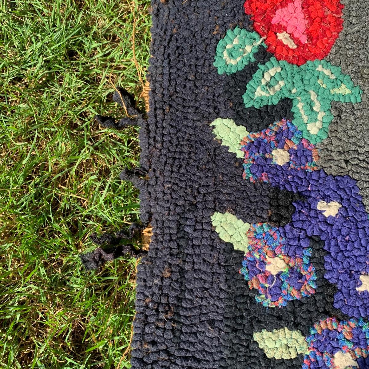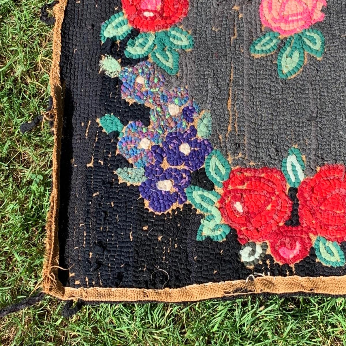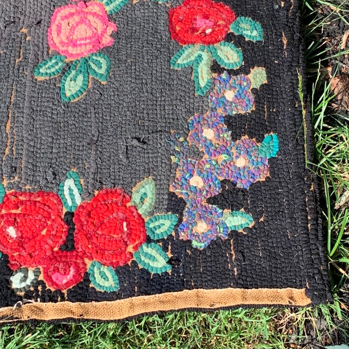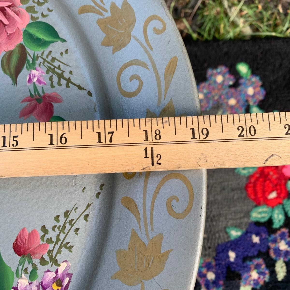 LOT 69: Hand Painted Serving Tray/Table & Vintage Floral Loop Rug
