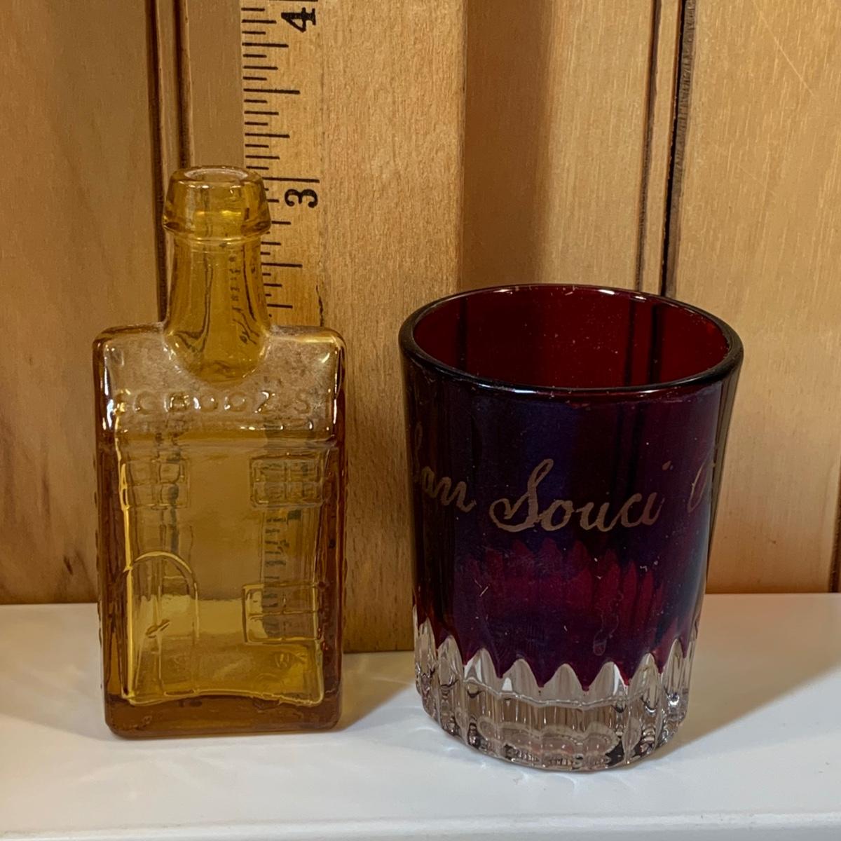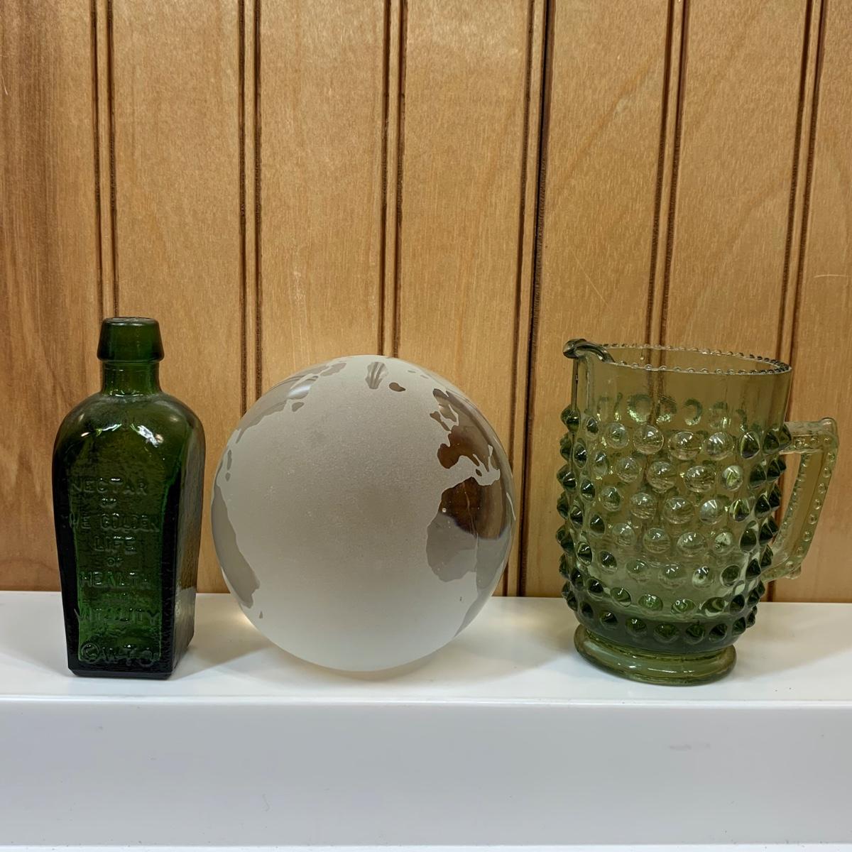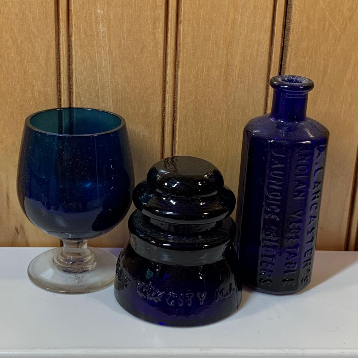 LOT 70: Crafted in Italy Paper Weight, Miniature Wheaton Bottles, TFM Pansy/Purple Flower Bouquet Glass Egg, Cobalt Blue Glass, Hand Blown Pitcher & More