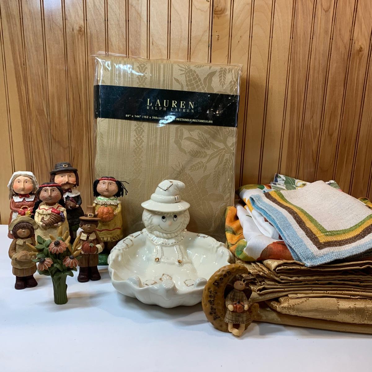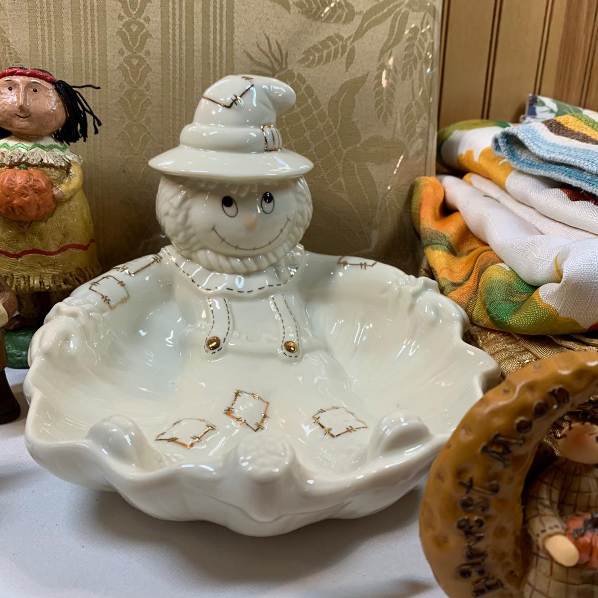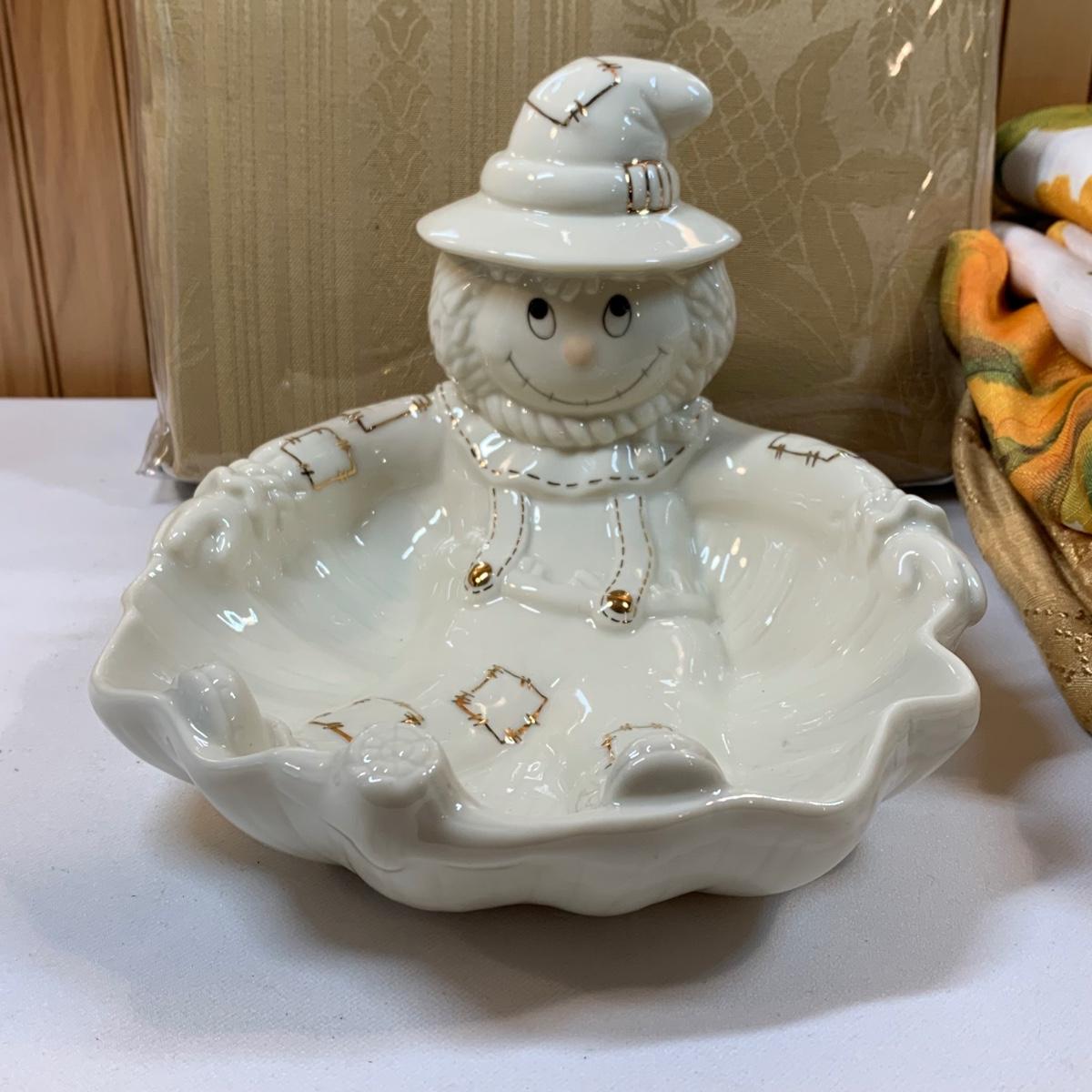 LOT 71: Fall Decor, Lenox Scarecrow Dish & Linens
