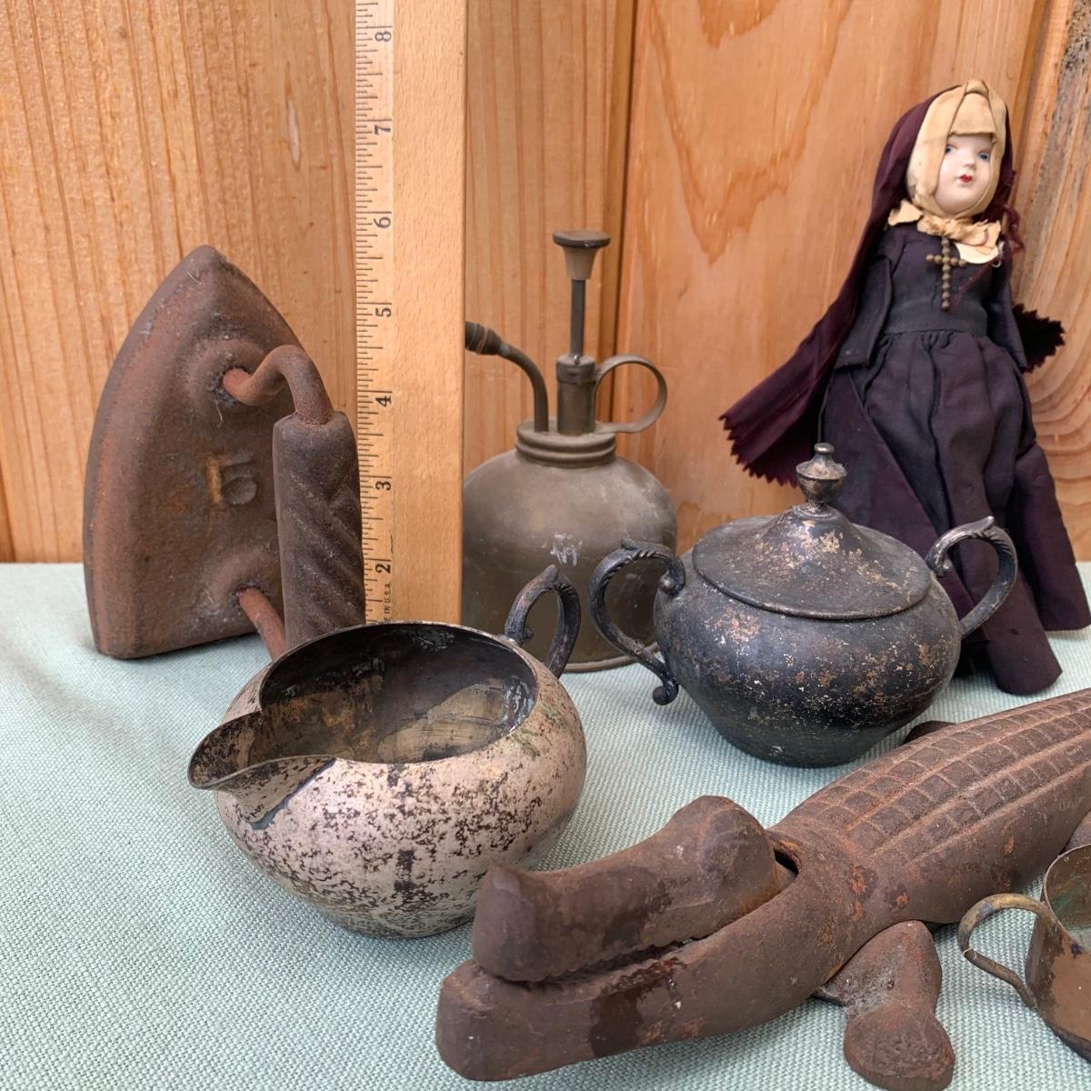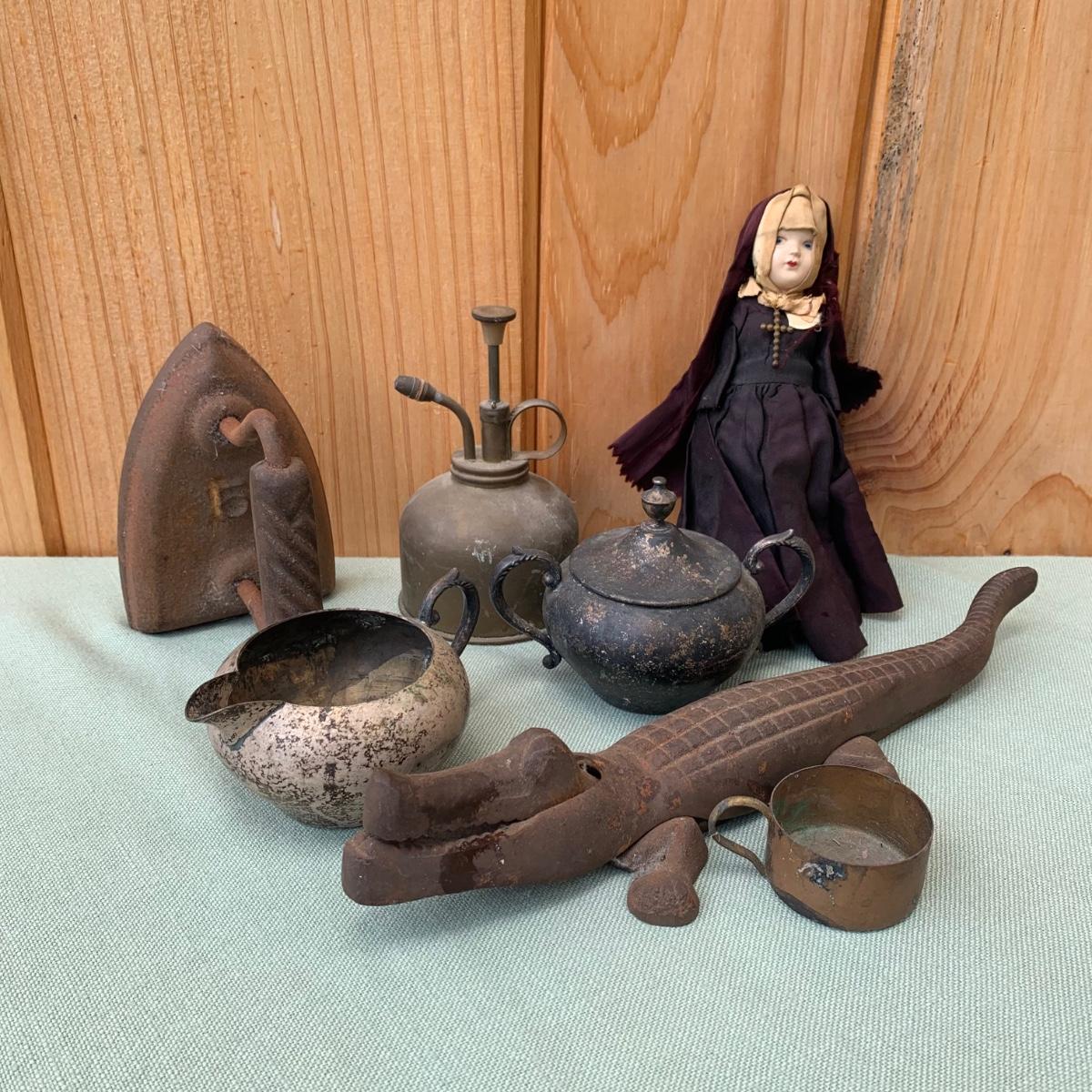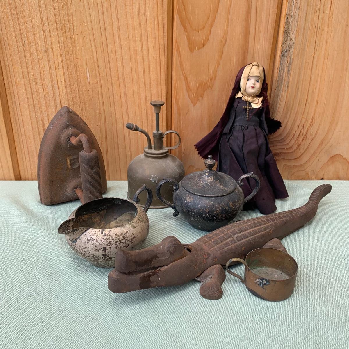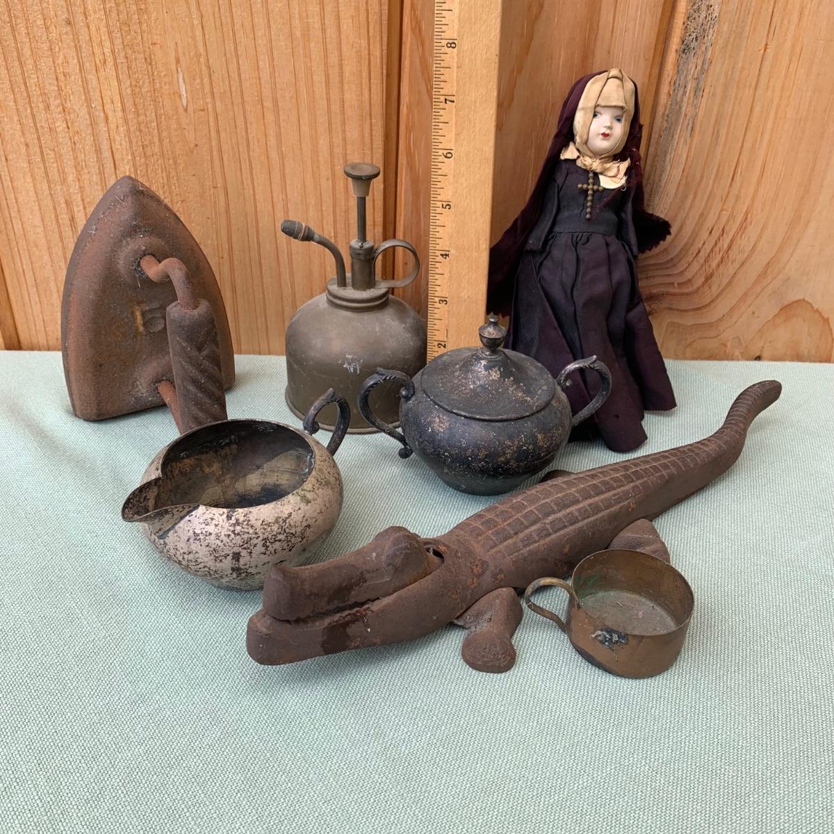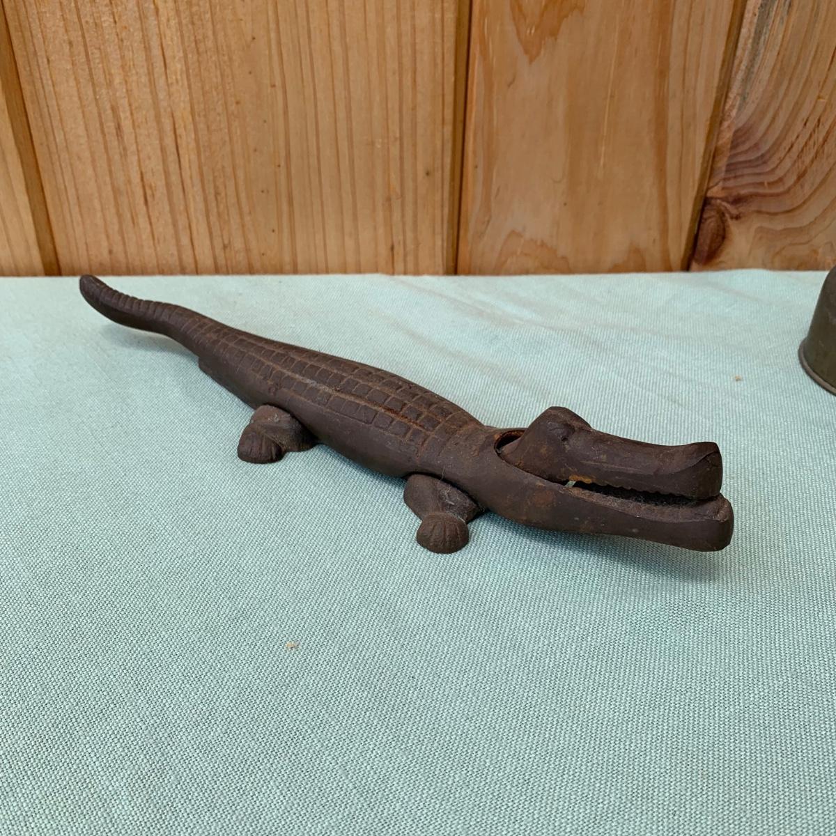 LOT83: Cast Iron Alligator Nutcracker, Silver Plated Sugar & Creamer & More