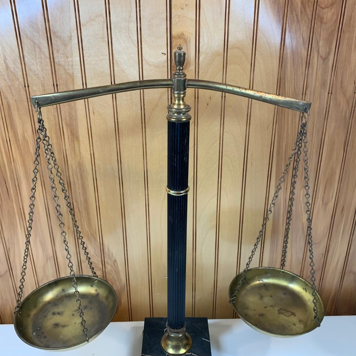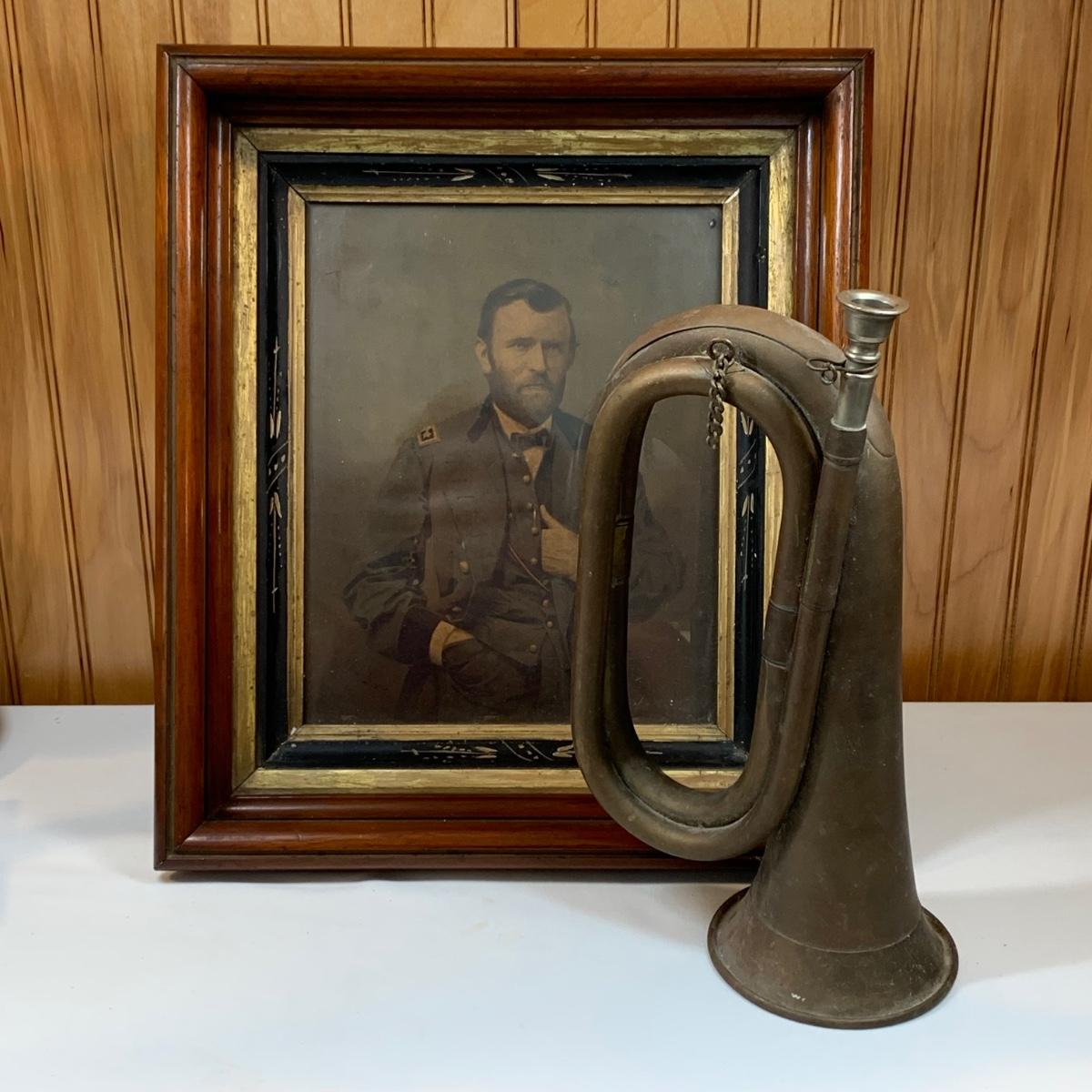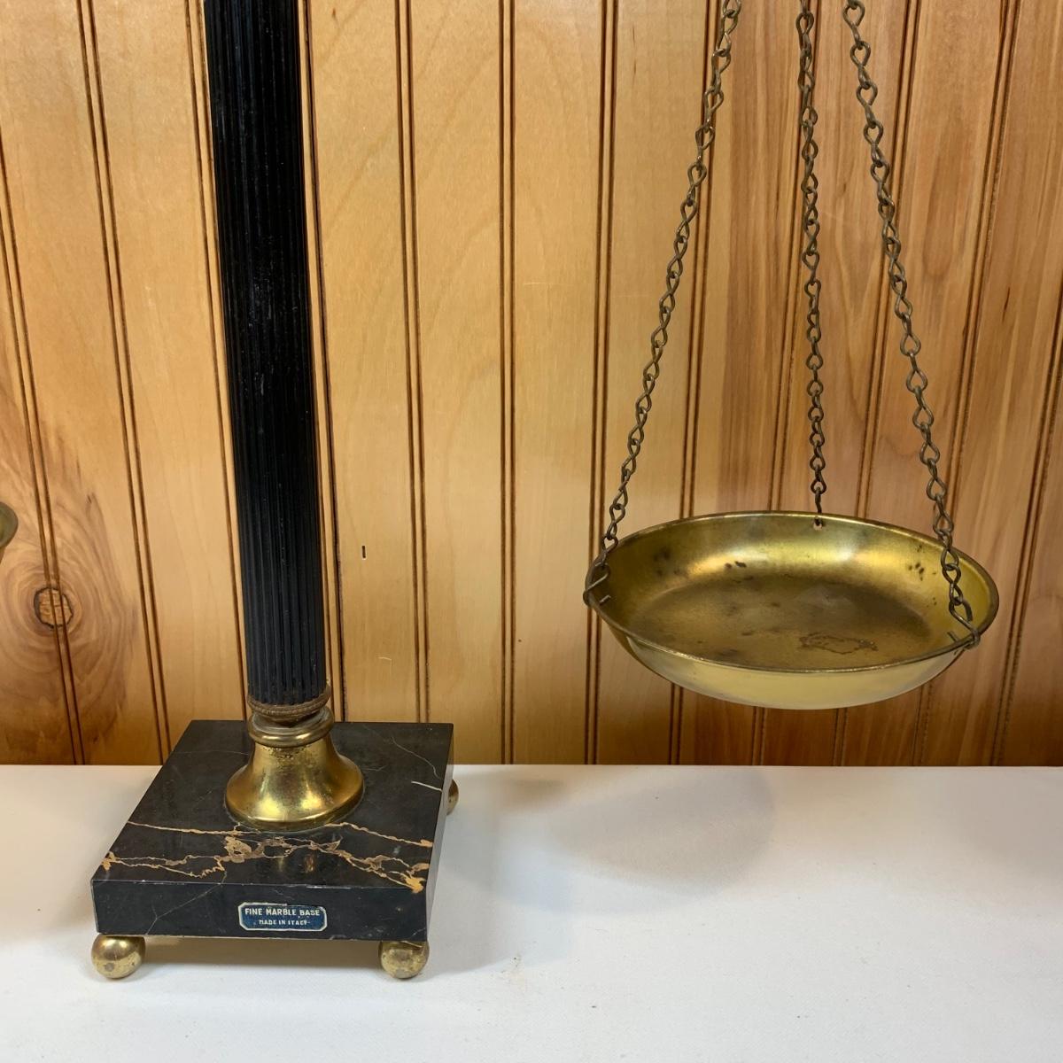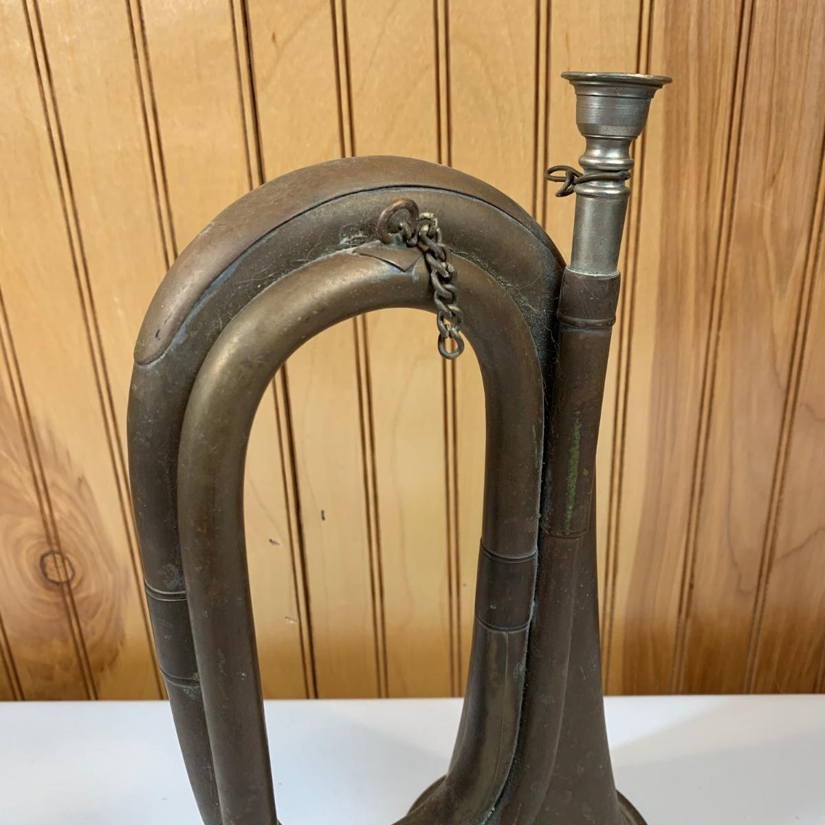 LOT 84: Vintage Military Bugle Horn, Balance Scale Decor w/Marble Base, Magnifying Glass w/Mother of Pearl Handle, Parker Mechanical Pencil, Wheaton Pocahantas Bottle & More