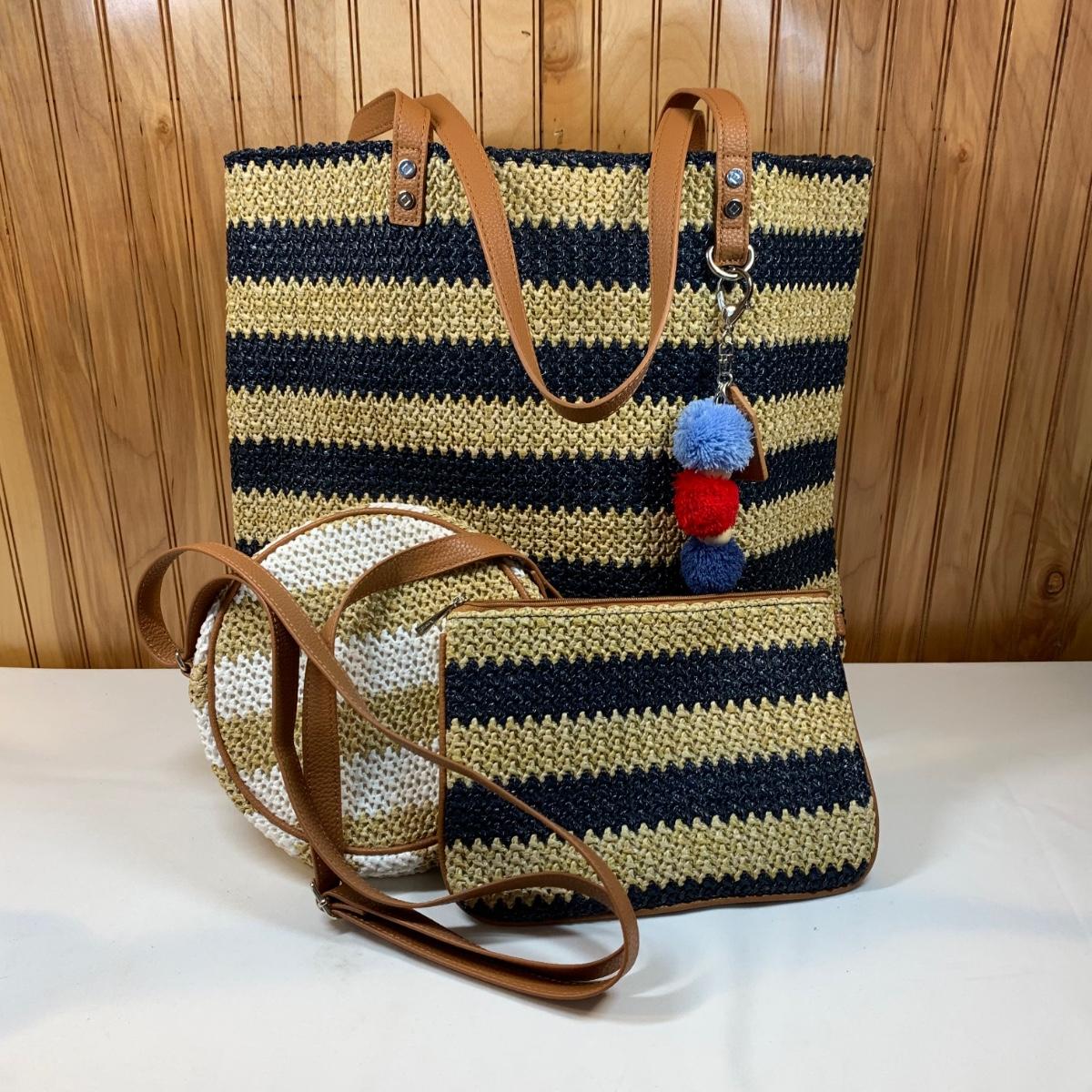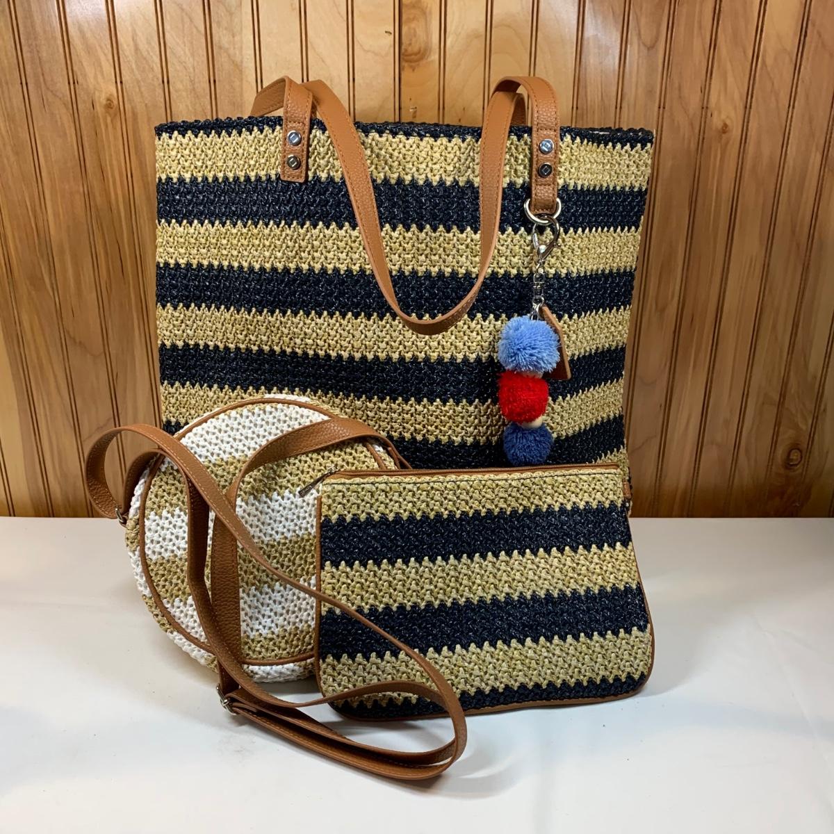 Thirty-One White Stripe Roundabout Crossbody Purse