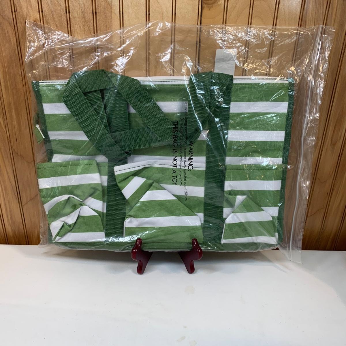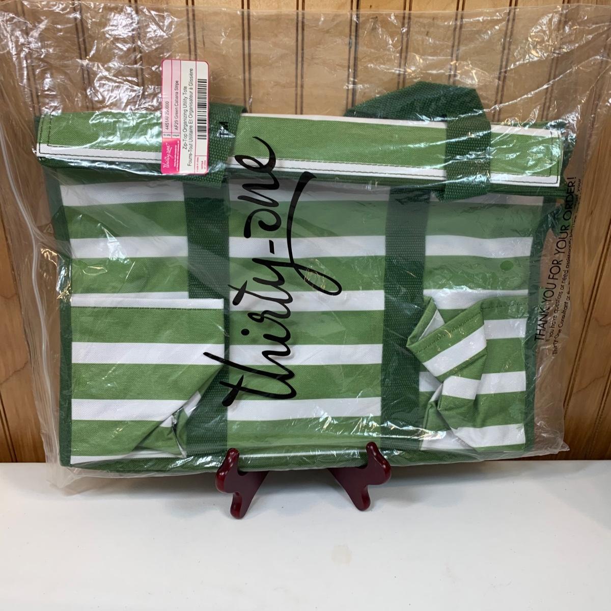 Thirty One Zip Top Organizing Zip-Top Organizing Utility Tote Green Cabana Stripe