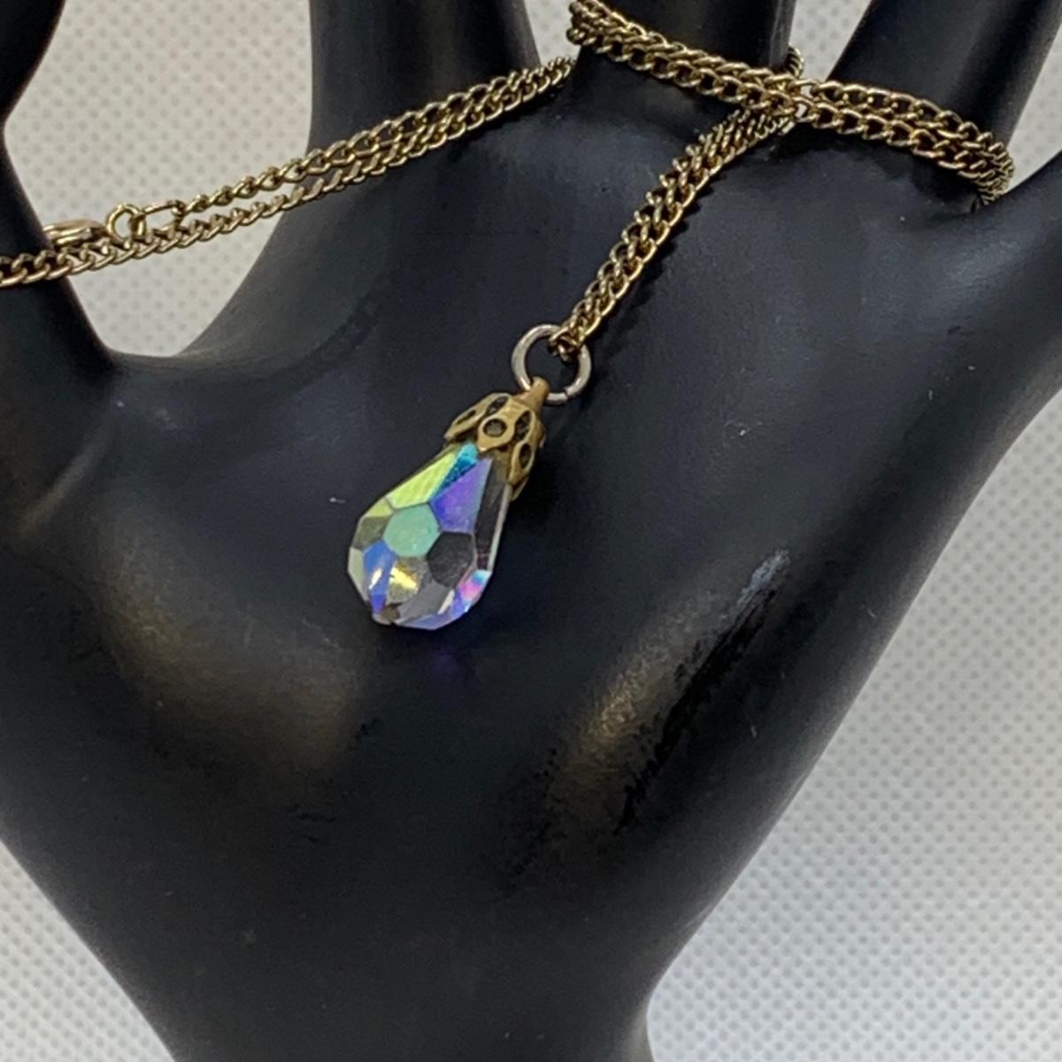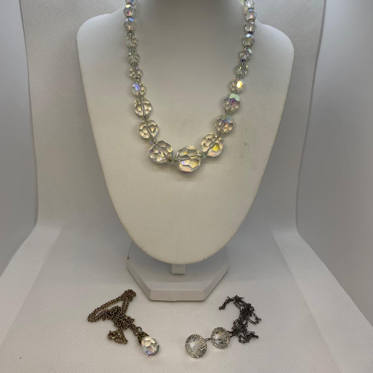 LOT 105: Vintage Aurora Borealis Crystal Necklace, Unique Vintage Chain w/ Crystall on Each End & Crystal Pendant Necklace