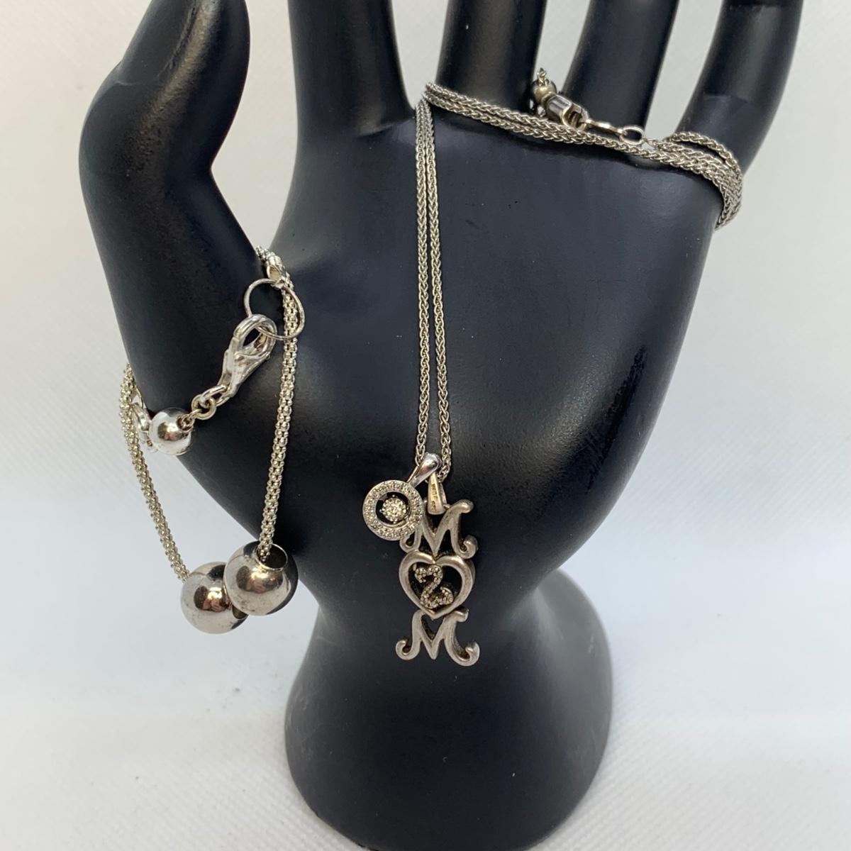 LOT 106: Sterling Silver Necklace w/Charms & Sterling Silver Braclet