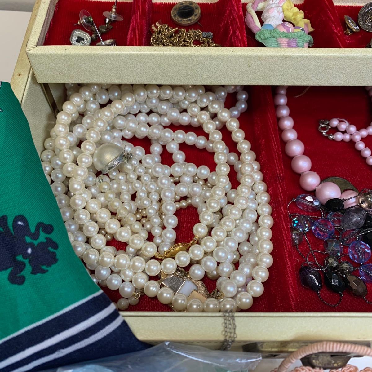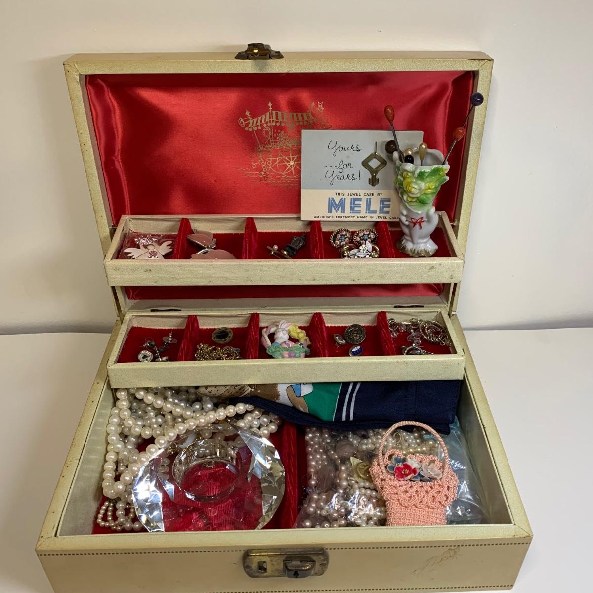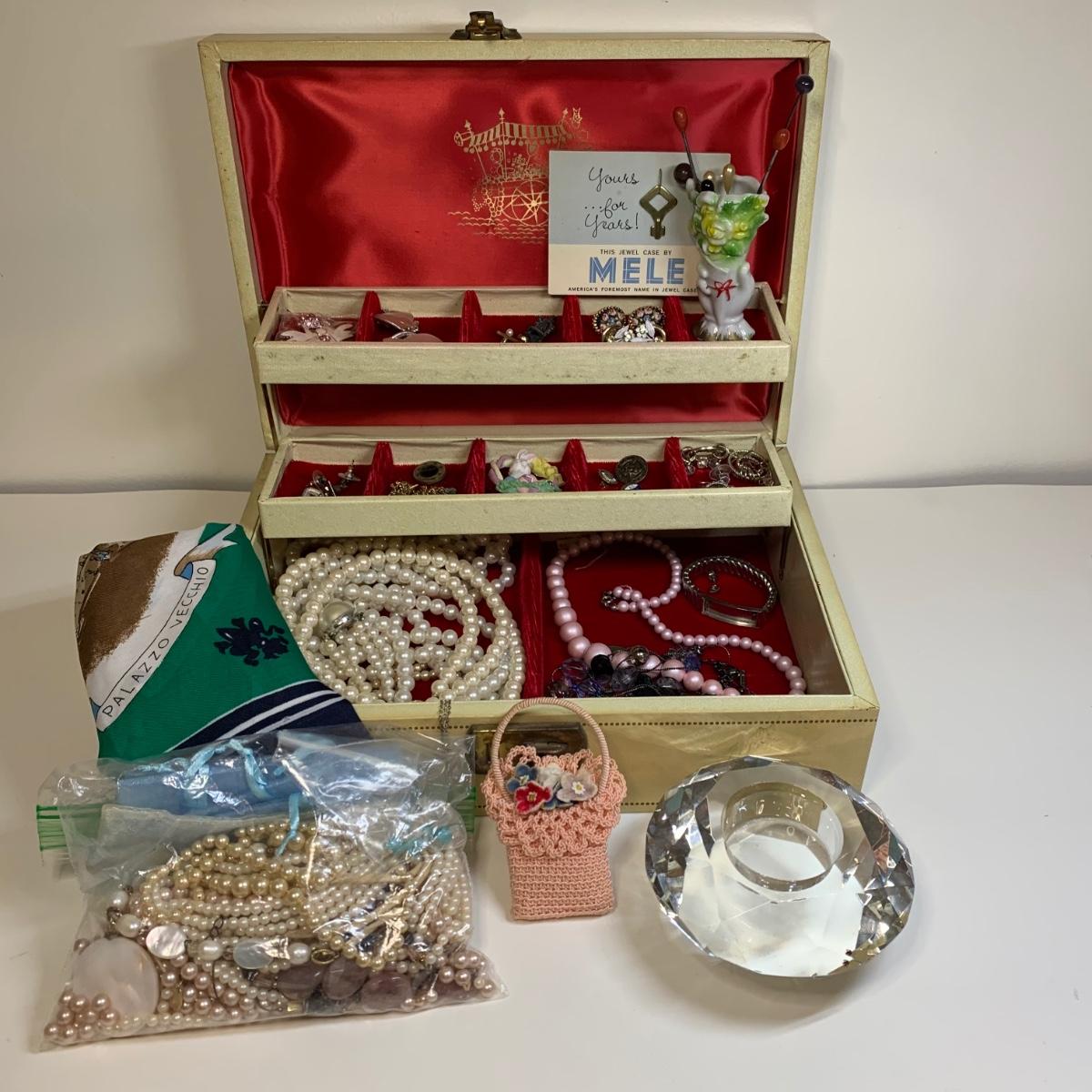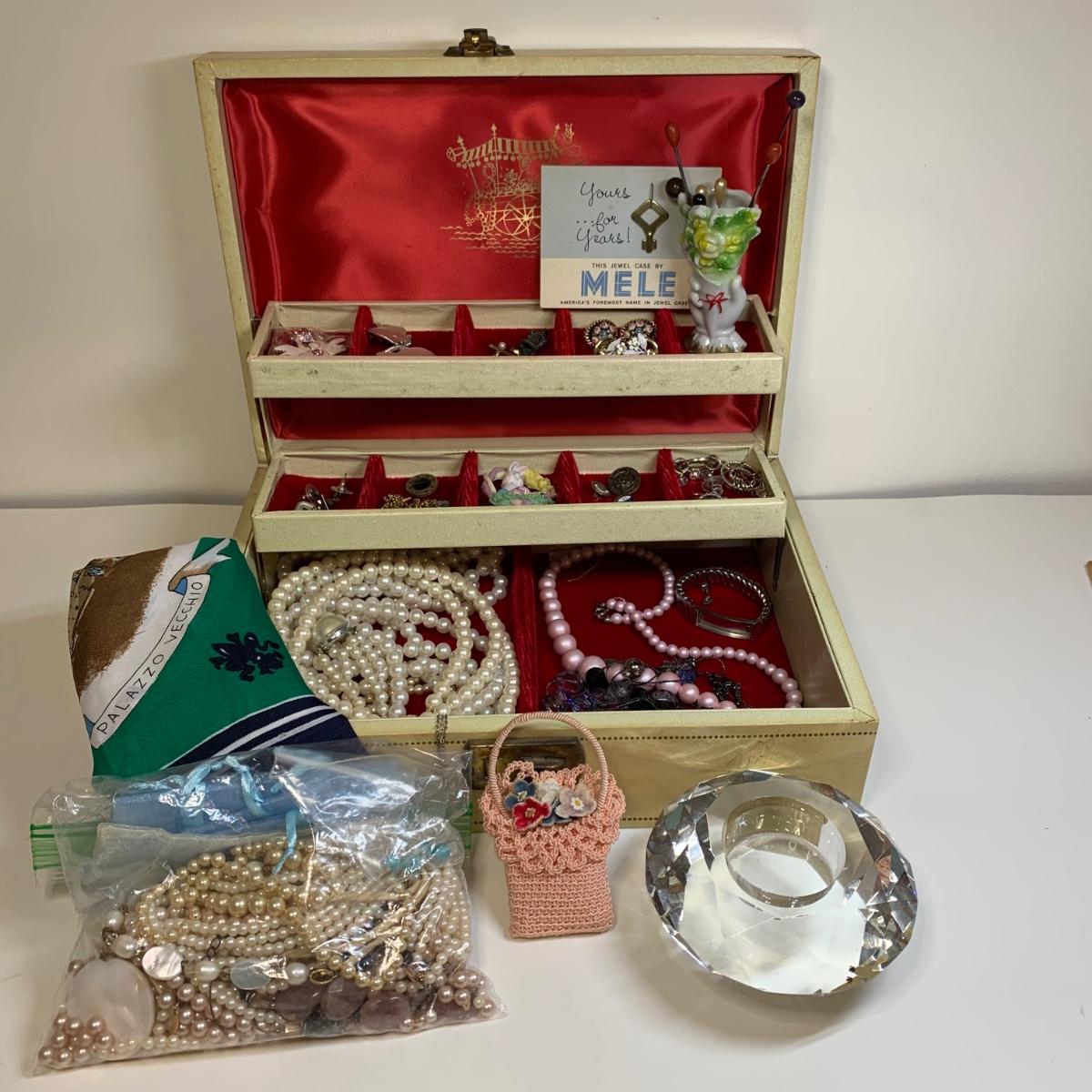 LOT 112: Jewelry Box w/Key, Craft Lot & More