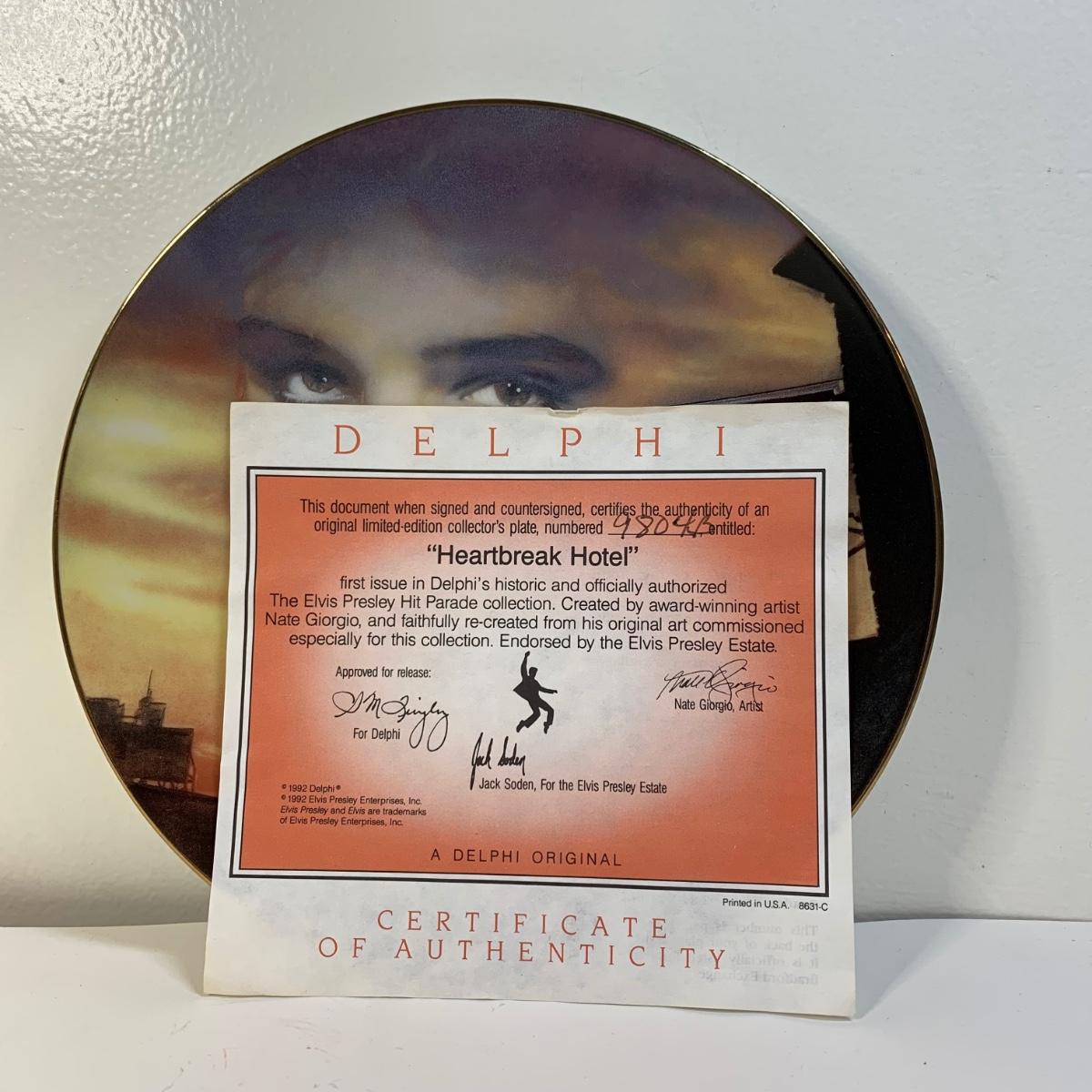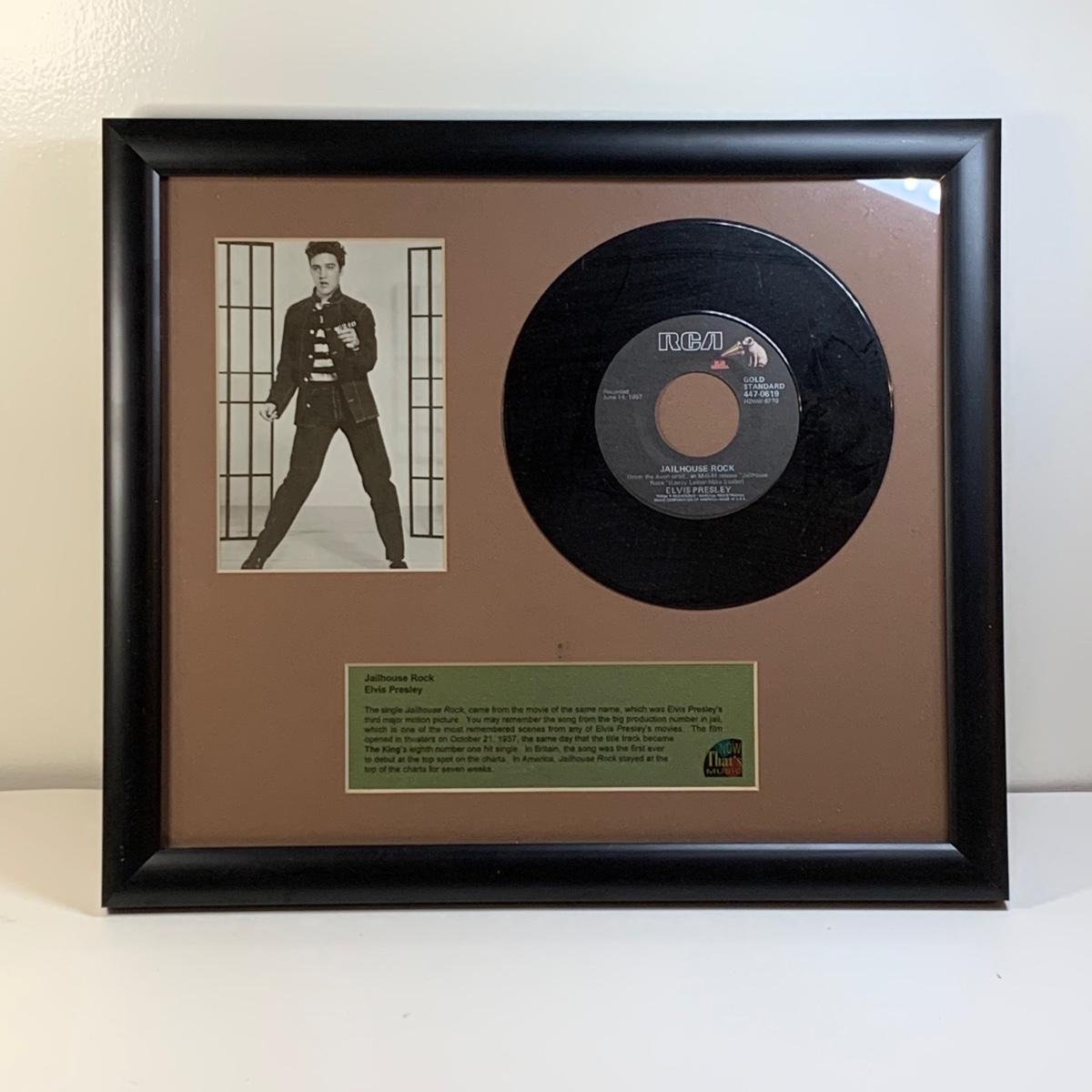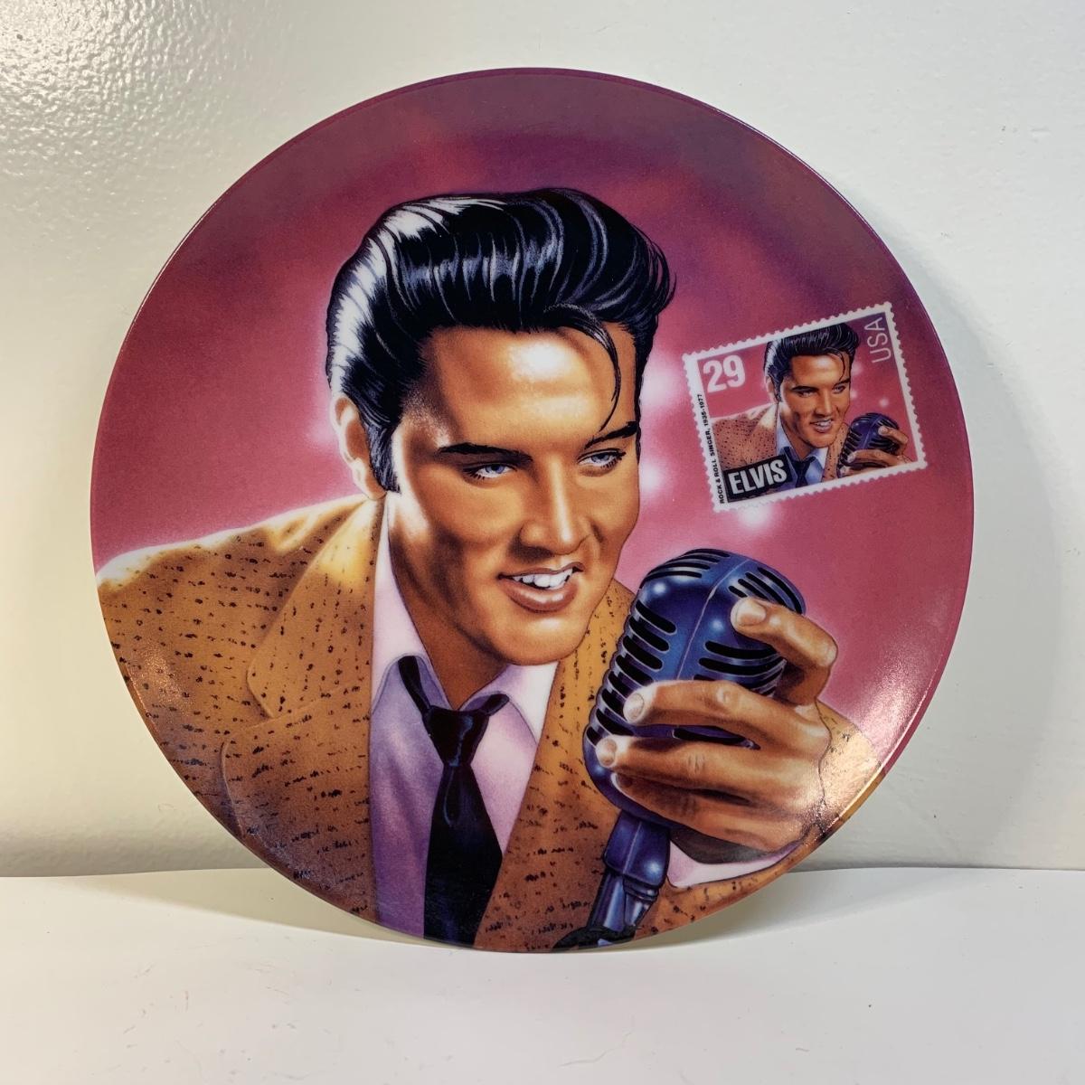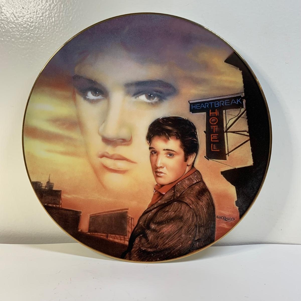 LOT 114: Elvis Collection: Framed Elvis 45 & Photo, Collectors Plates< Music Box & Goldtone Charm