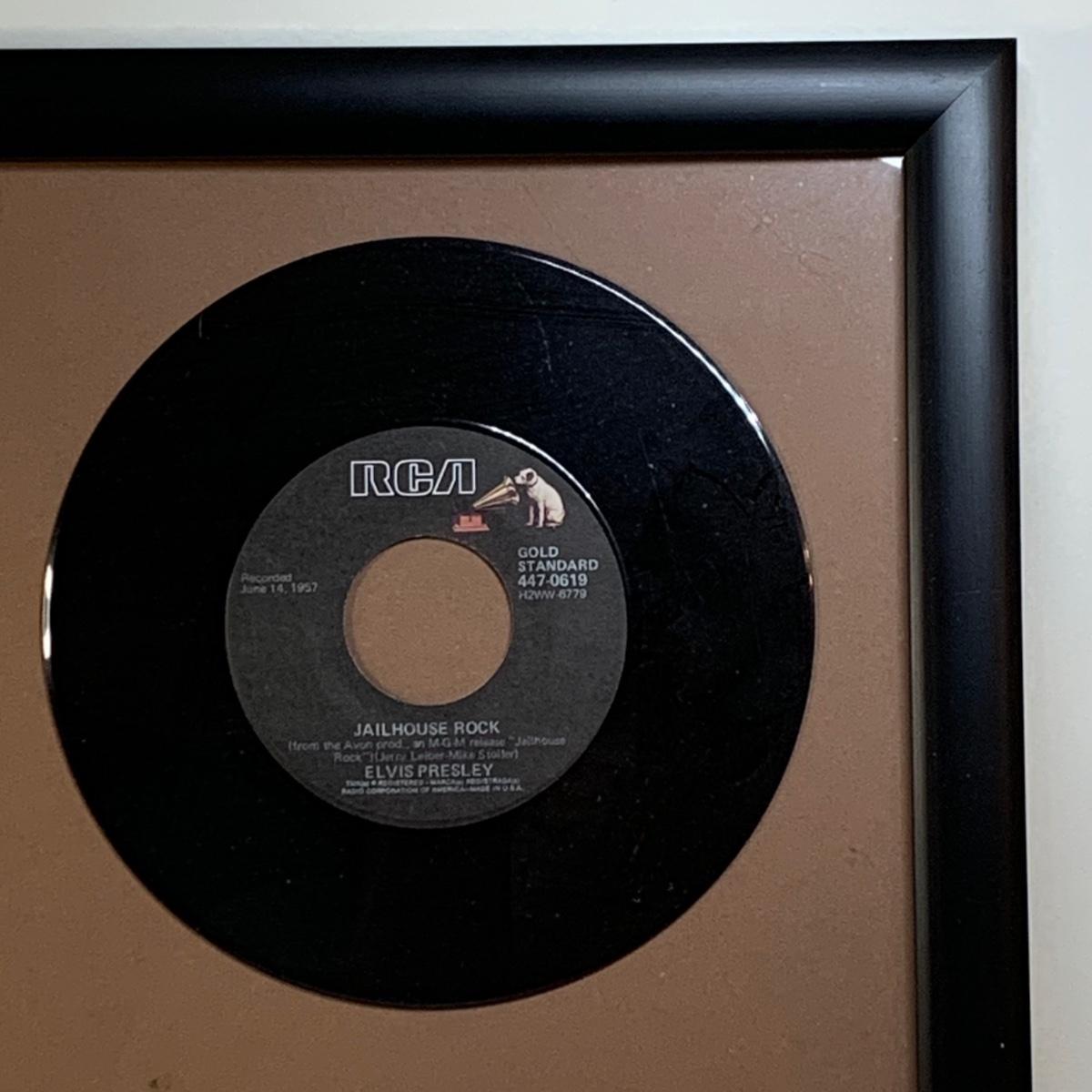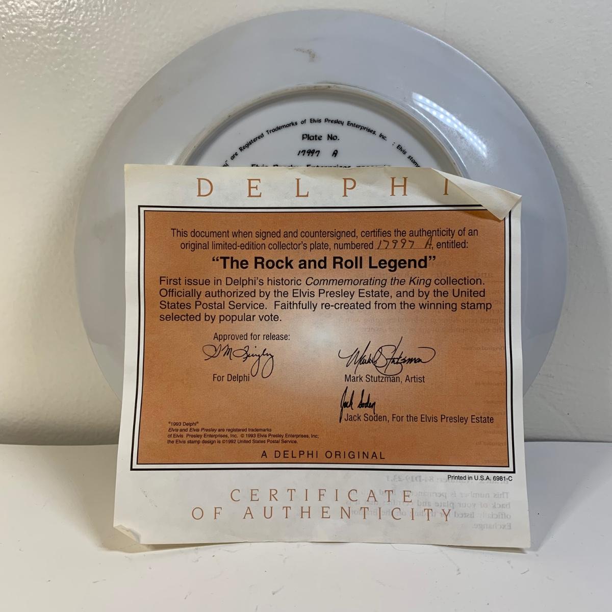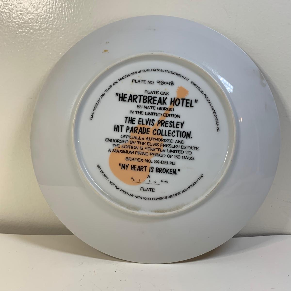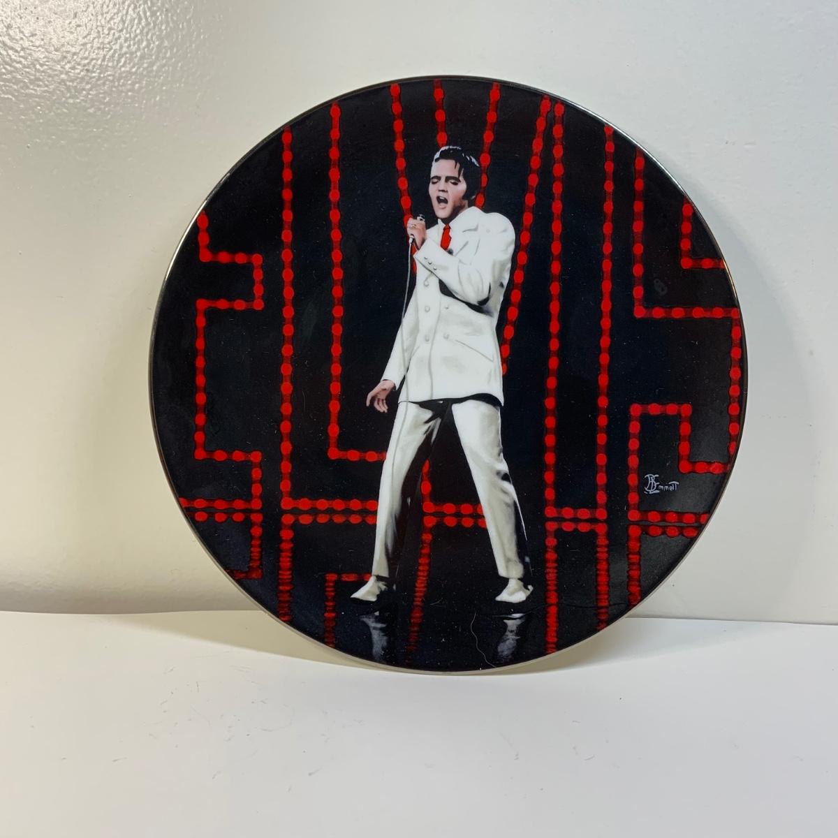 LOT 114: Elvis Collection: Framed Elvis 45 & Photo, Collectors Plates< Music Box & Goldtone Charm