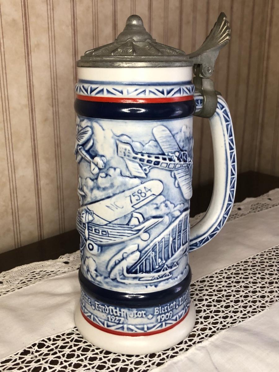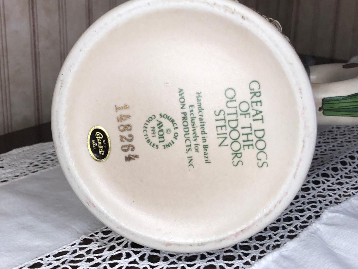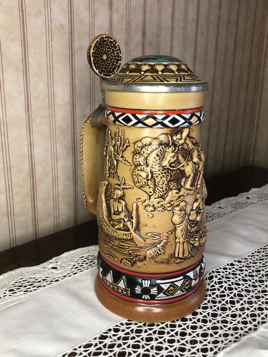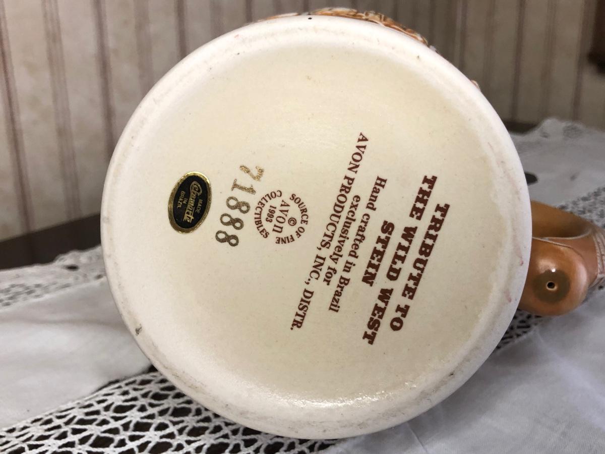 Includes seven steins made by Avon: 1990 Fishing Stein, 1988 "Indians of the American Frontier" Stein, 1980 'Cattle Drive' stein, 1991 Great Dogs of the Outdoors Stein, 1993 Tribute to the Wild West Stein, 1981 airplane stein, and 1990 Tribute to the American Armed Forces Stein.