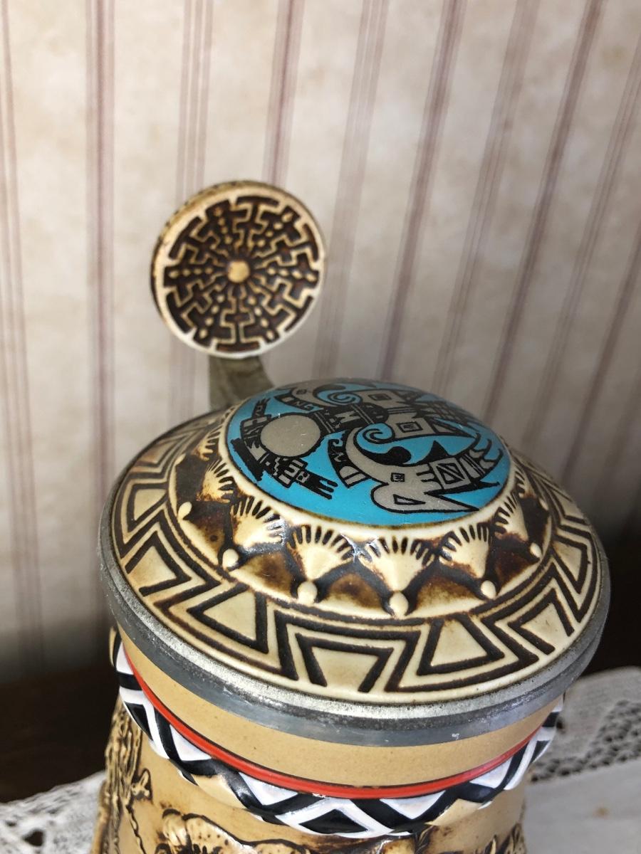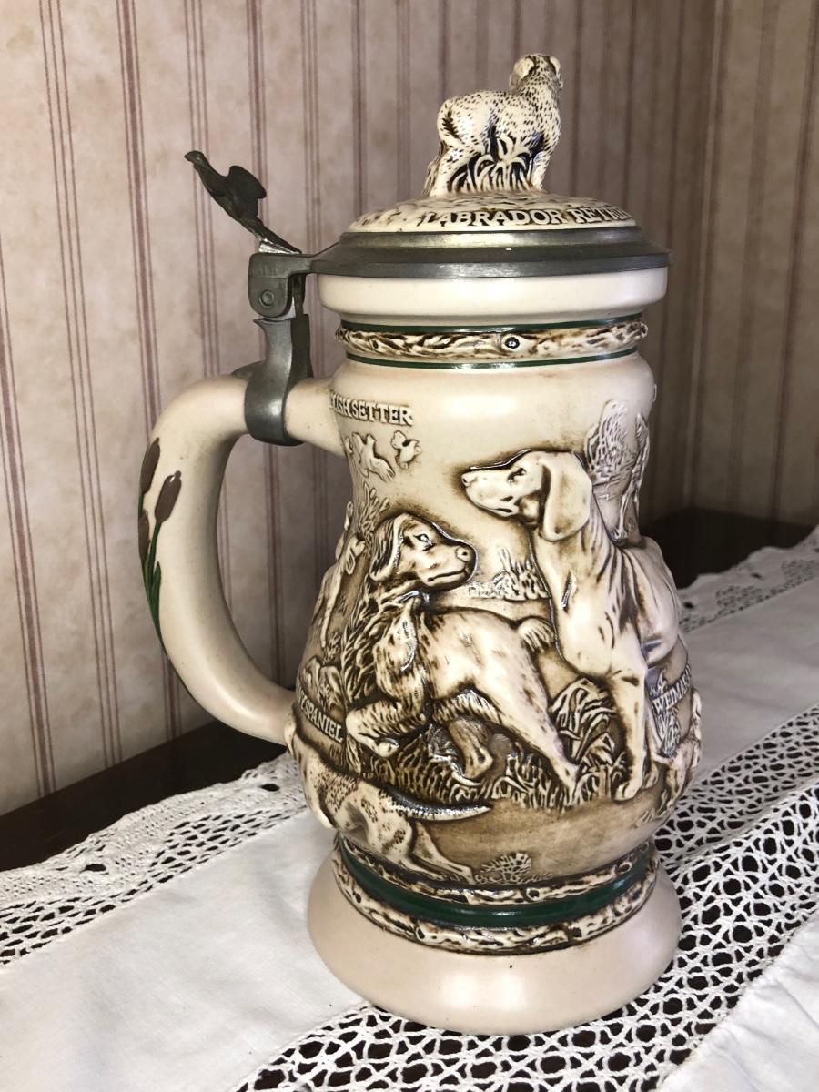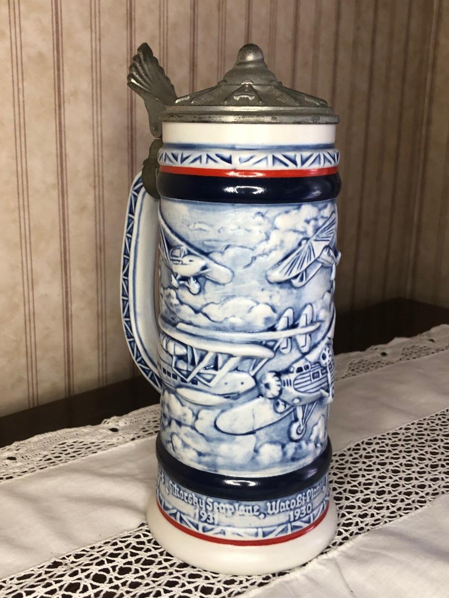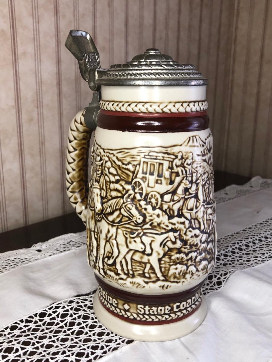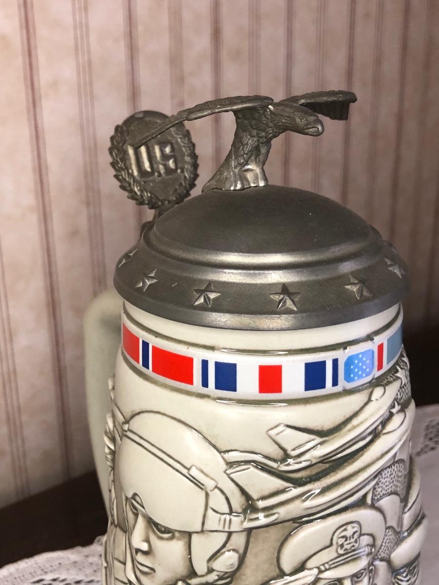 Includes seven steins made by Avon: 1990 Fishing Stein, 1988 "Indians of the American Frontier" Stein, 1980 'Cattle Drive' stein, 1991 Great Dogs of the Outdoors Stein, 1993 Tribute to the Wild West Stein, 1981 airplane stein, and 1990 Tribute to the American Armed Forces Stein.