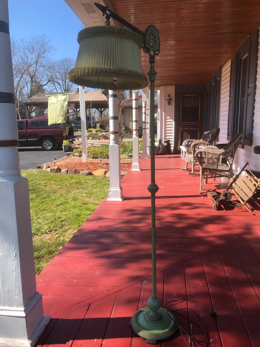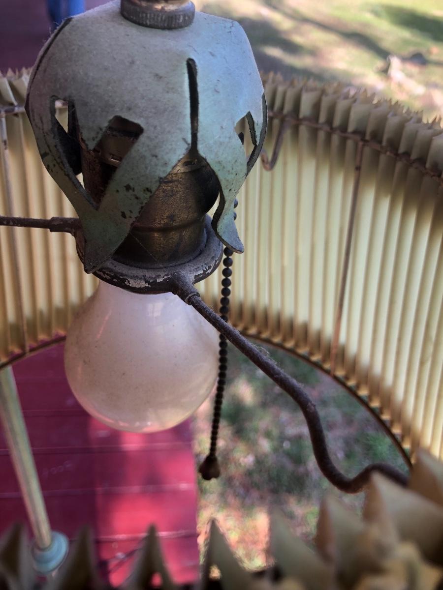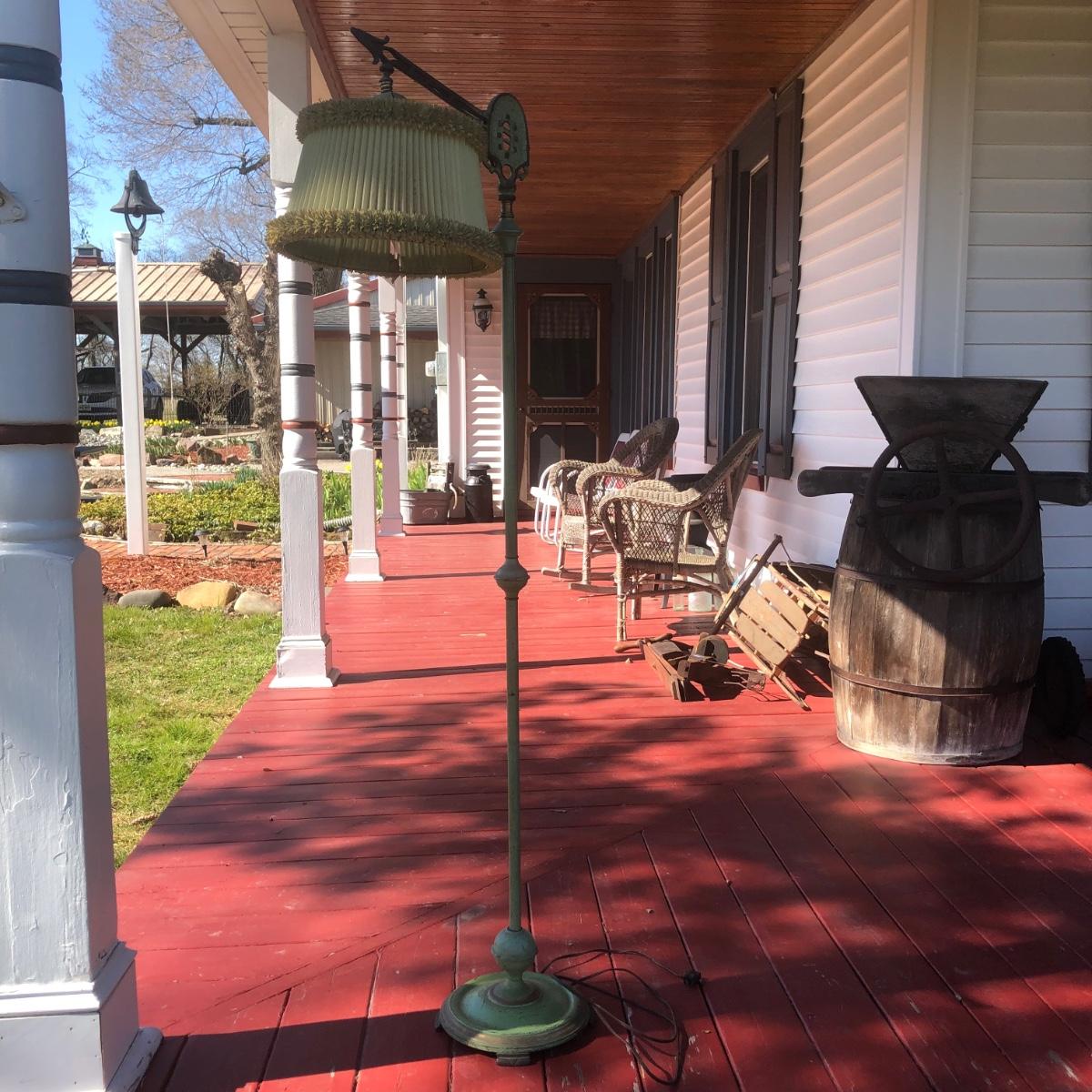 Lamp is untested. Lampshade has a small gap in it (see photos). Measures 59 inches tall.
