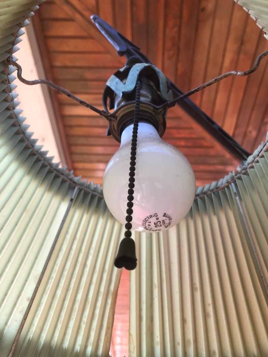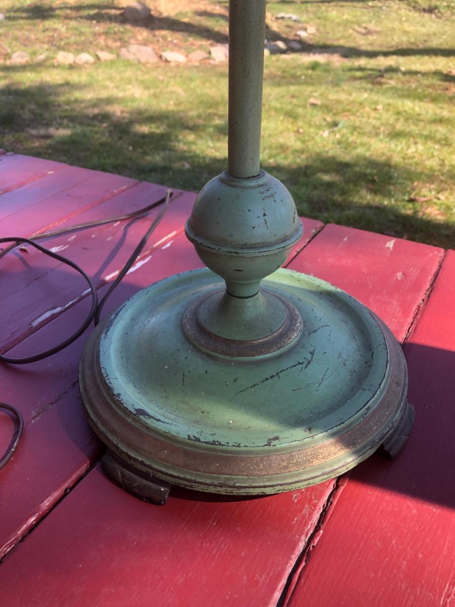 LOT 18M: Vintage Green Lamp w/ Paper Shade