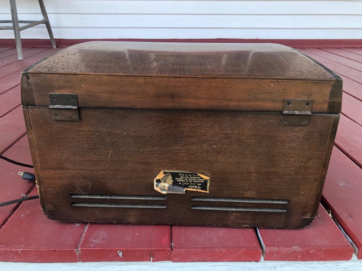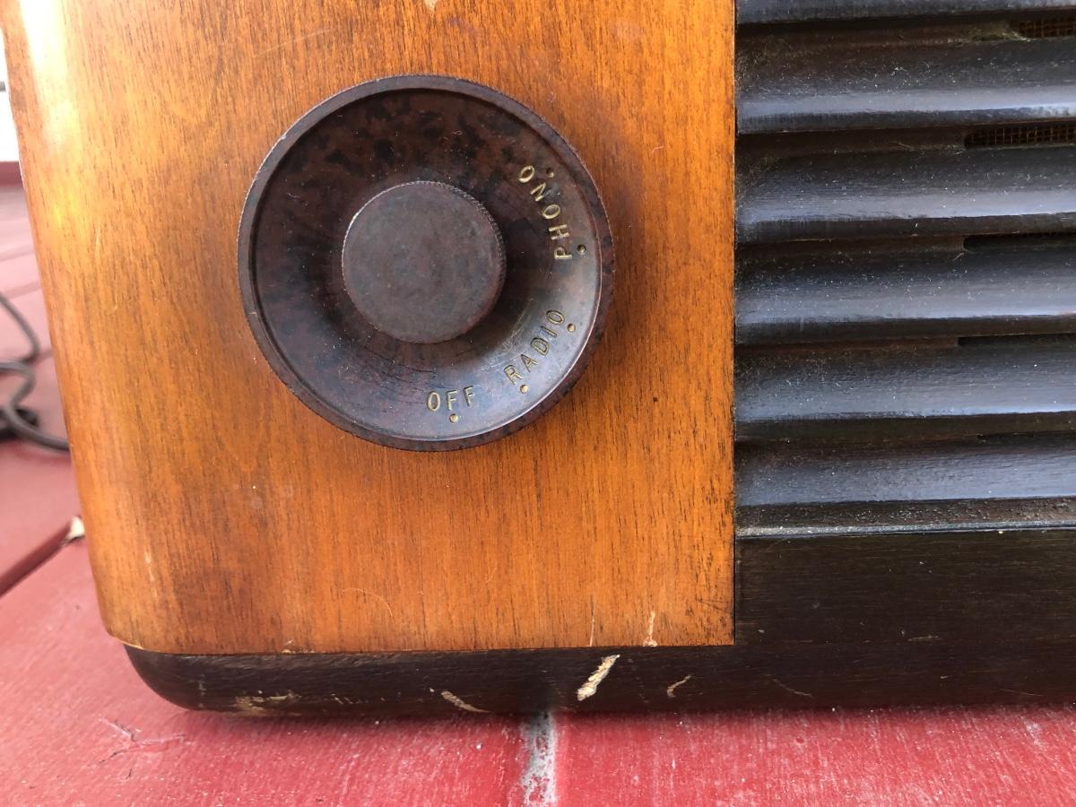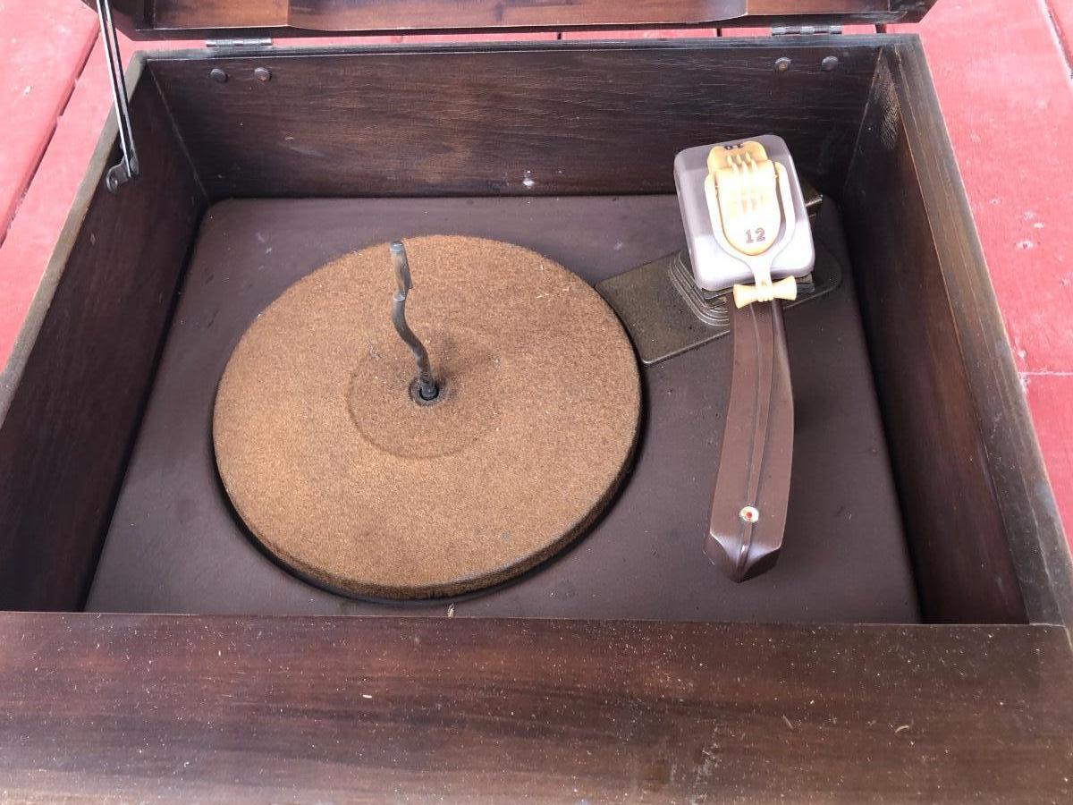 Phonograph is untested and has an electric plug and radio tuner.