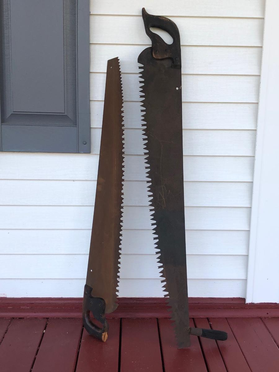 Two saws measuring 40inches & 46inches w/ their handles.