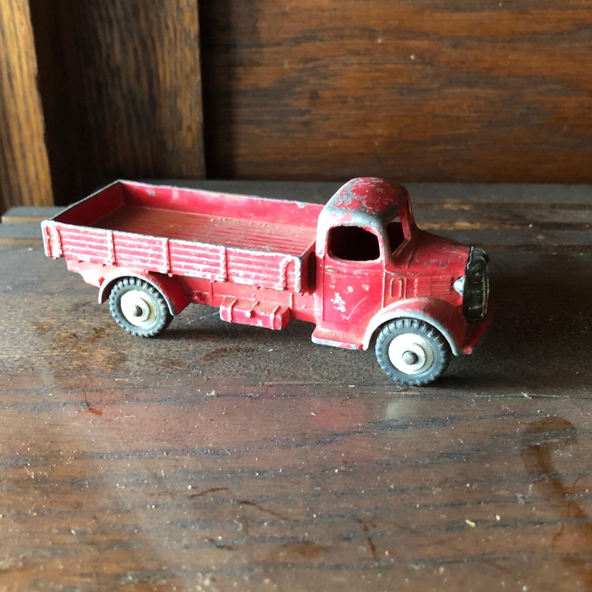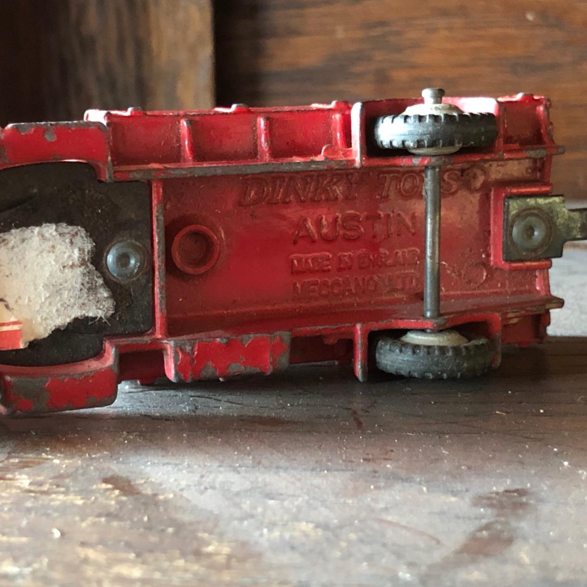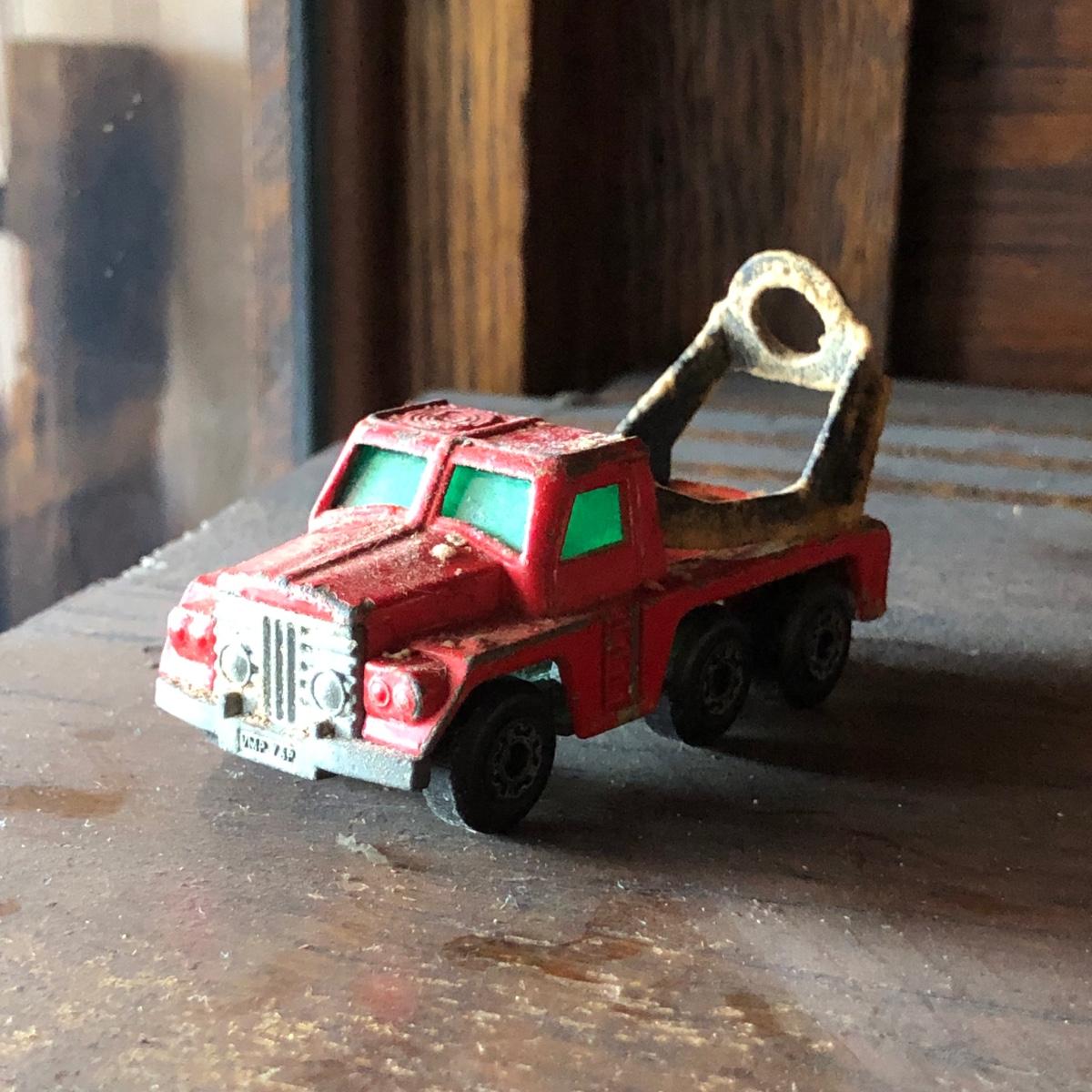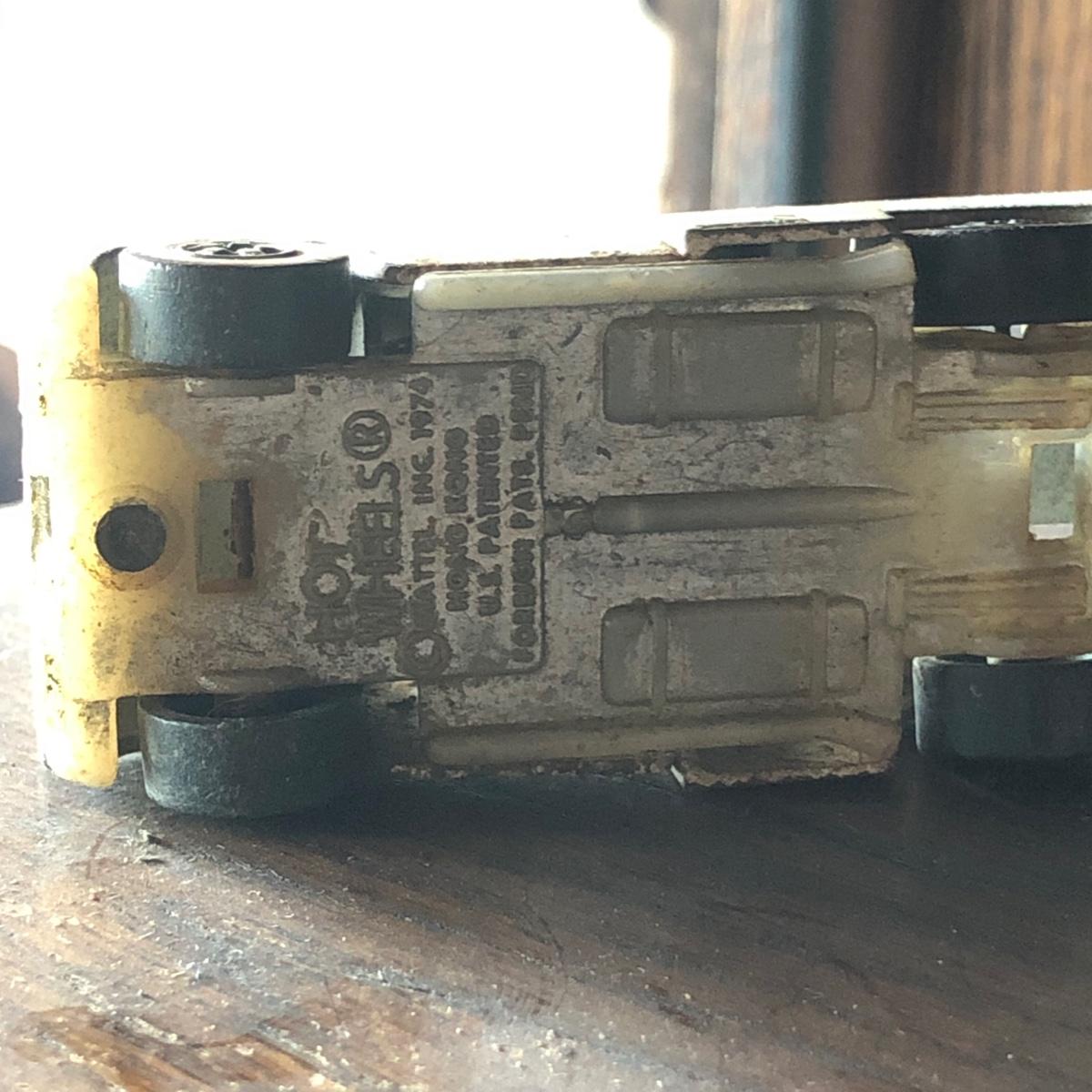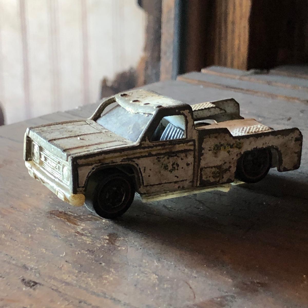 Includes seven models: Dinky Toys Mercano Austin Truck, 1979 Hot Wheels Speedy Removal Truck, a Tootsie Toy Car, 1974 Hot Wheels pickup, & more unlabeled cars.