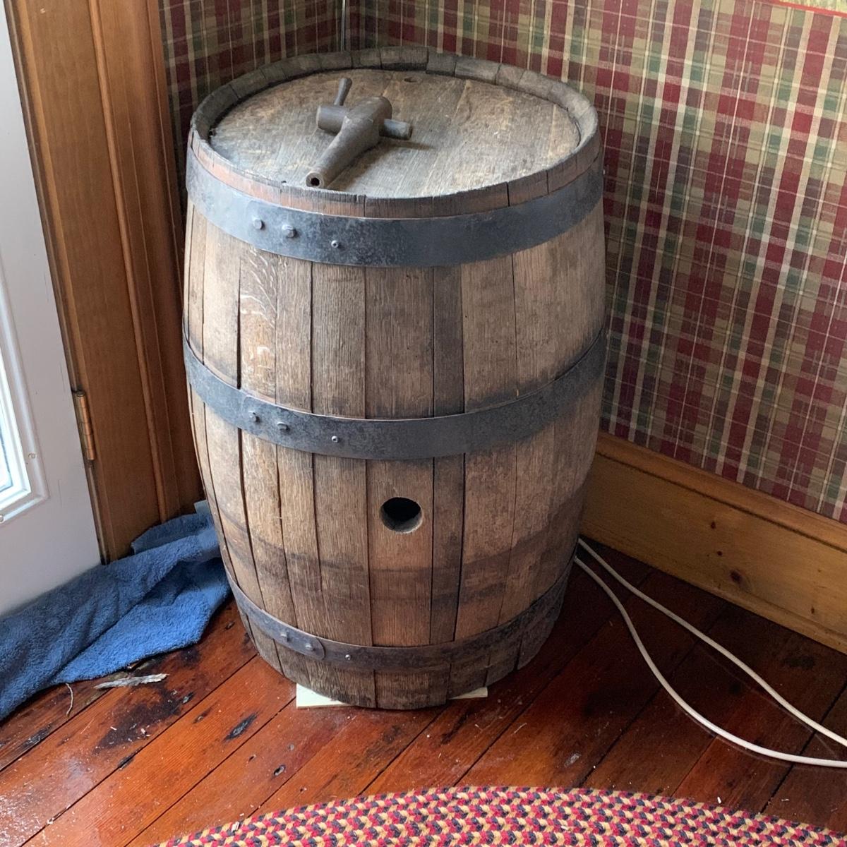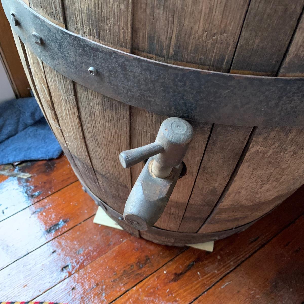 LOT 31R: Antique Wooden Barrel w/ Primitive Antique Barrel Tap