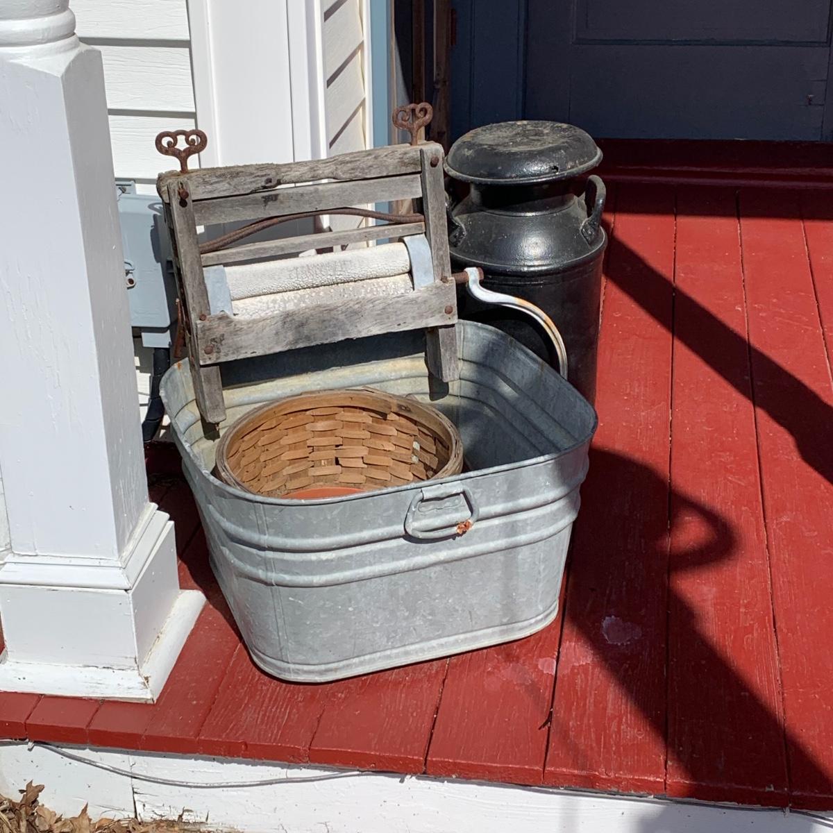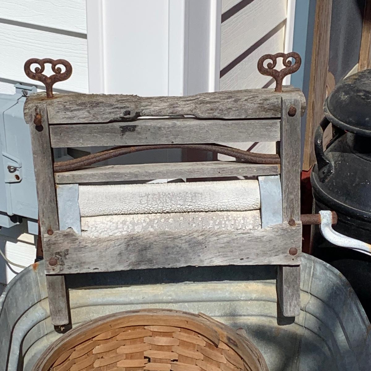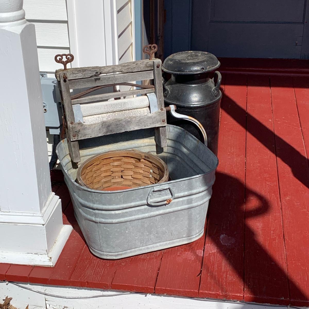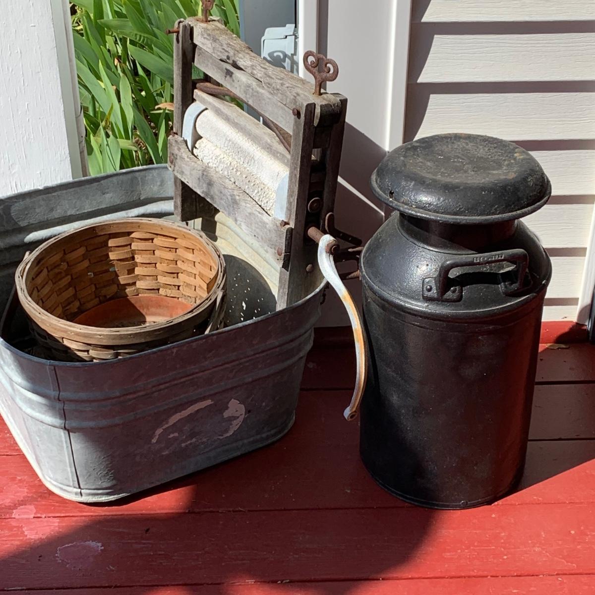 LOT 35R: Antique Hand-Crank Clothes Wringer Wash w/Wash Tub & Milk Can