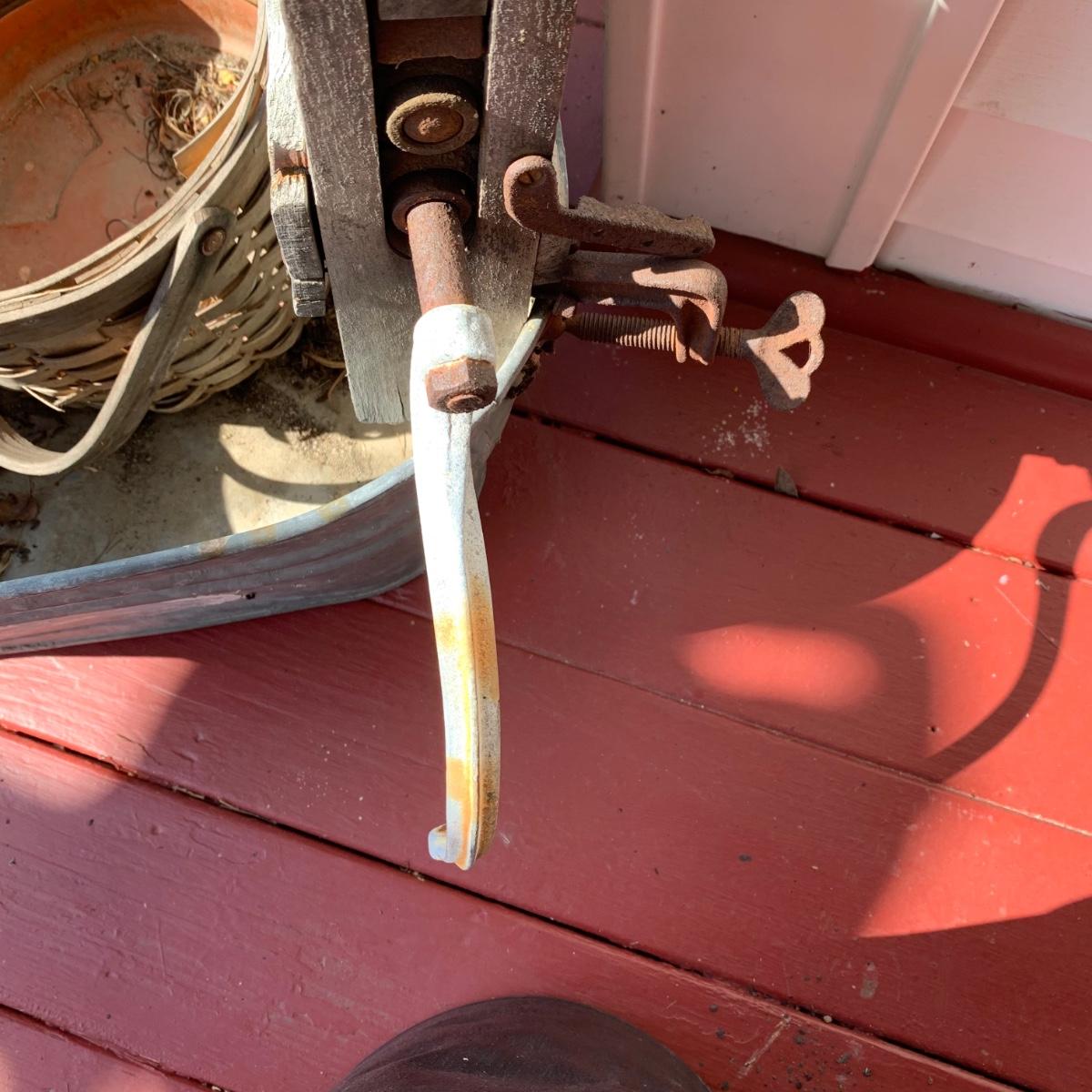 Primitive Porch Decor: Antique items have been outside and are in weathered condition.
