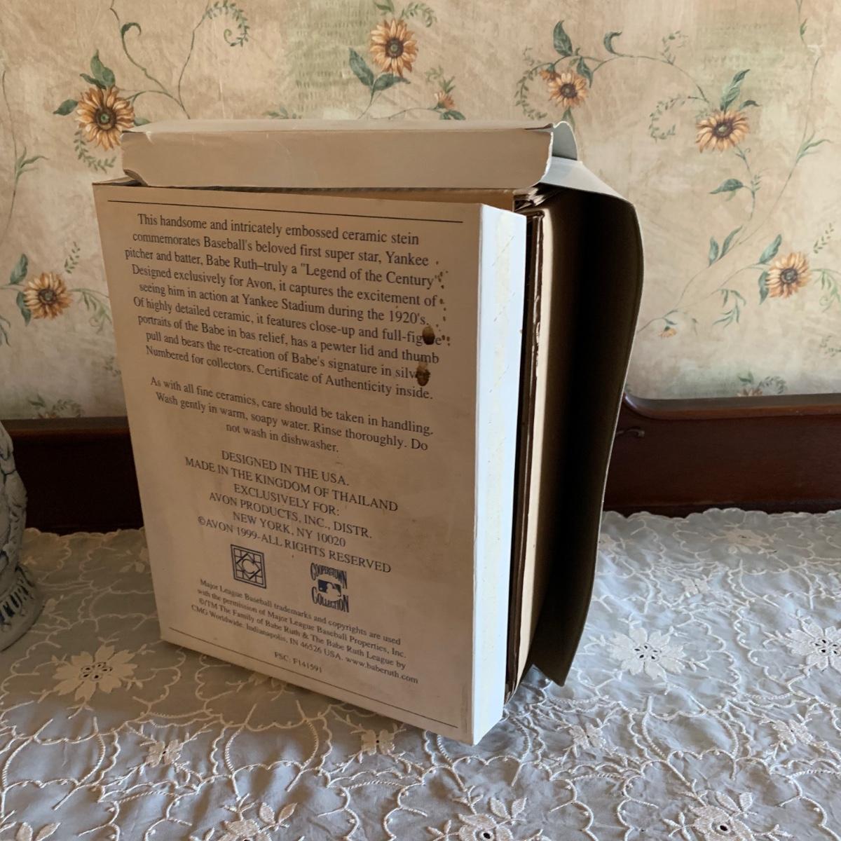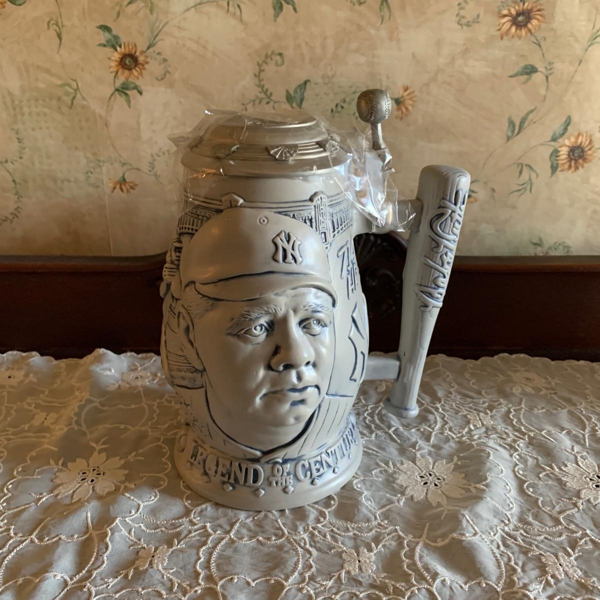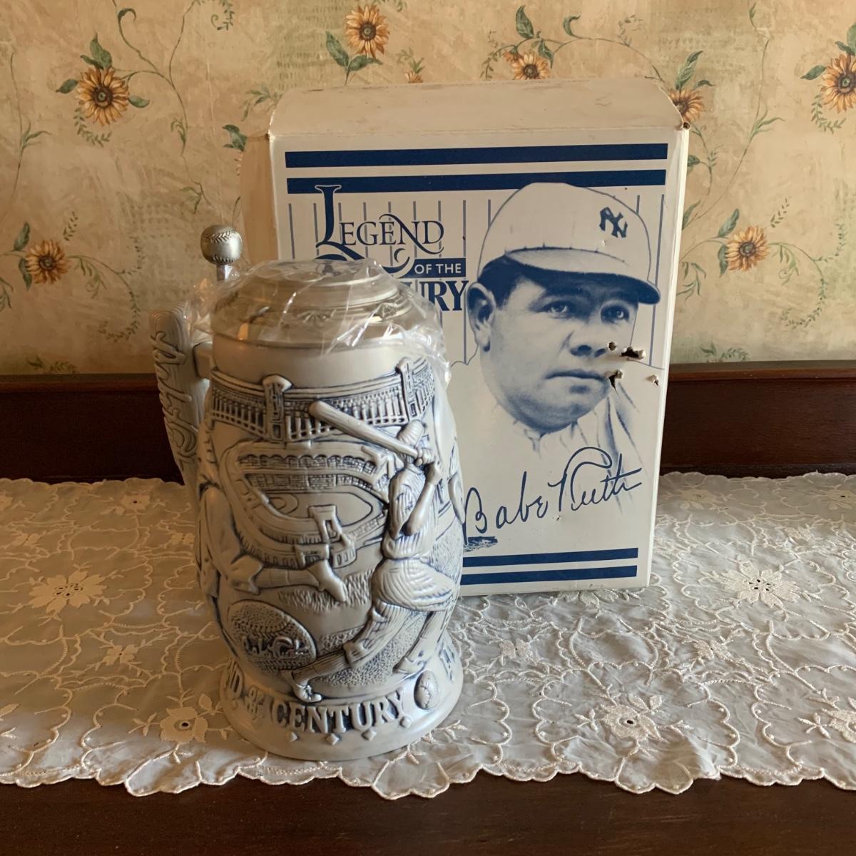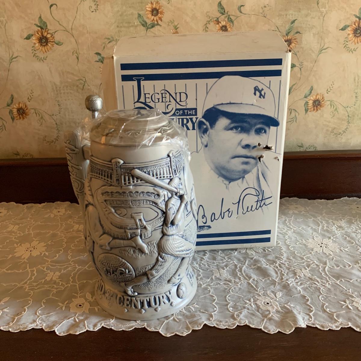 Babe Ruth stein includes original box with condition issues due to age & storage.