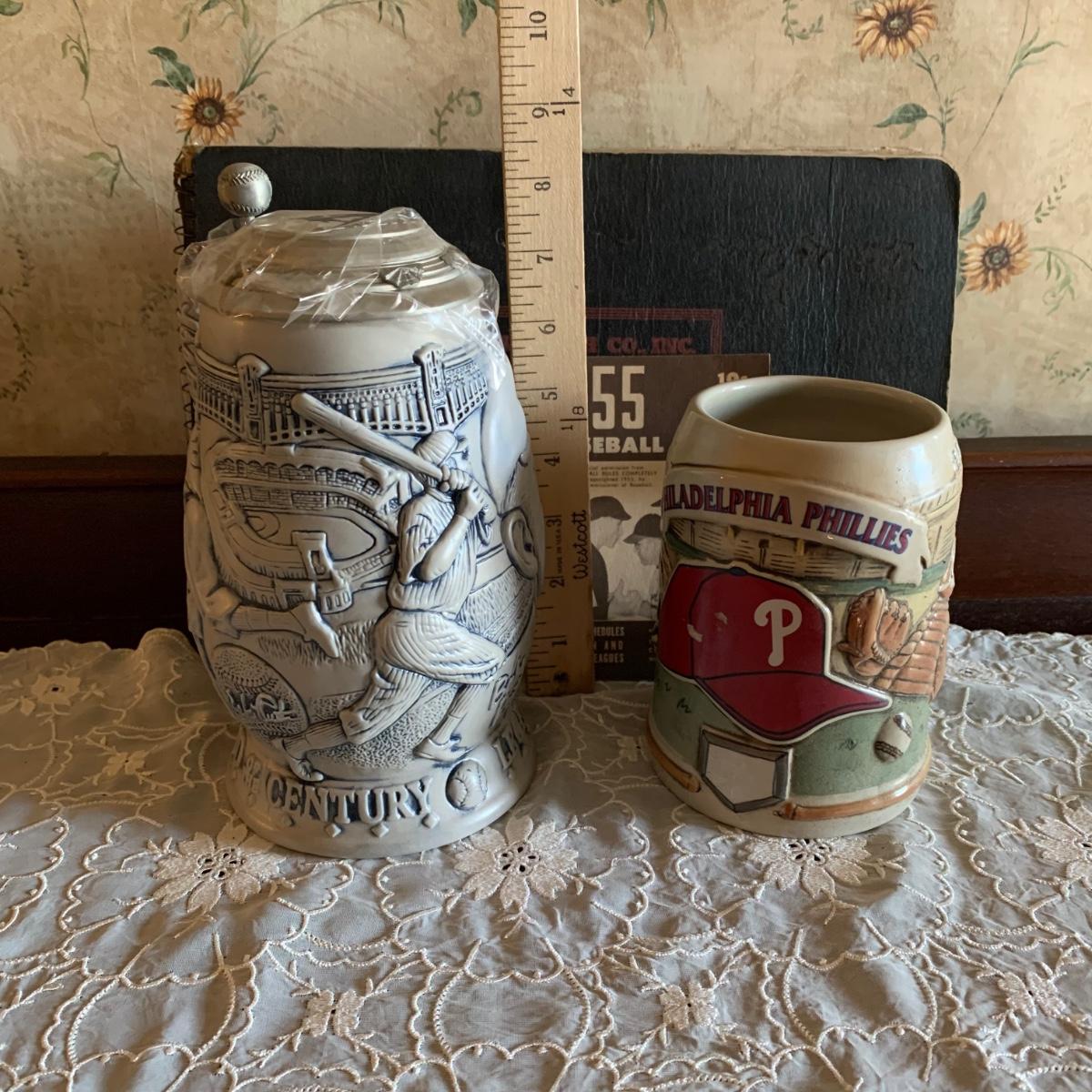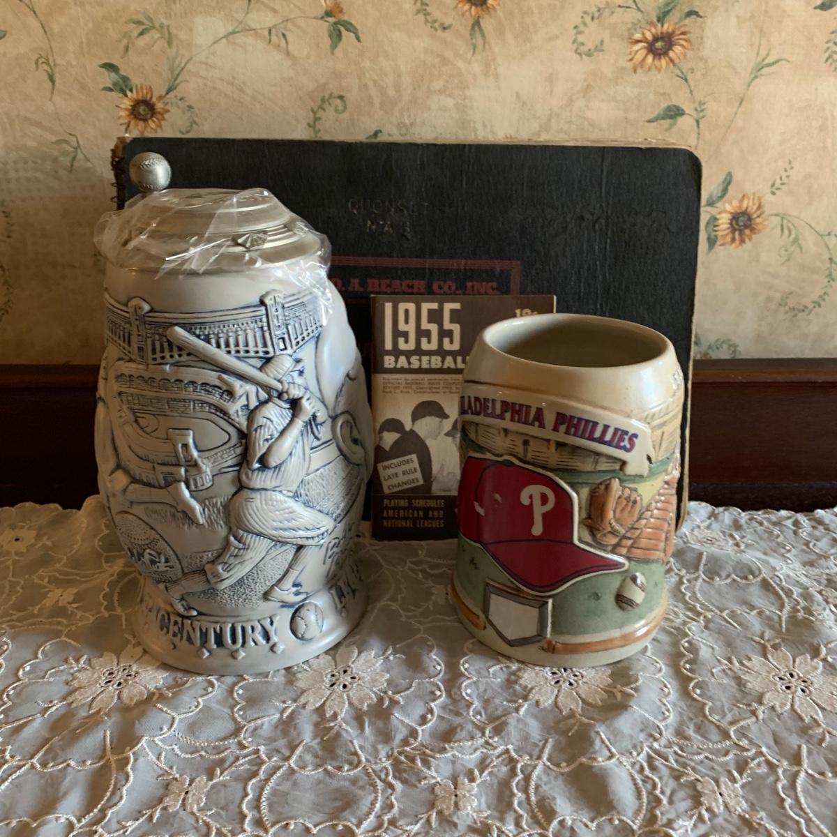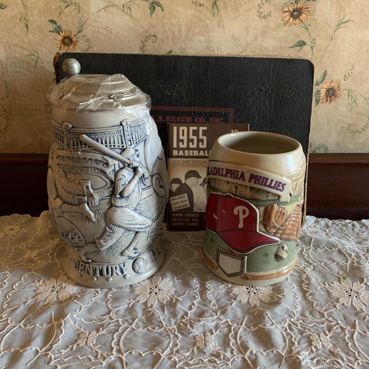 LOT 39R: Philadelphia Phillies Stein, Avon Babe Ruth Stein & Vintage Baseball Rules & Score Books