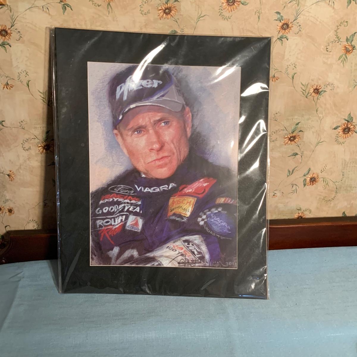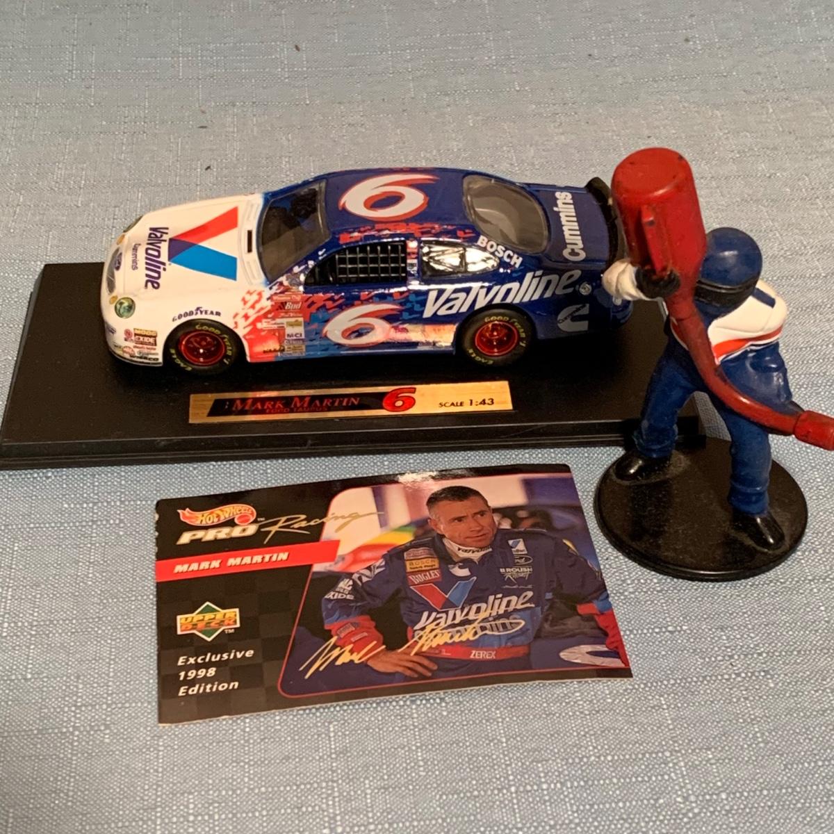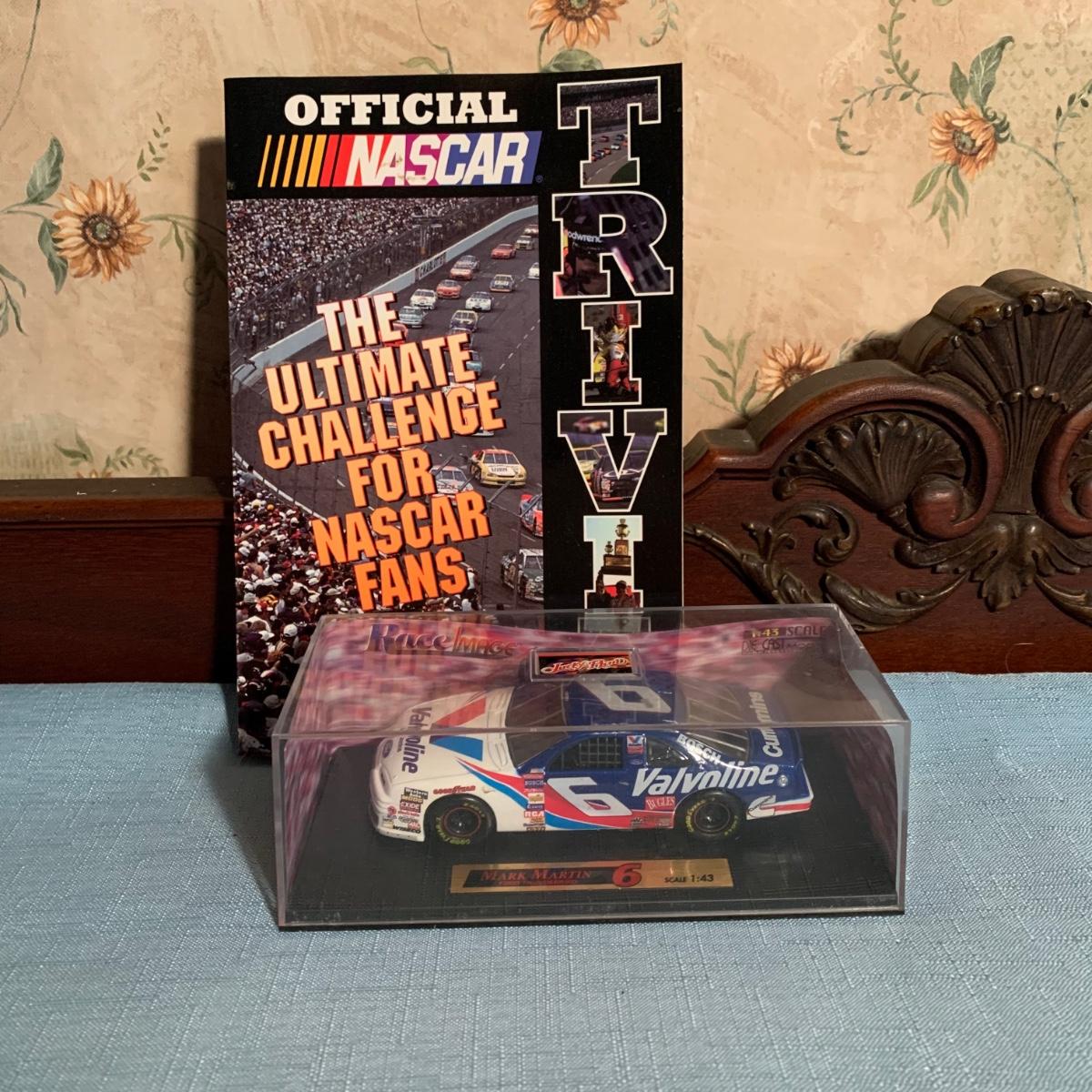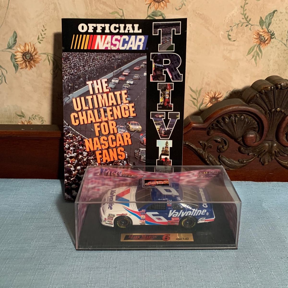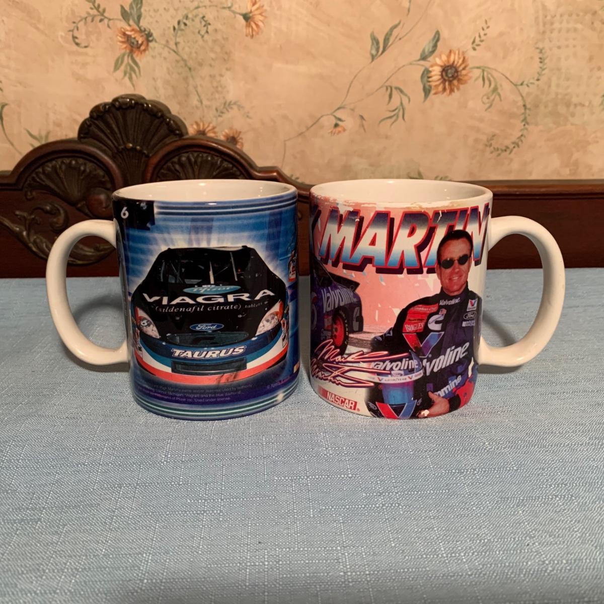 LOT 46R: Nascar Collectibles: Mugs, Mini Bobble Heads, Mark Martin Framed Card, Nascar Trivia Book & More