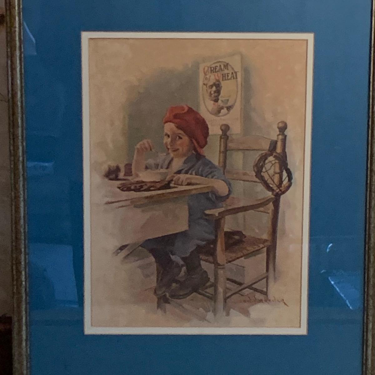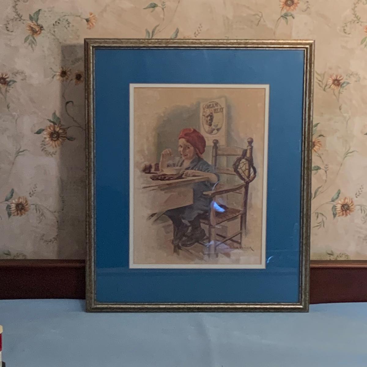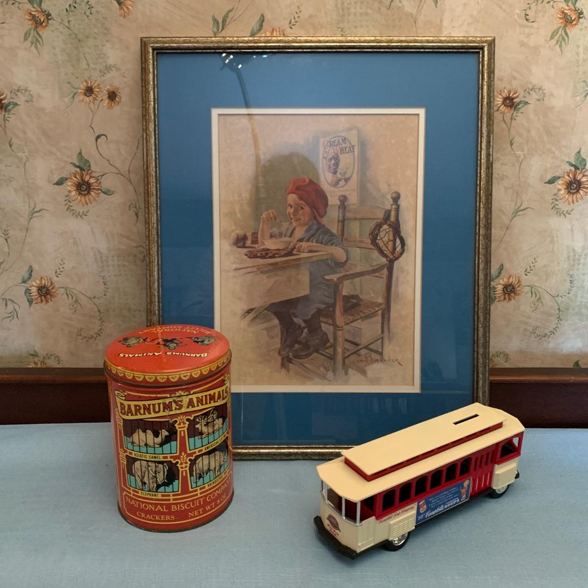 LOT 49R: Ertl Campbell's Soup Bank, Barnum's Animal Cracker Tin & Vintage Framed/Signed  Cream Of Wheat Print