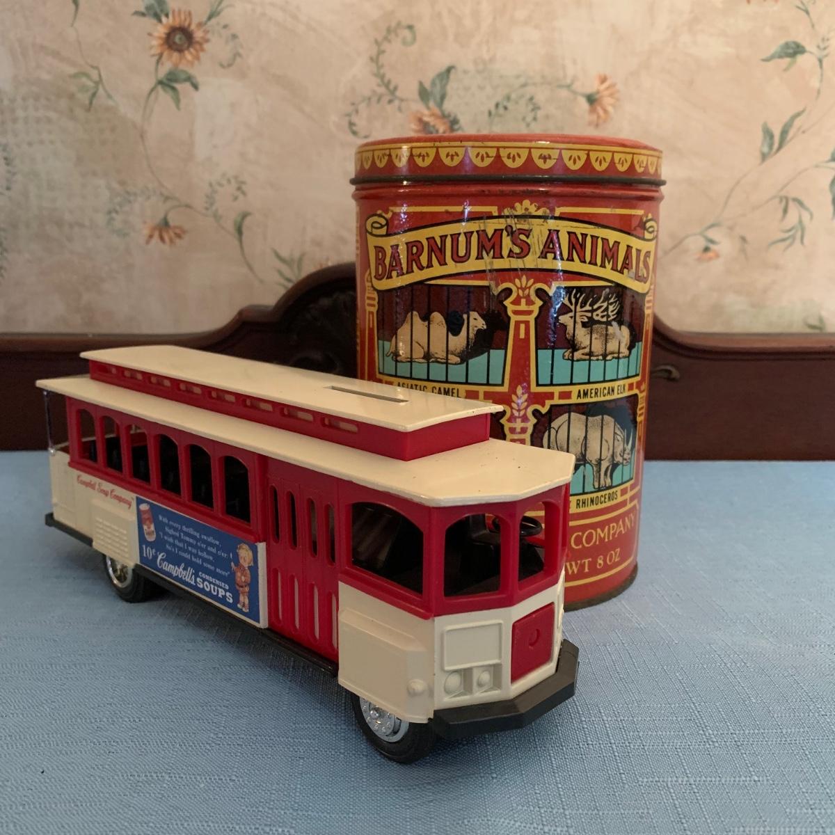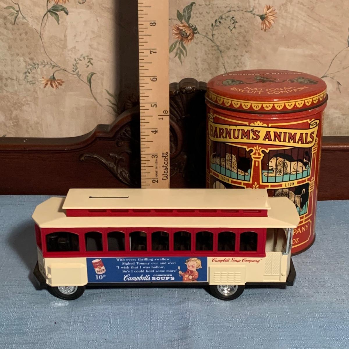 LOT 49R: Ertl Campbell's Soup Bank, Barnum's Animal Cracker Tin & Vintage Framed/Signed Cream Of Wheat Print