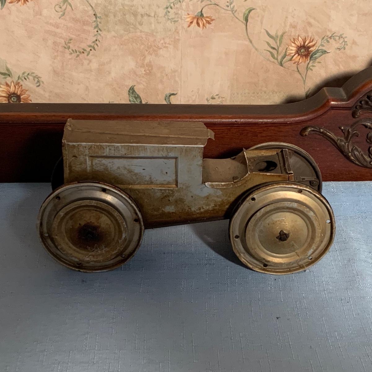 Vintage Walt Reach wind up toy tin care - did not test & show wear due to age. Tractor is made in USA and has patent date.