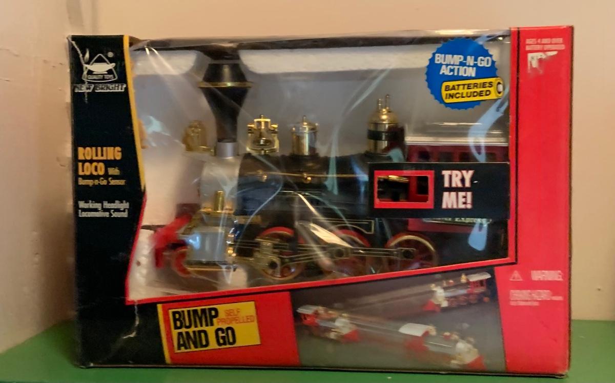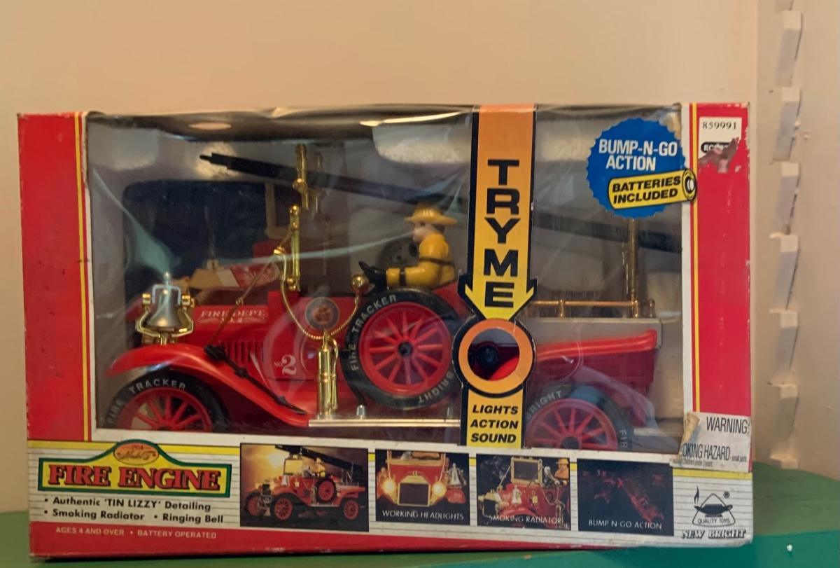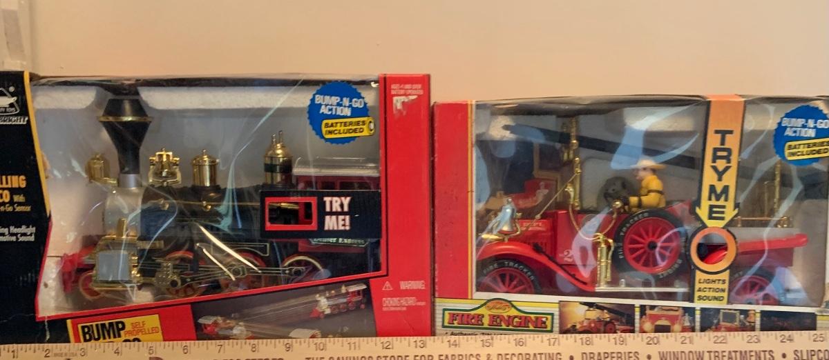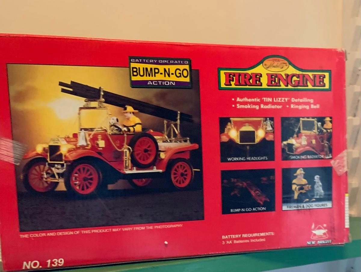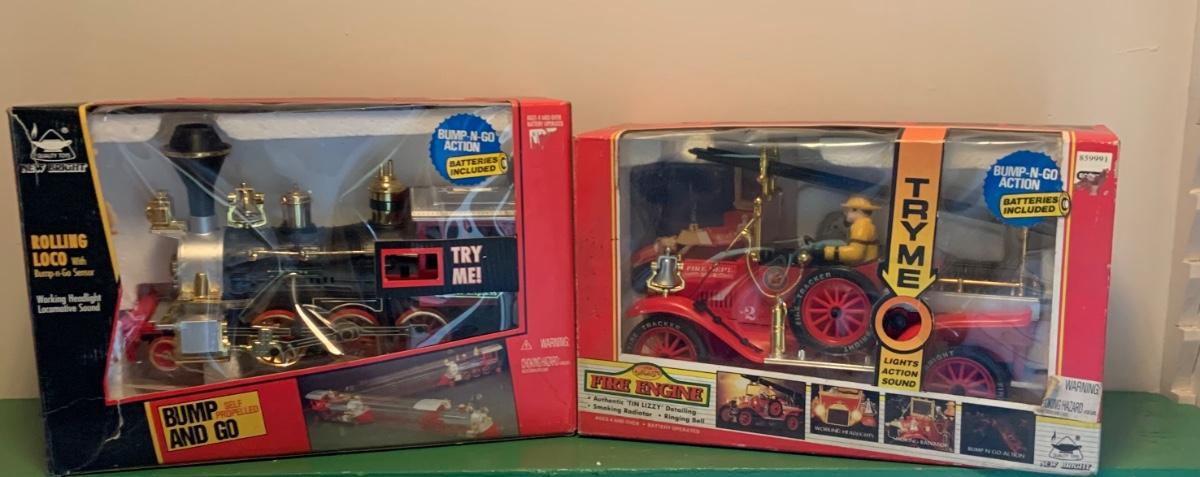LOT:62G: New Bright Bump and Go Toy Vehicles- The Locomotive & Fire Engine