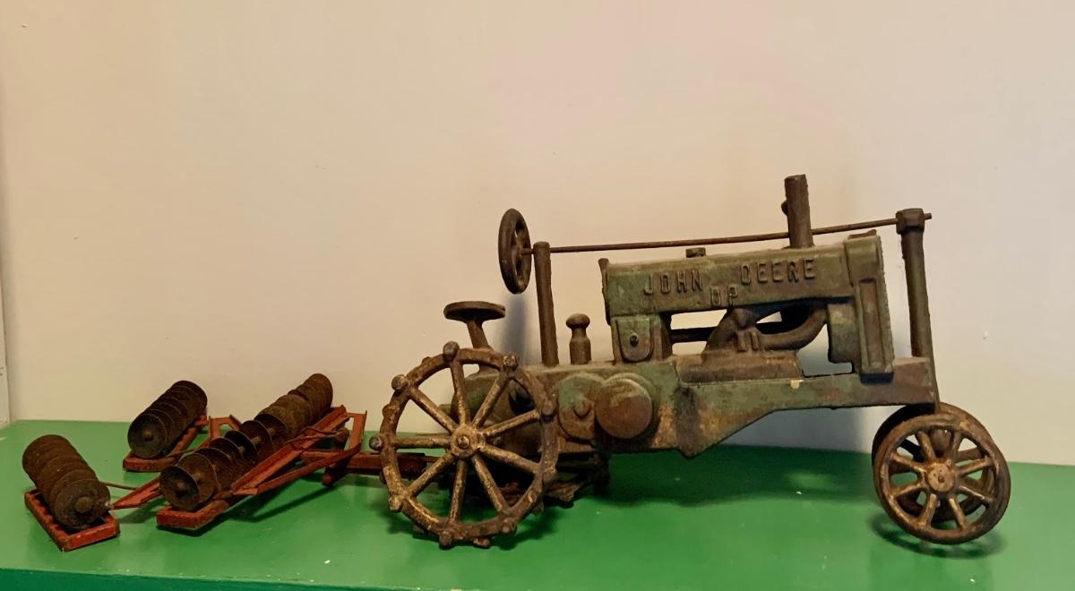 LOT:64G : Vintage Cast Iron John Deere Toy Tractor