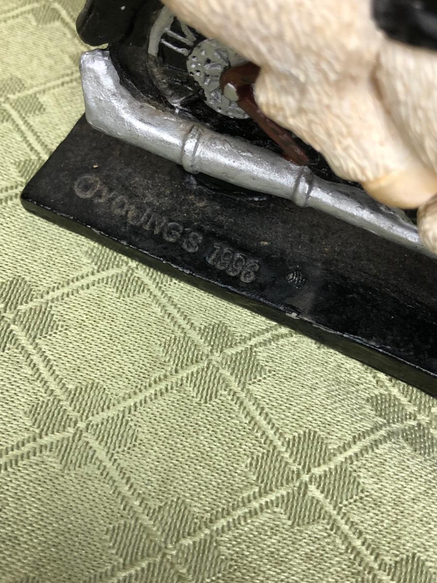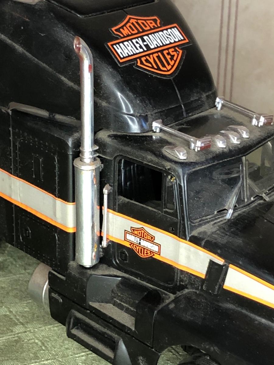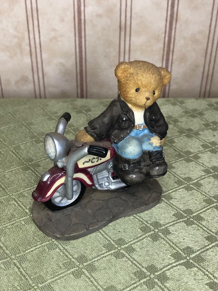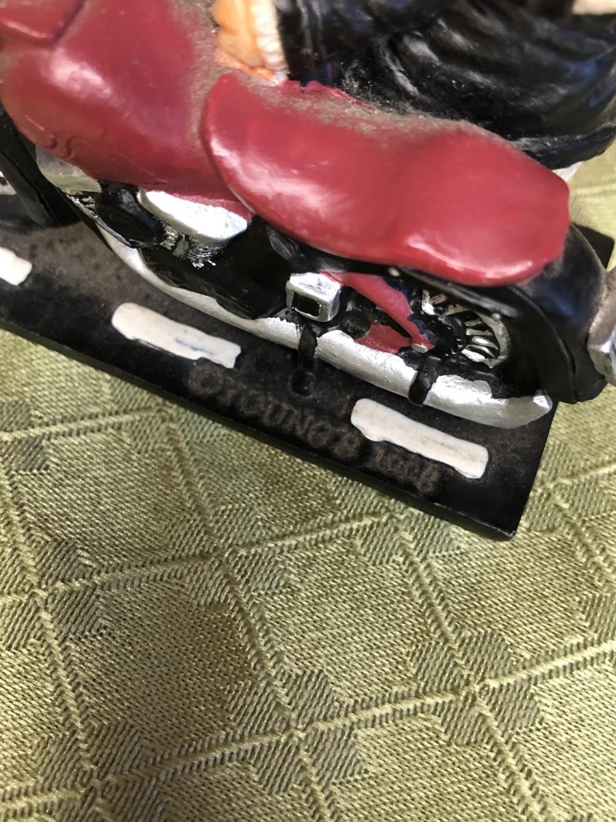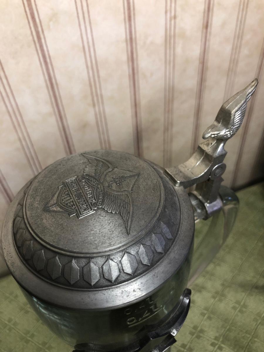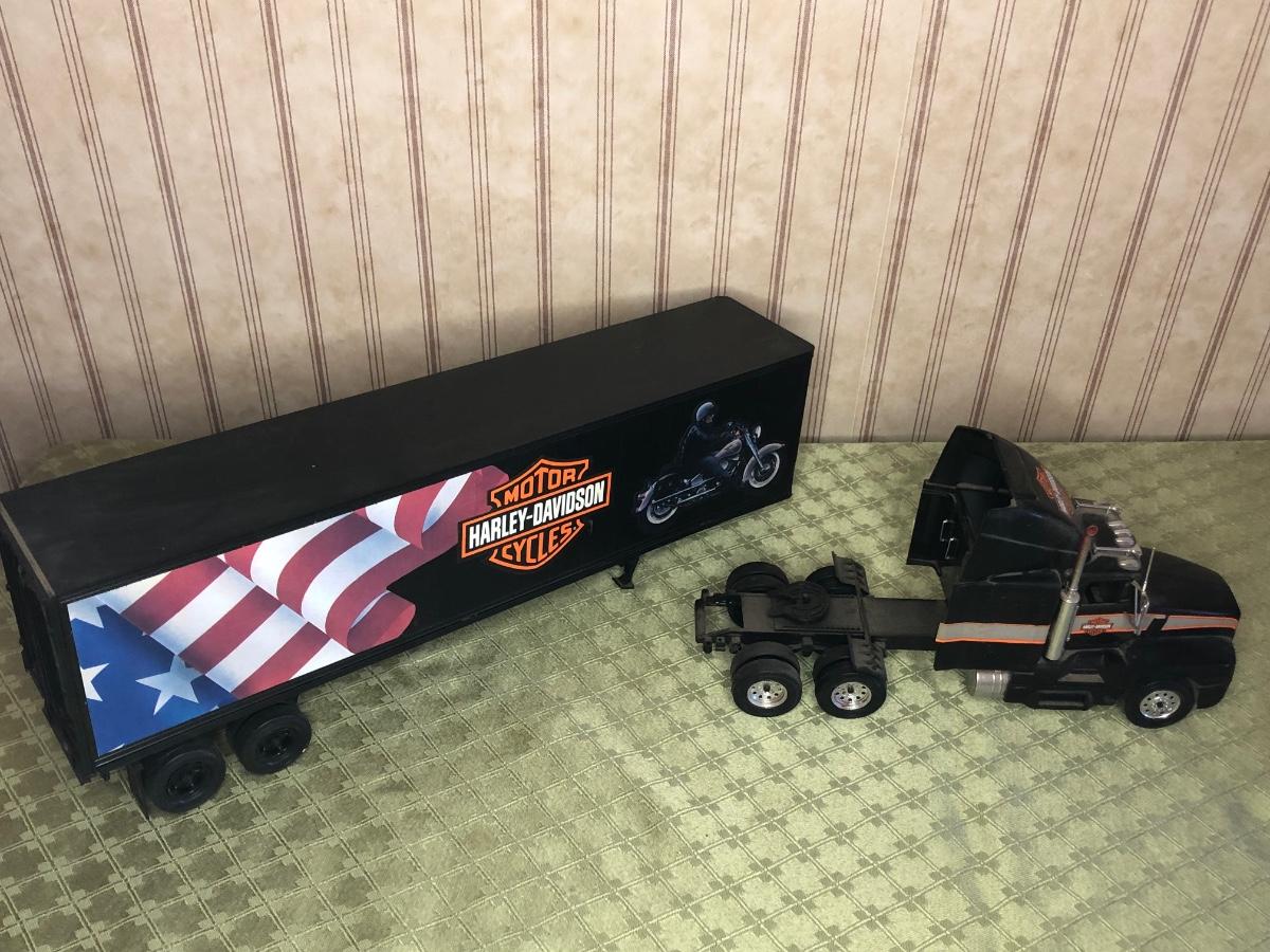 Includes a glass Harley-Davidson stein, two pigs on hogs sculptures made by Young's, a 2004 Cherished Teddies named Rocky, an eagle riding a motorcycle, a skeleton on a motorcycle with the American flag, and a Harley-Davidson semi-truck model. The semi-truck model is missing a small window attachment (see closeup photos).