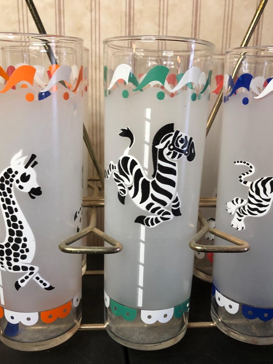 LOT 88M: Carousel Animal Glasses w/ Holder