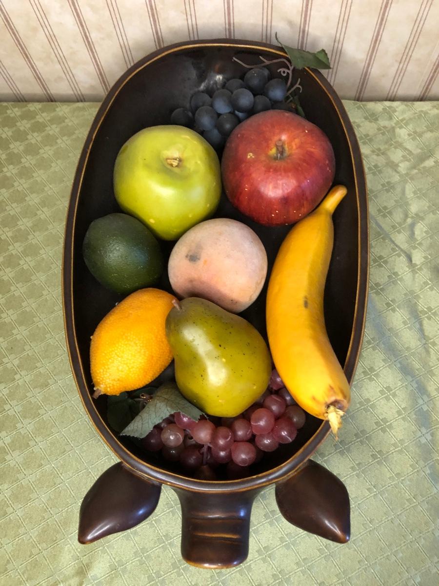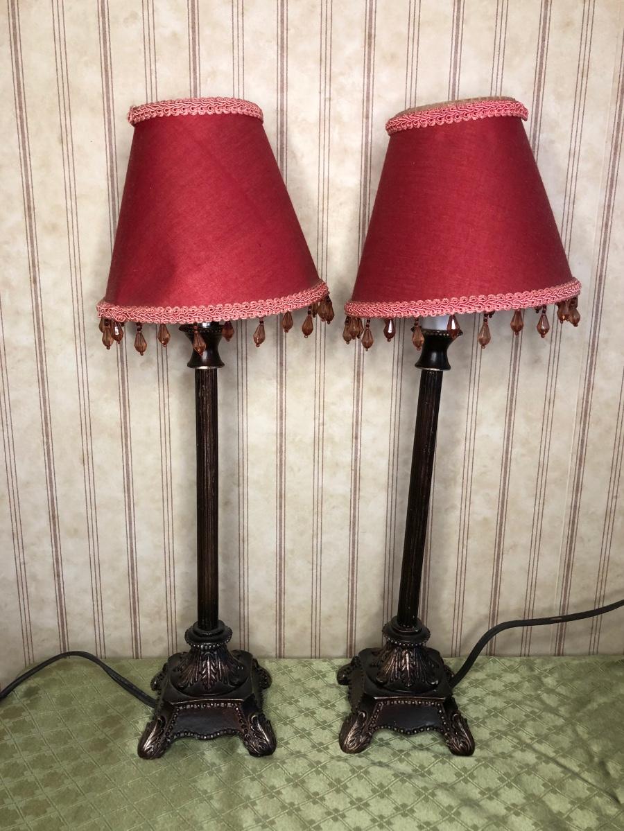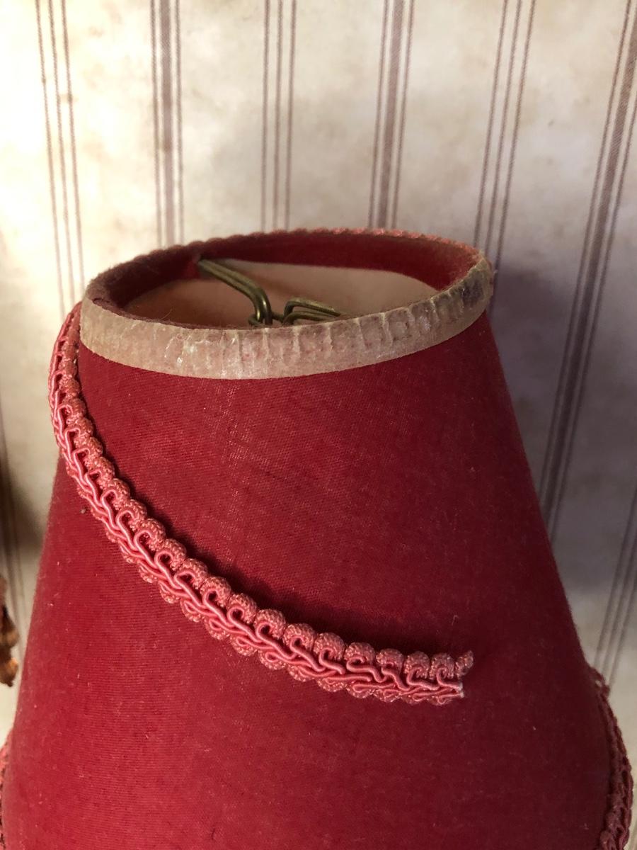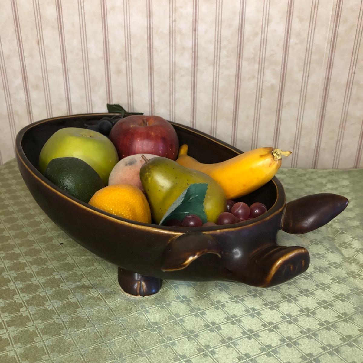 Includes a bowl shaped like a pig with faux fruit in it, two wall hangings with pig motif, a small stacked pig statue, and a pair of matching lamps with red shades. The ribbon on one of the lampshades is falling off (see photos).