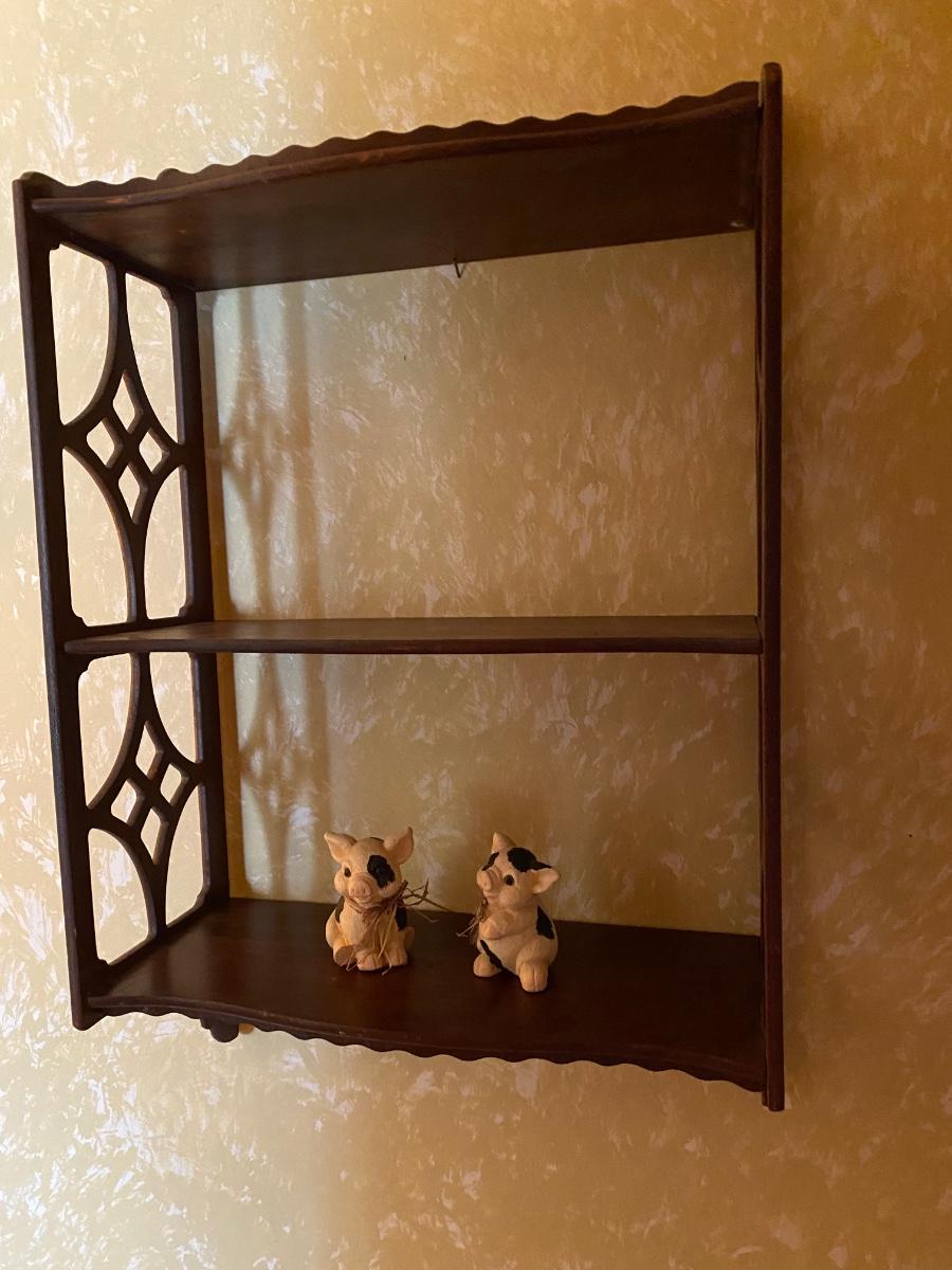 LOT 109C: Vintage Wood Shelf and Piggy's