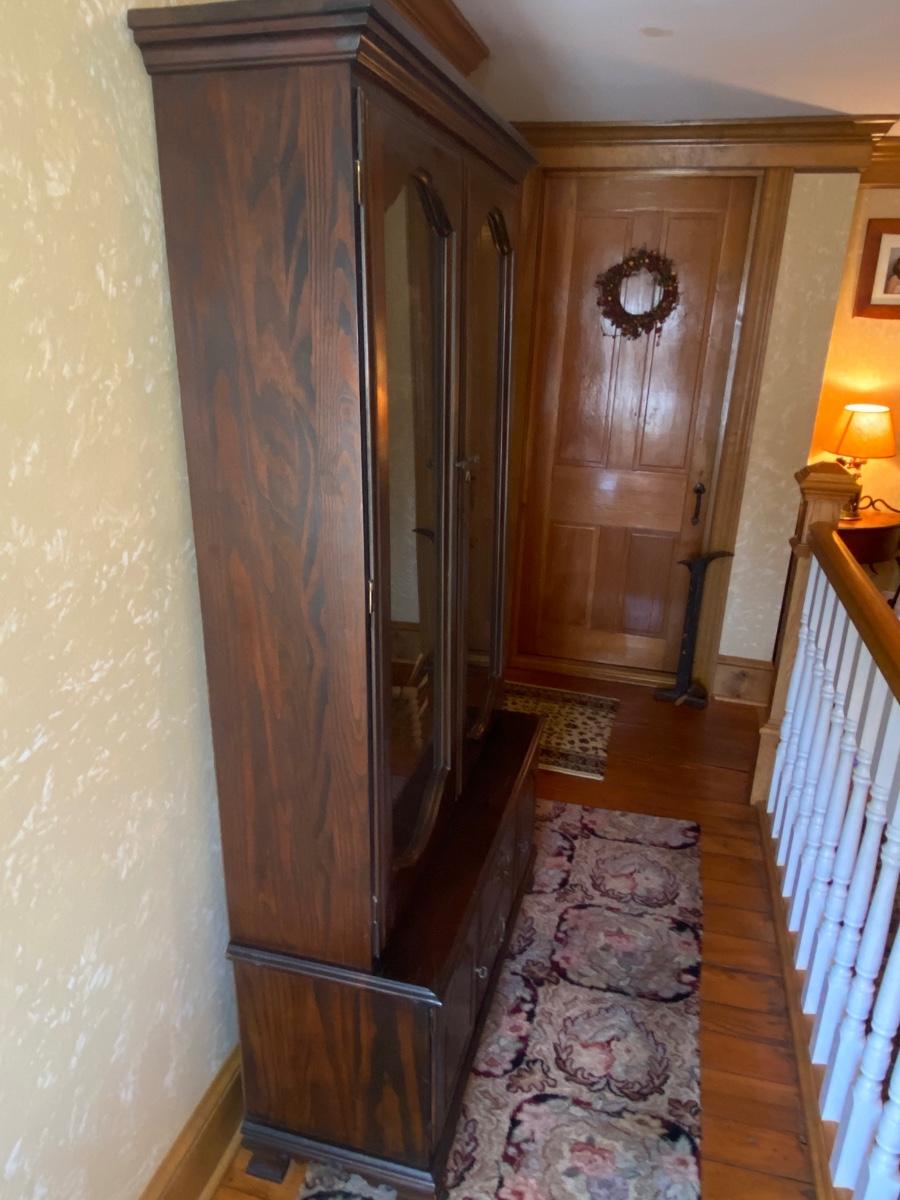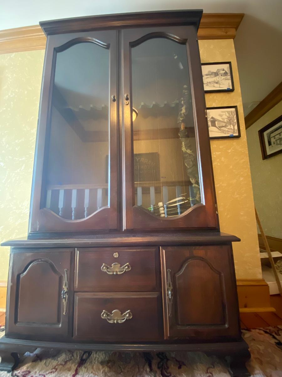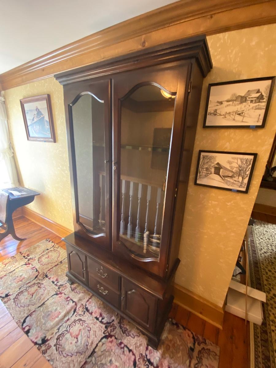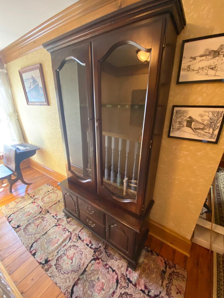 39”x15”x71”.locking wood gun cabinet which is in good used condition. Only the cabinet is for sale. Contents inside cabinet will be removed prior to day of pick up. Please see all pictures as they are the best representation of the items. The pictures show condition, measurements if taken, and what is included in the lot. Due to the large amount that we photograph and the time frame, we are not always able to take measurements. All items unless noted, are pre-owned and have been used. If you purchased furniture, you must bring help. We do not allow one person to carry large furniture out on their own. Bring help, tools and a truck for the safety of our client’s homes, and your personal safety. Any damages that result to the property including walls, and floors due to moving of the furniture will be charged to the buyer. Company policy. Thank you.