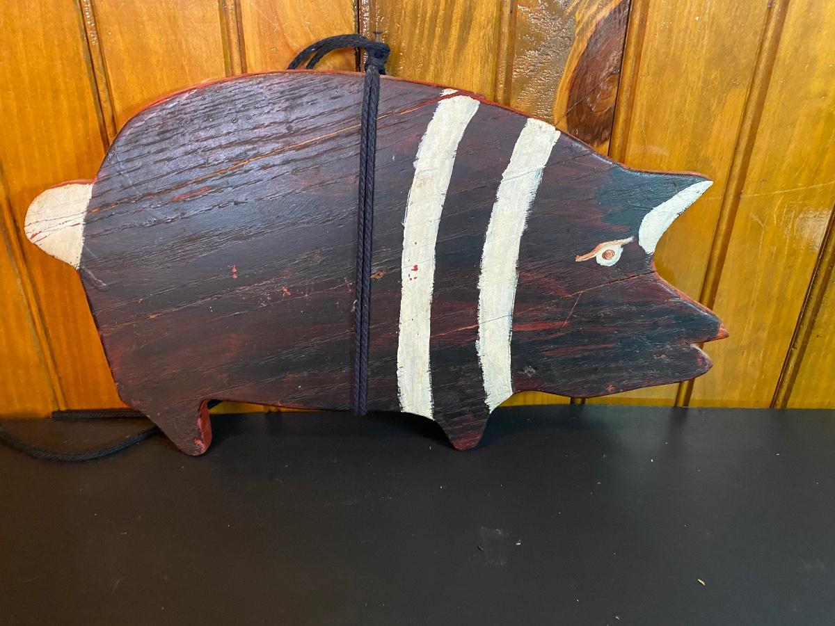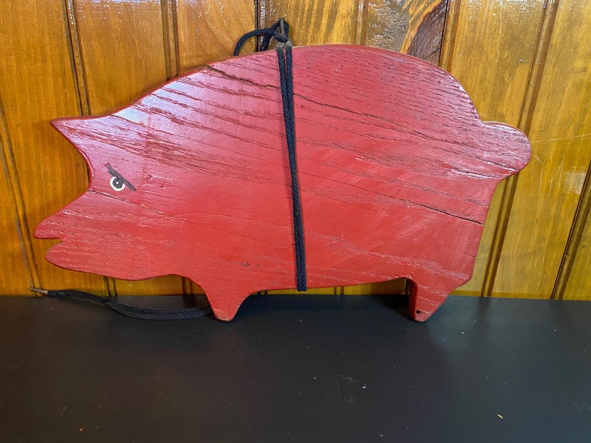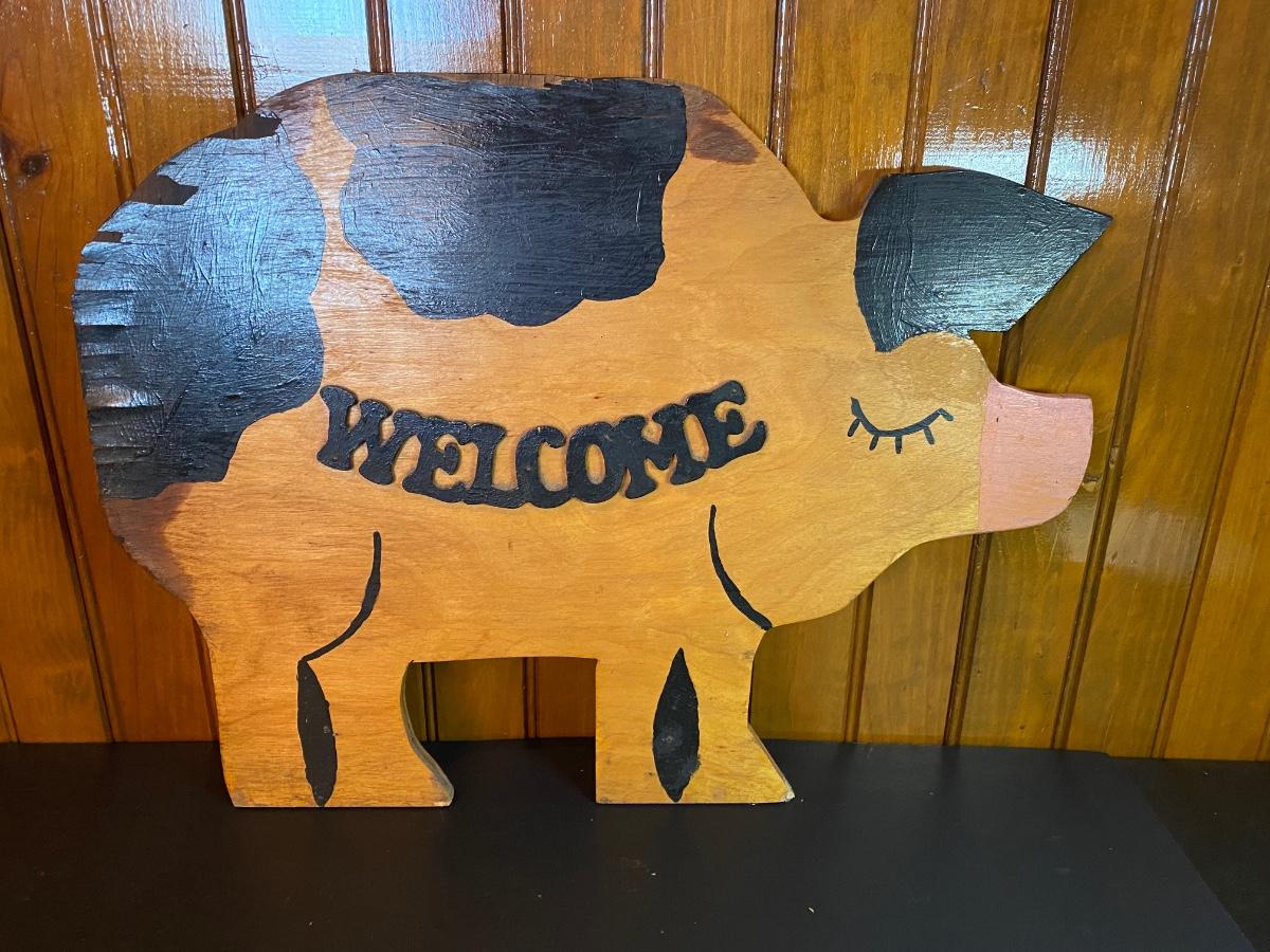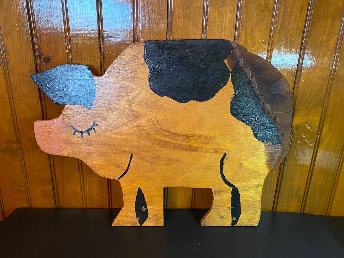 LOT 136C: Pig Wood Signs, Plush Pig and Tractor Toy