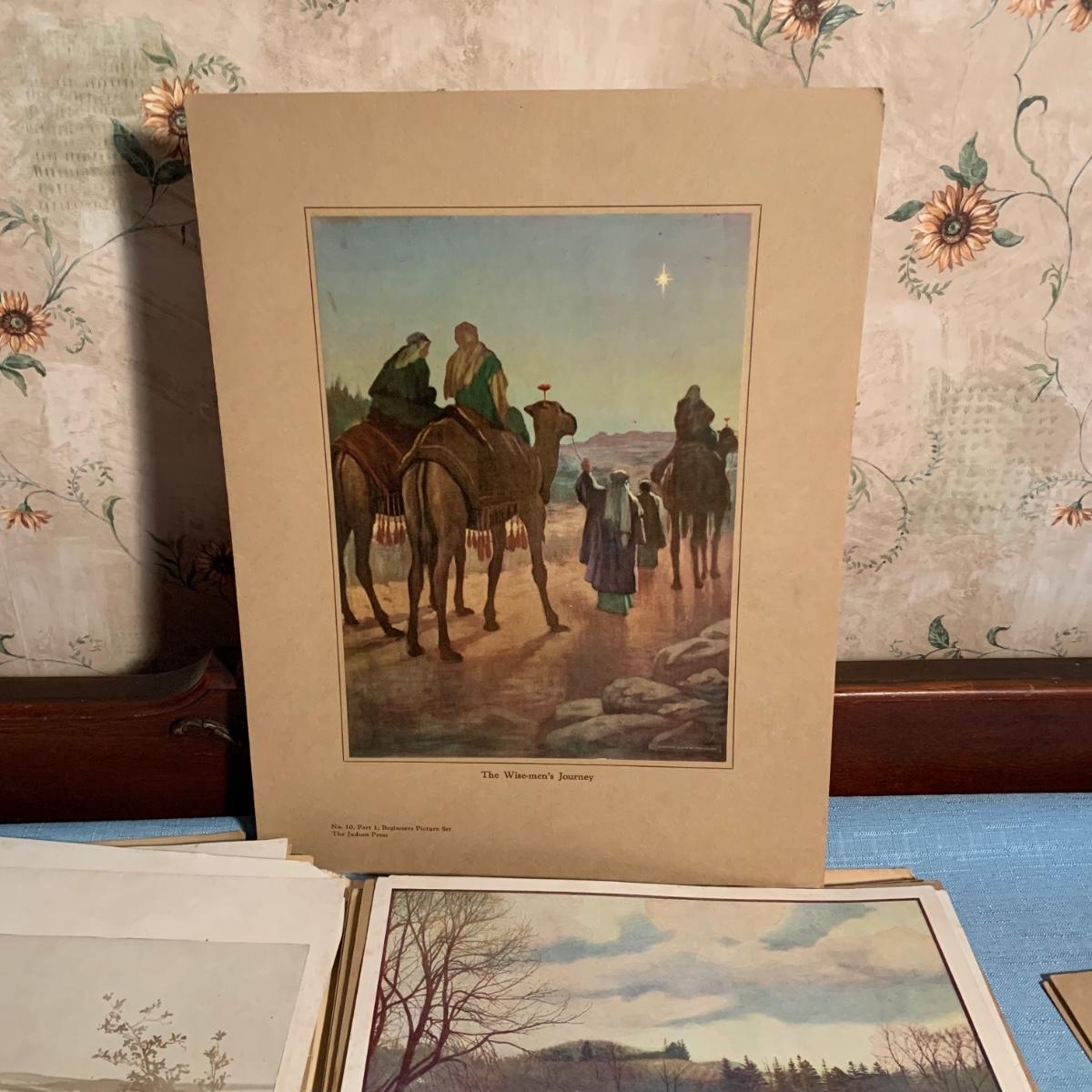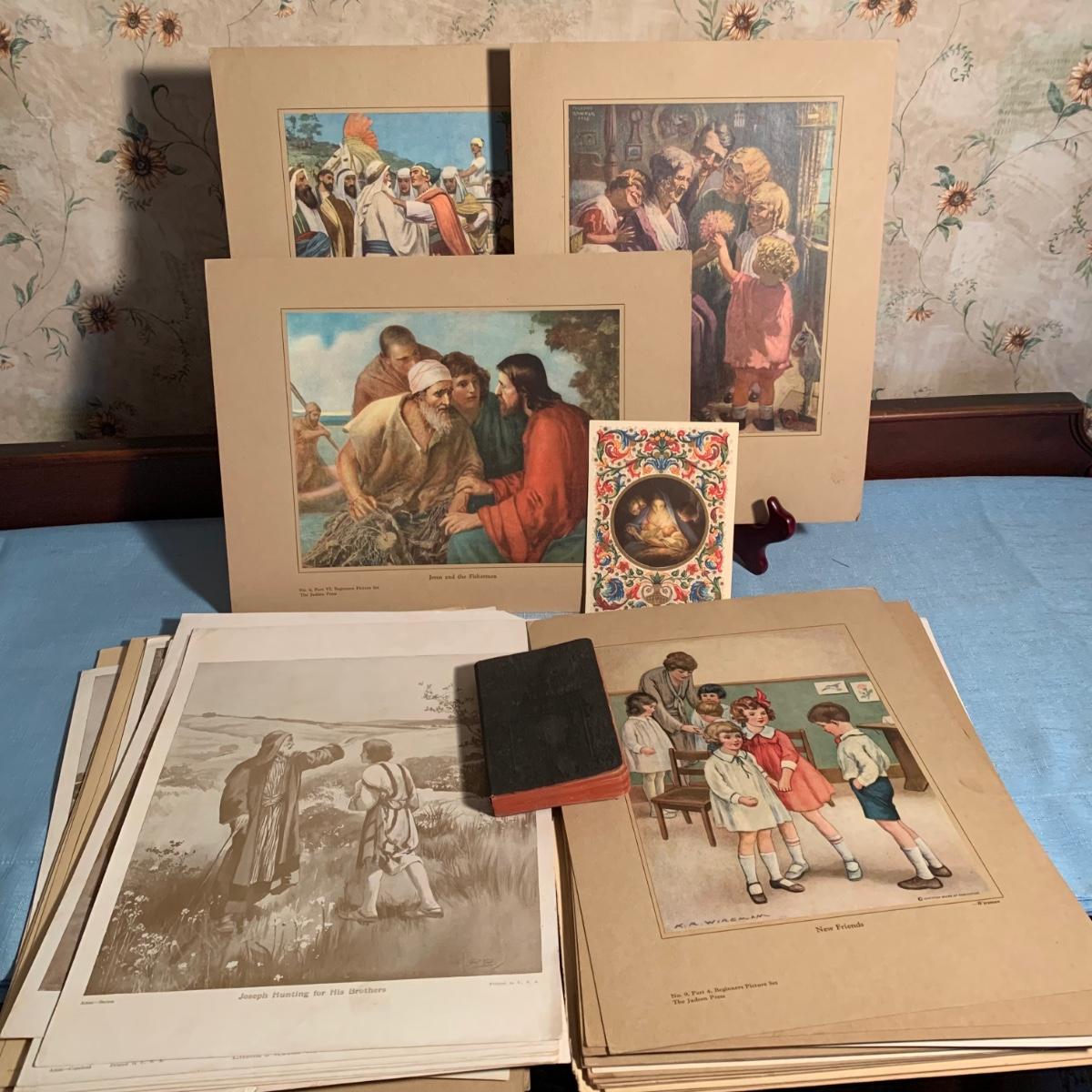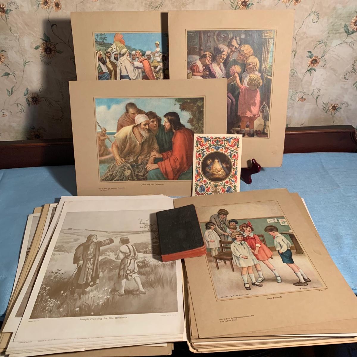 LOT 154R: Vintage Primary Religious Picture Set and More