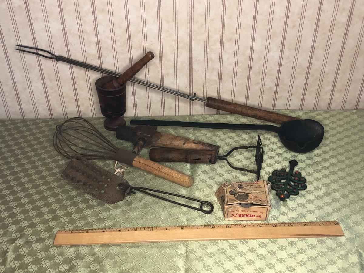 LOT 193M: Vintage Kitchen Tools - Pepsi Cola Bottle Opener, Wooden Mortar & Pestle, More
