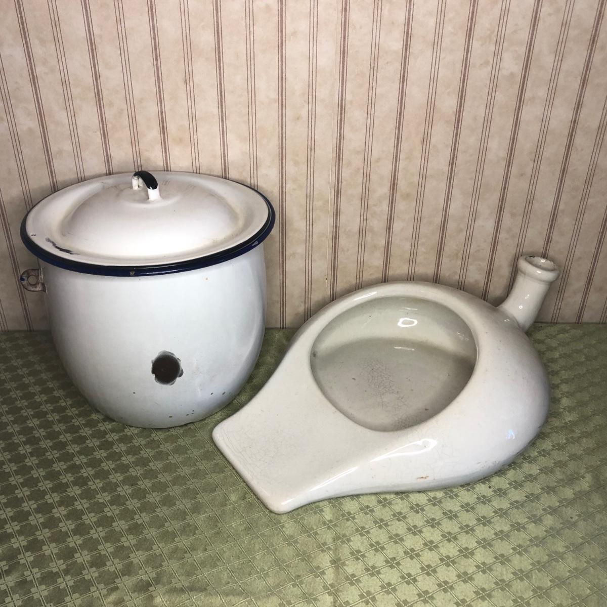 LOT 195M: Vintage Chamber Pot & Porcelain Bedpan/Urinal