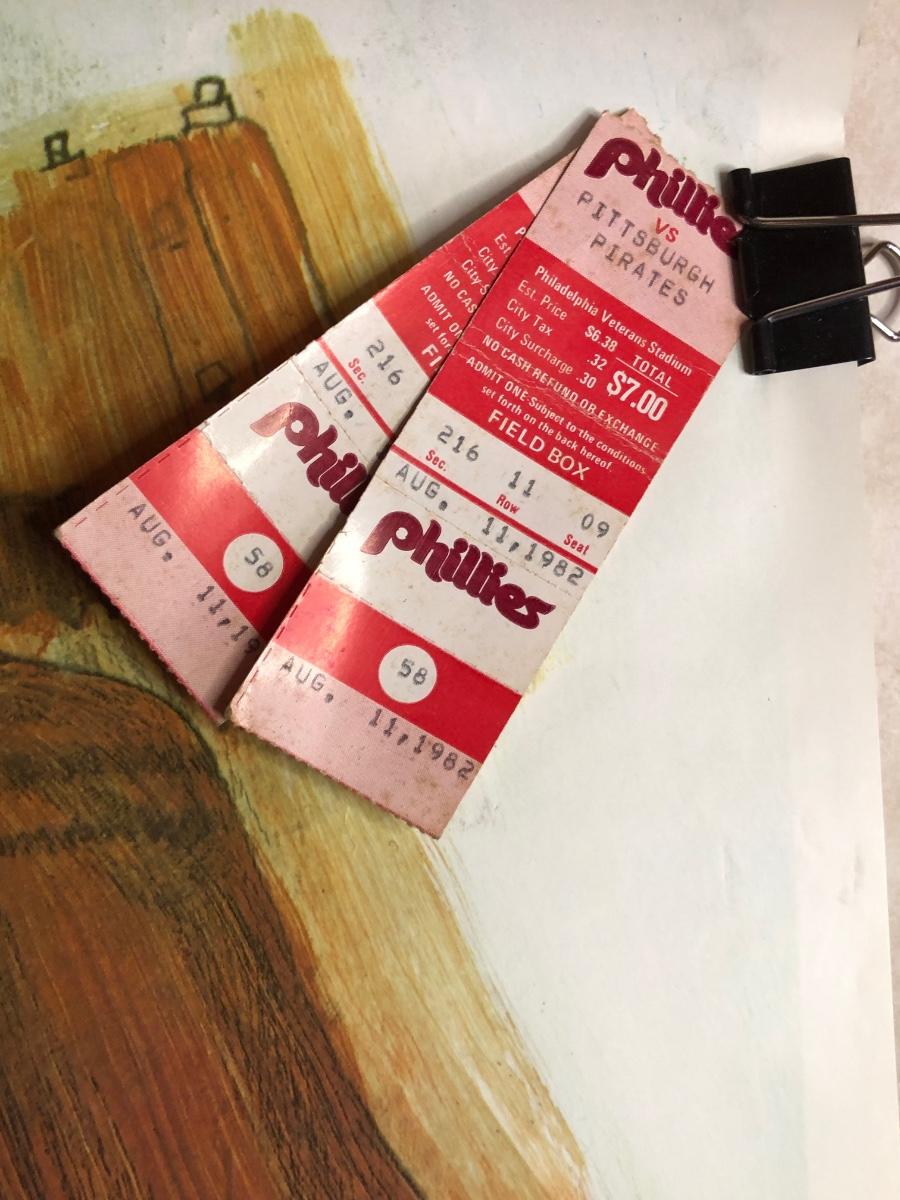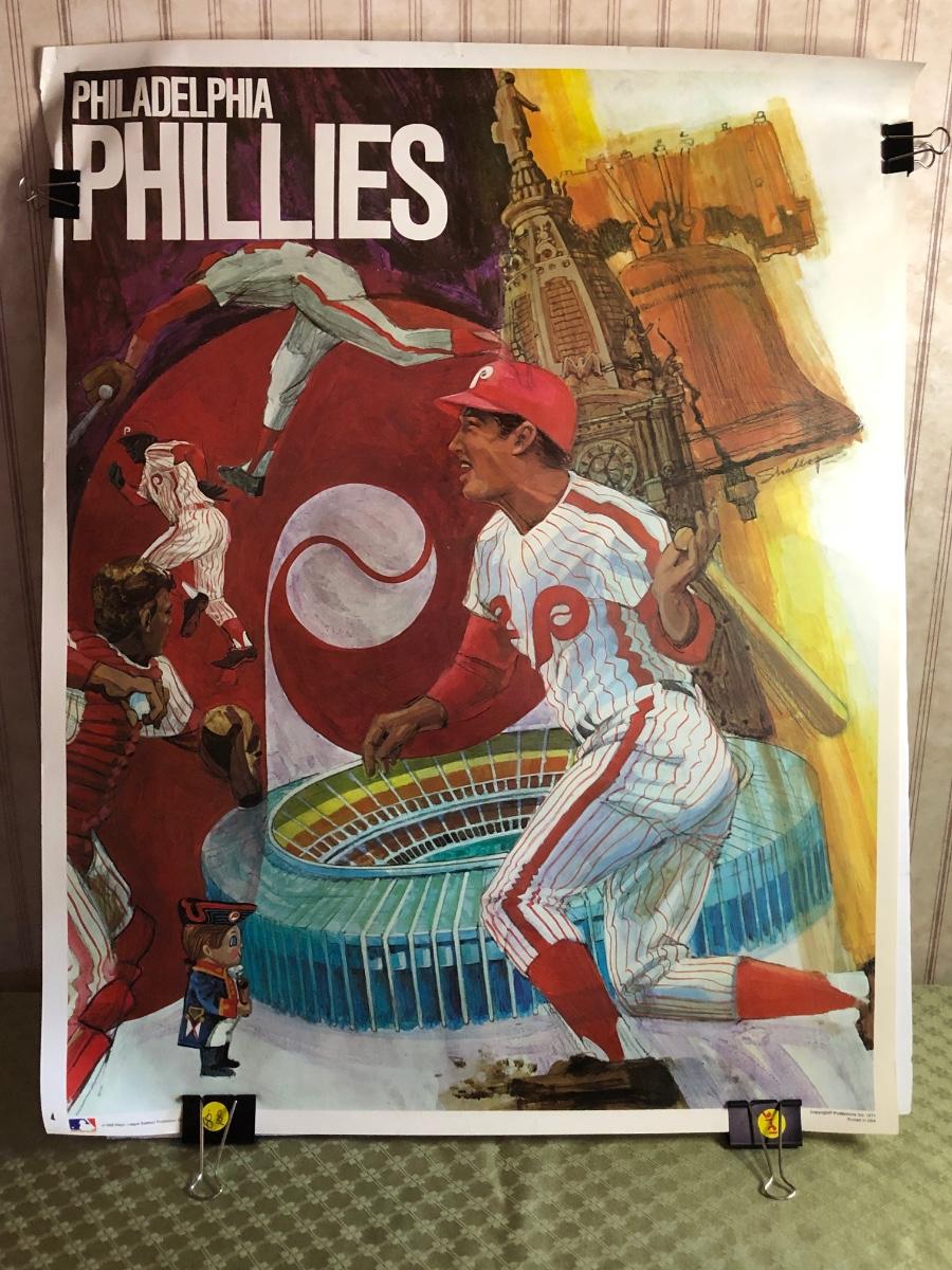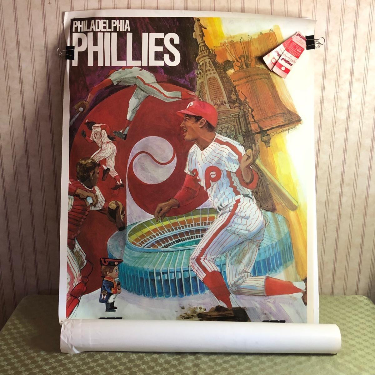 Includes two rolled posters and two Phillies vs. Pittsburgh Pirates tickets from August 11, 1982 at Philadelphia Veterans Stadium.