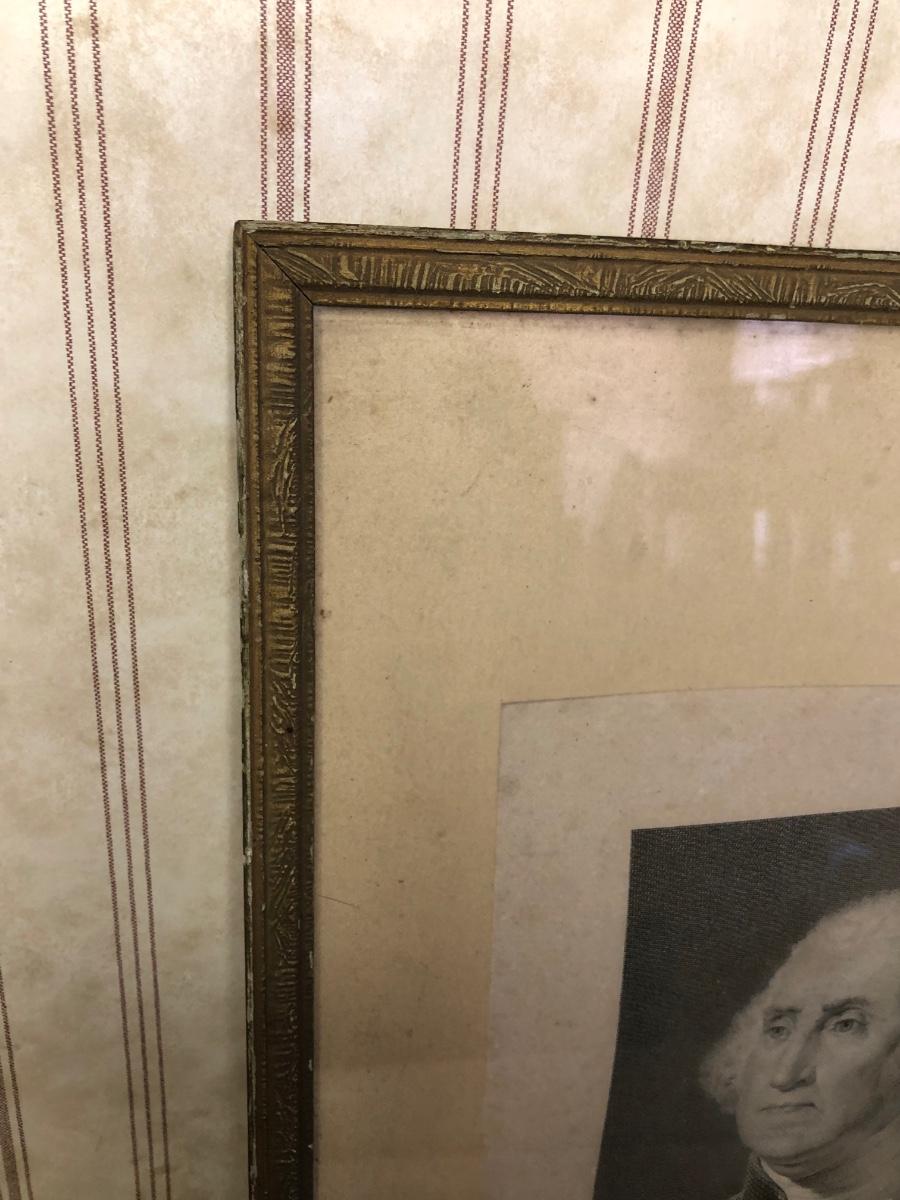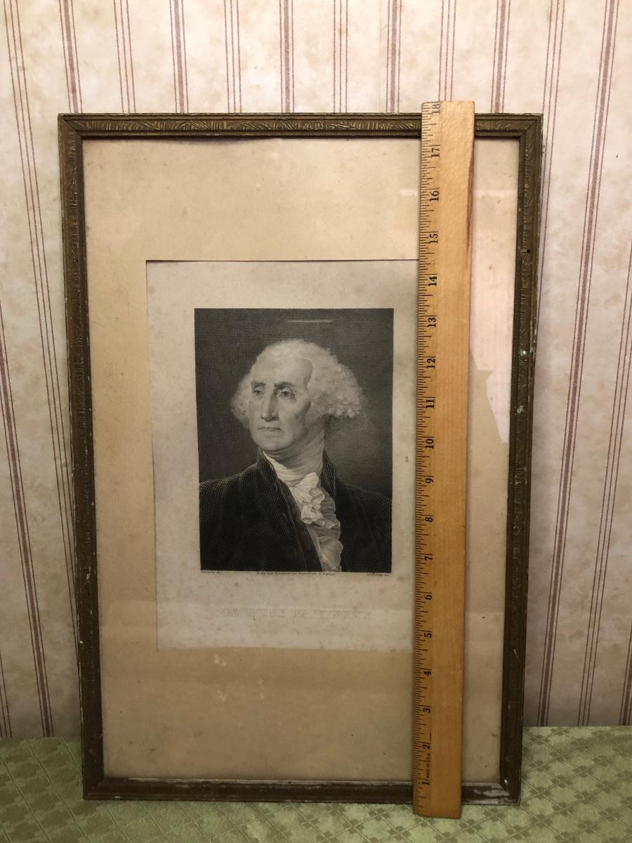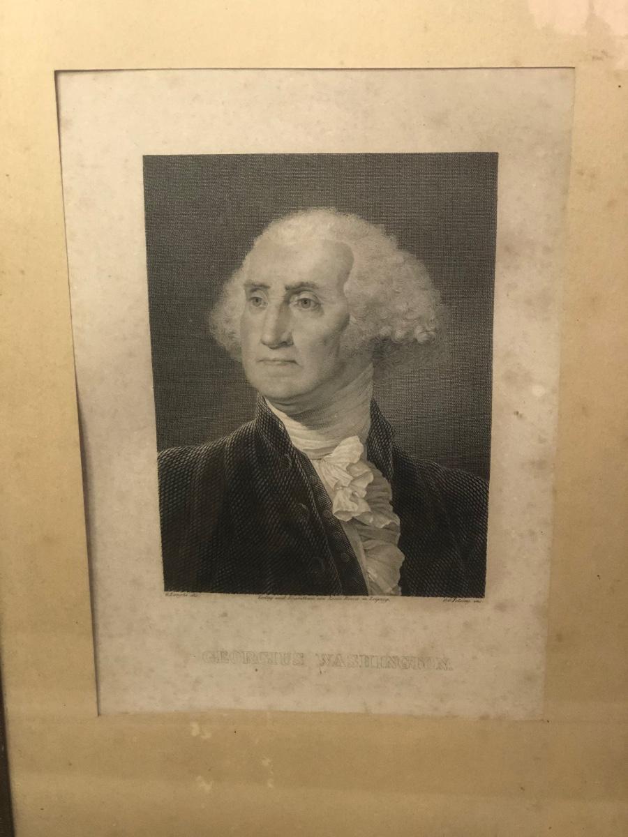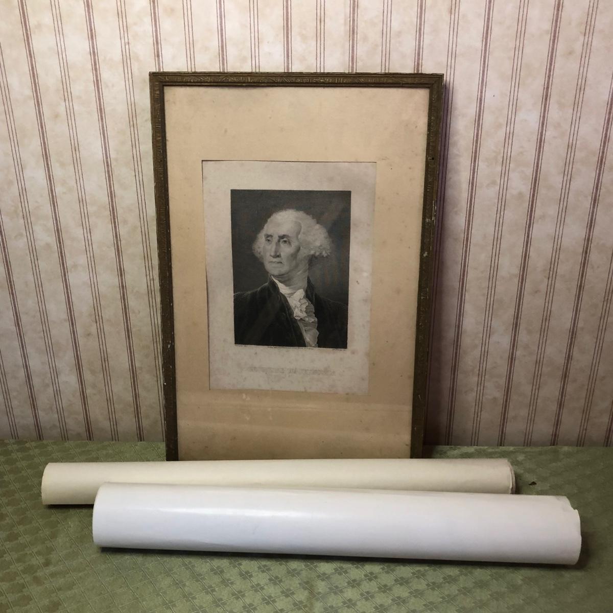Includes a framed picture of George Washington and two rolled prints.
