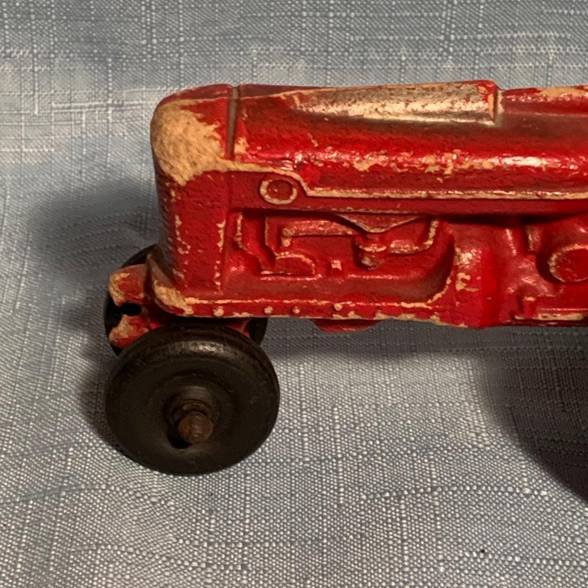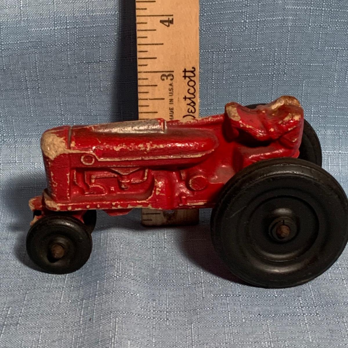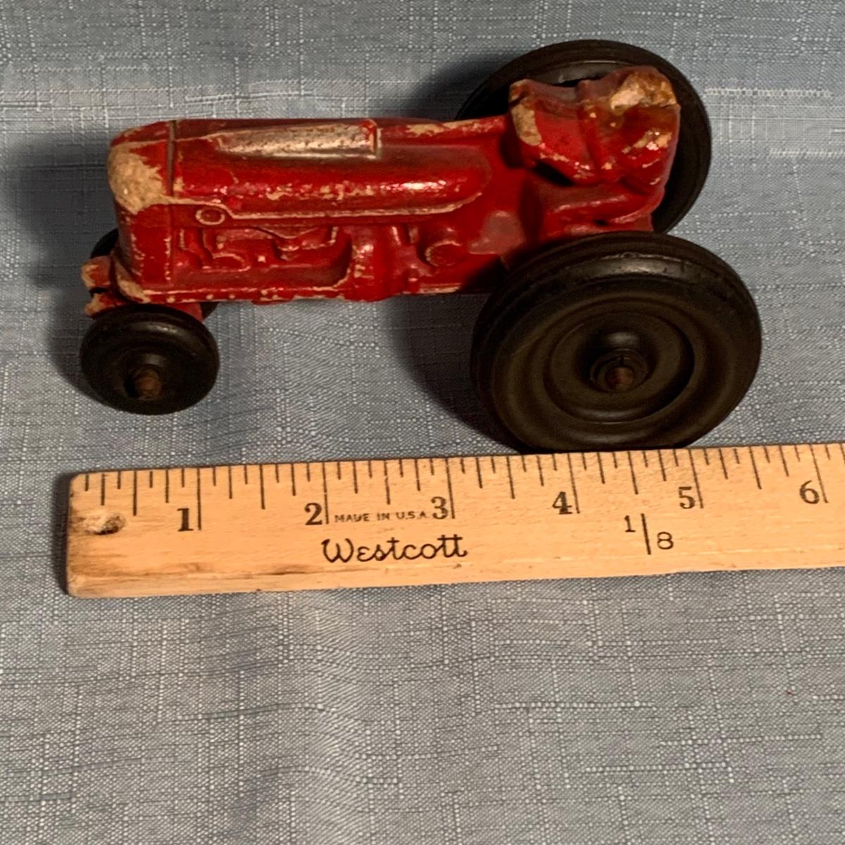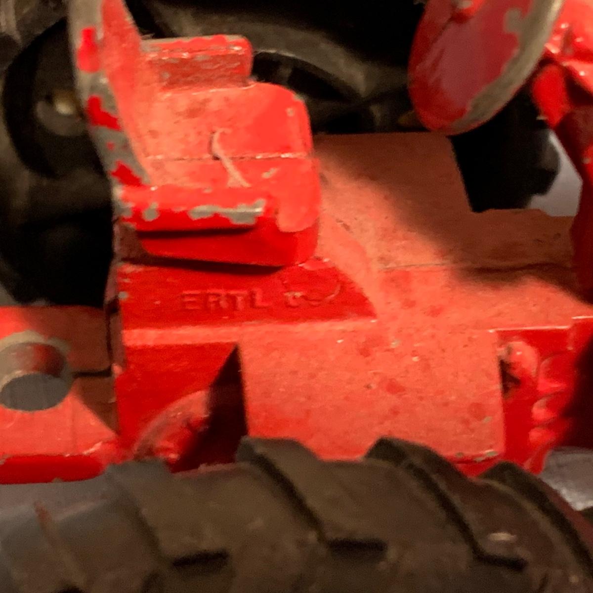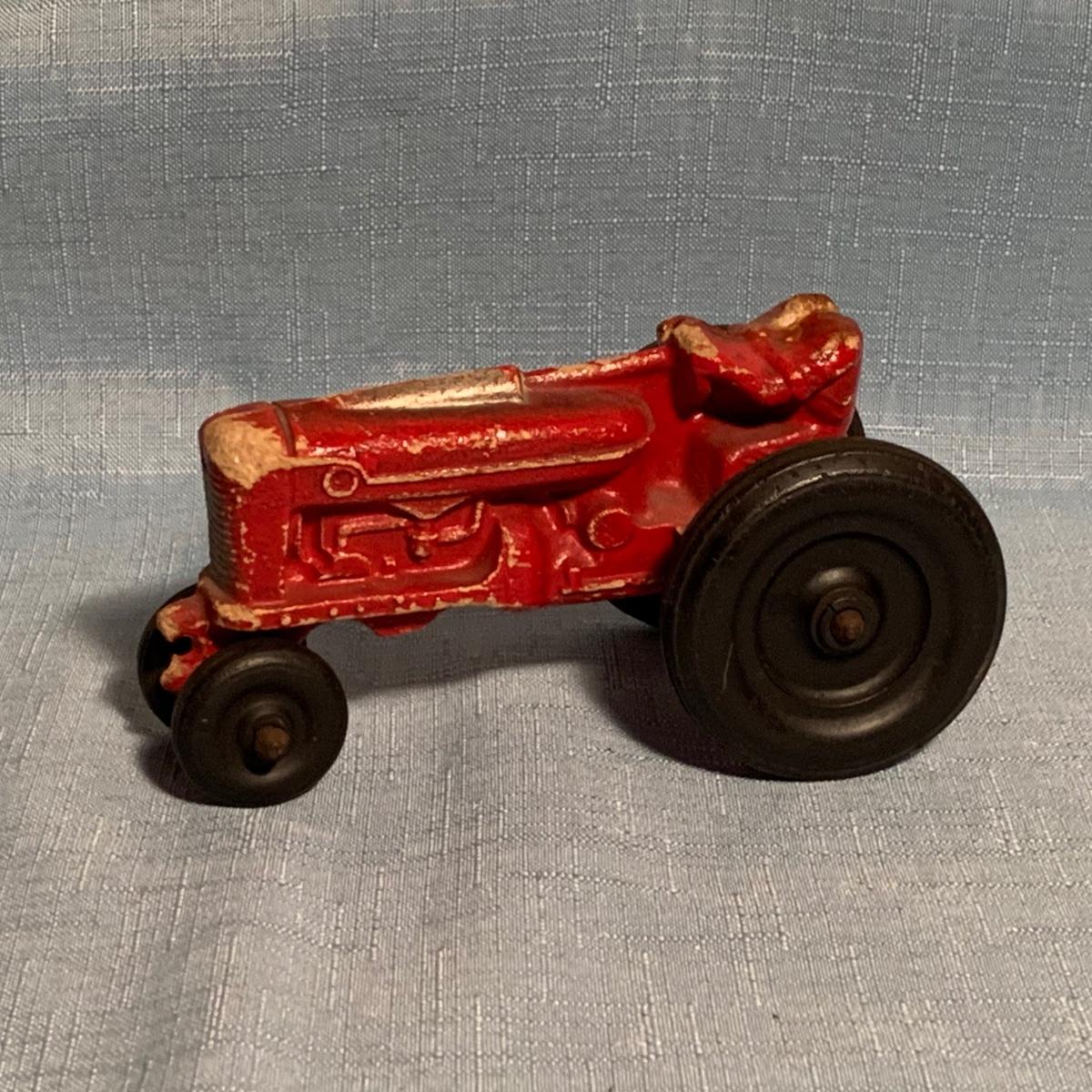 LOT 221R: Vintage Toy Tractors: International Ertl & Farmall w/Rubber Wheels & Reproduction John Deer Sign