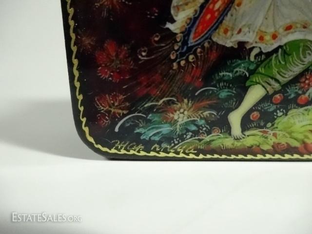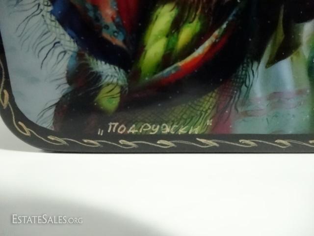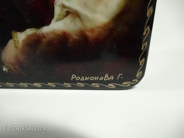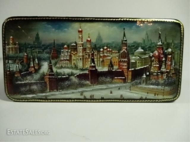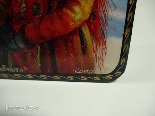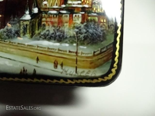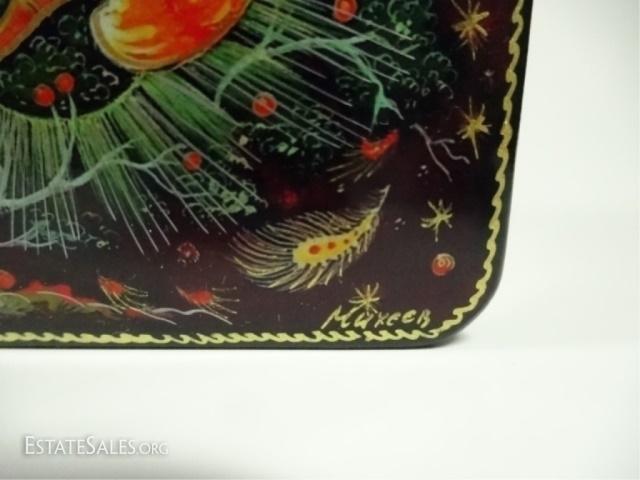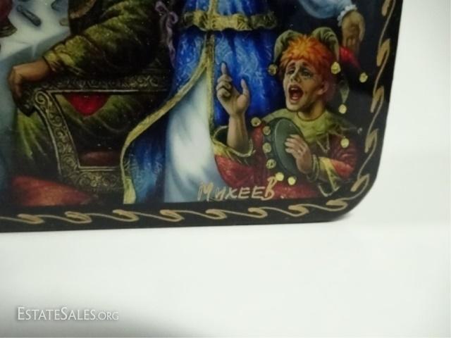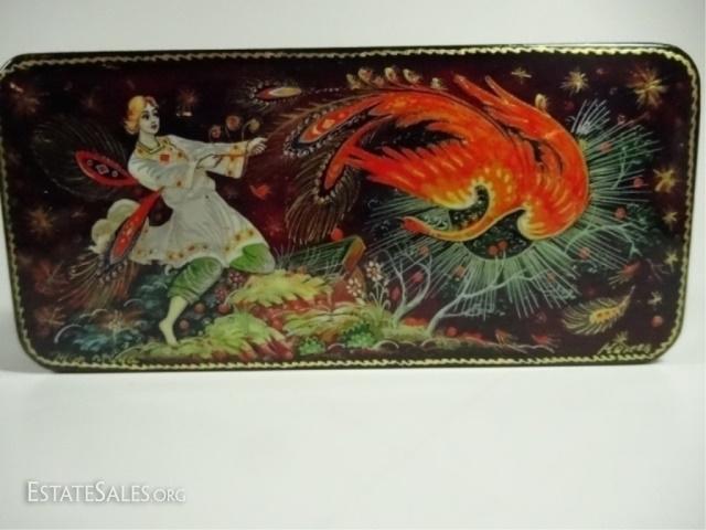LOT 83B: 6 PC RUSSIAN HAND PAINTED LACQUERED BOXES, ARTIST SIGNED, EXCELLENT CONDITION, APPROX 5 1/2" X 2 1/2" X 1 3/8" & 4 1/4" X 3 1/4" X 1 3/8", SKU213.04 H170