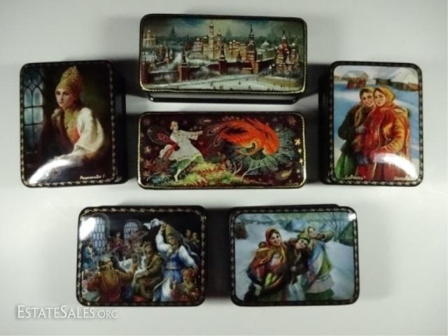 LOT 83B: 6 PC RUSSIAN HAND PAINTED LACQUERED BOXES