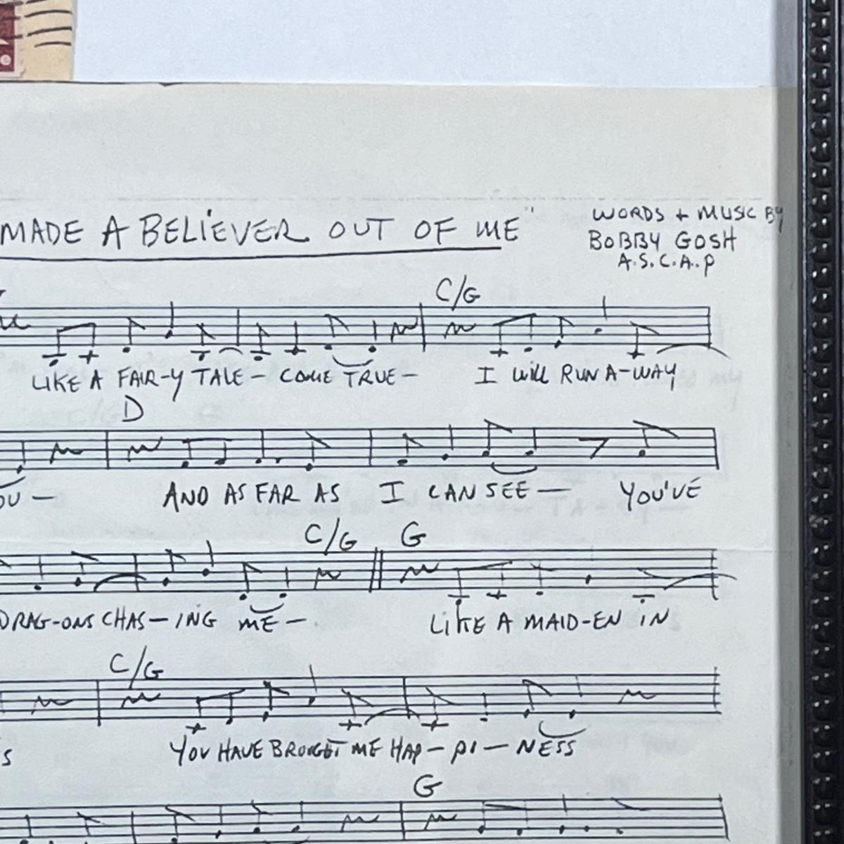 LOT 83B: Bobby Gosh Rare Sheet Music “You Made A Believer Out Of Me”