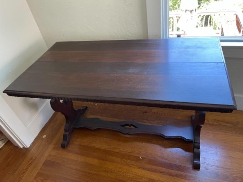 Lot 83BR. Dark oak library tables (54”W x 28”D x 32”H)--$55