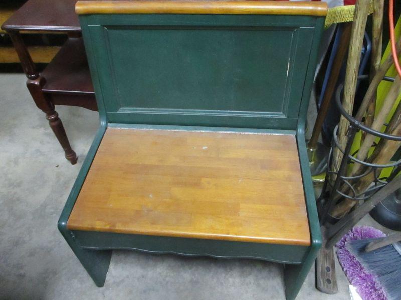 Lot 84 - Hand Crafted Wood Bench with Storage Green Finish
