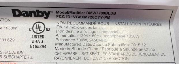 LOT#84K: Danby Microwave