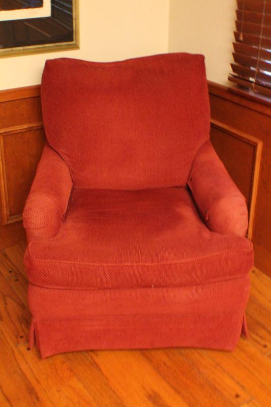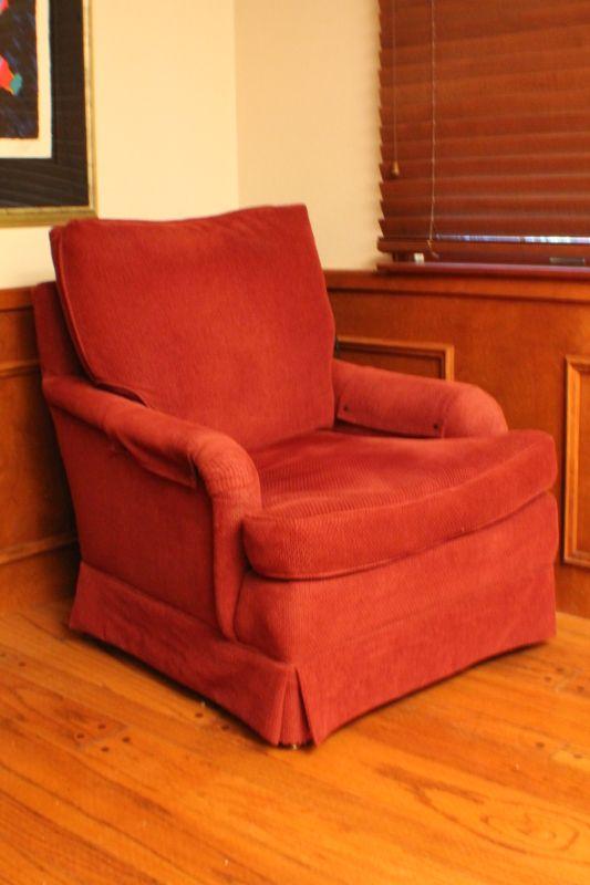 LOT #84: Vintage Red Upholstered Chair by Howard Lorton Galleriesâ„¢