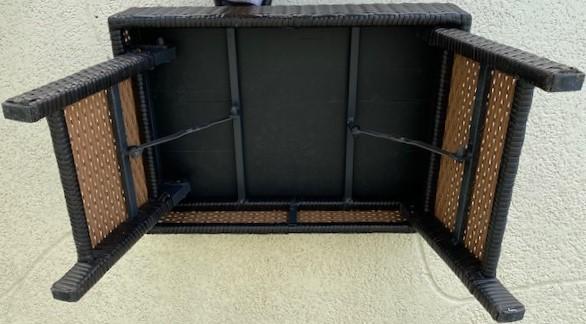 Folding legs. Dimensions: 24"L x 17"W x 15"H.